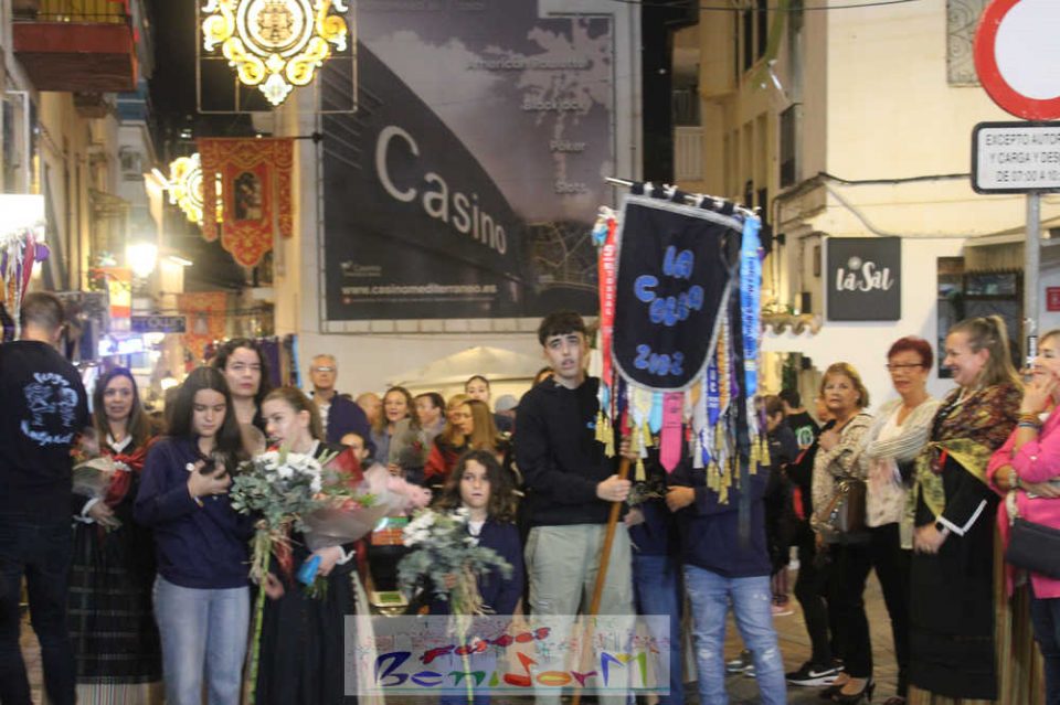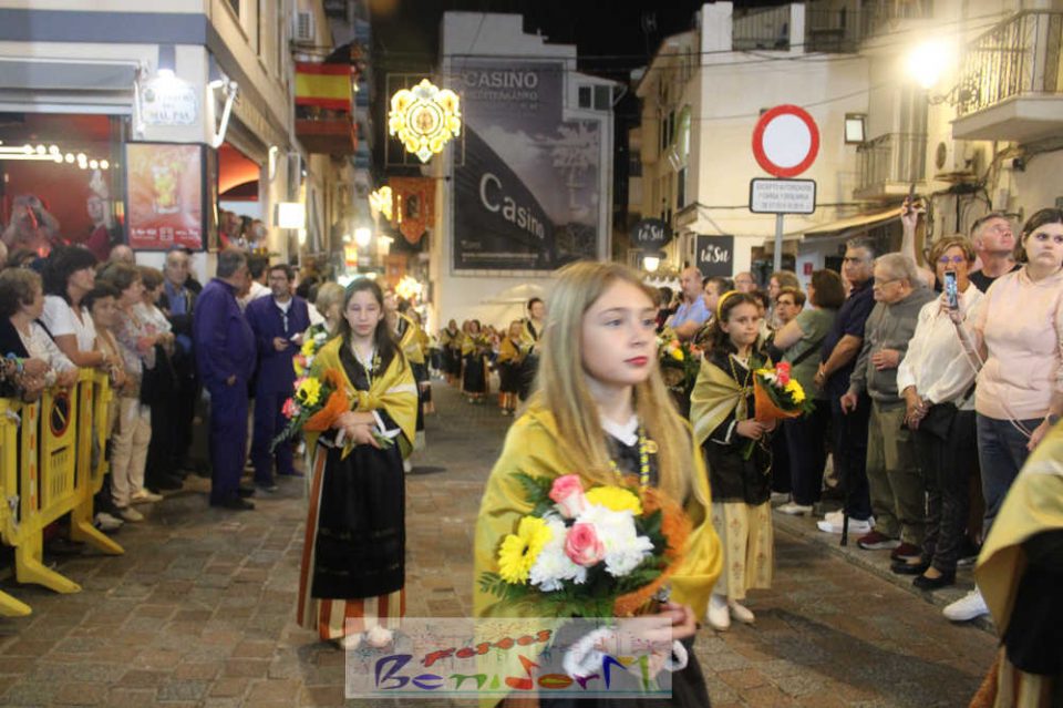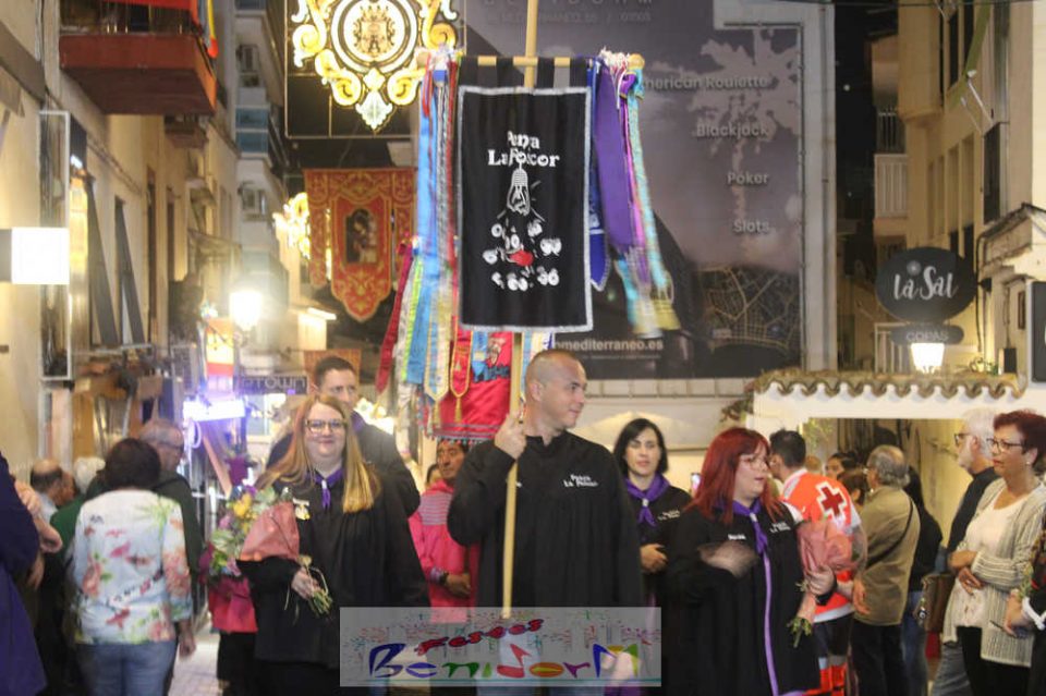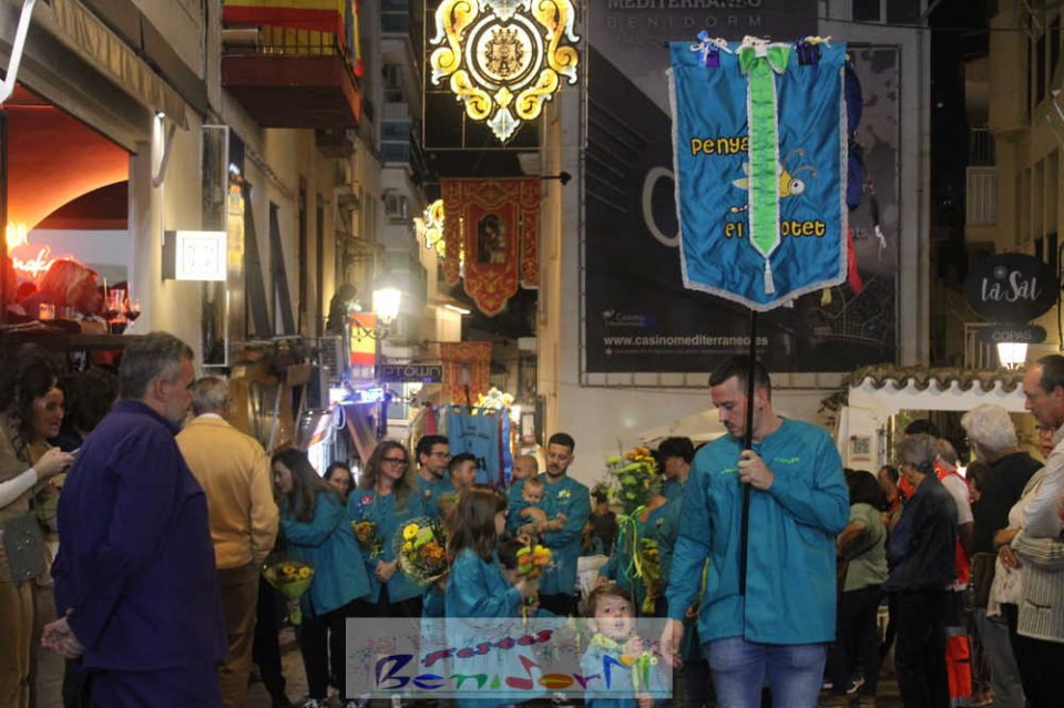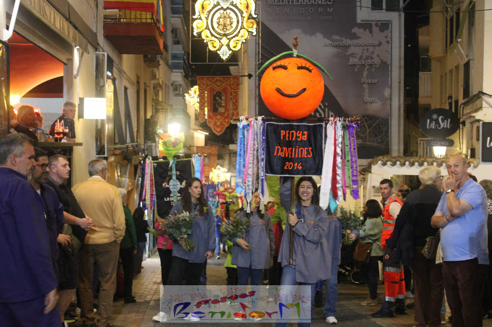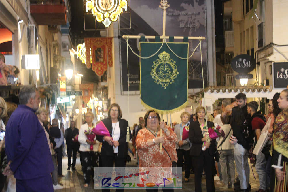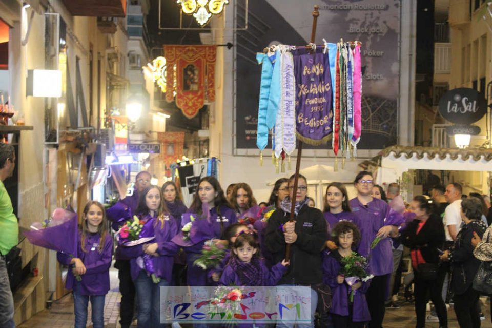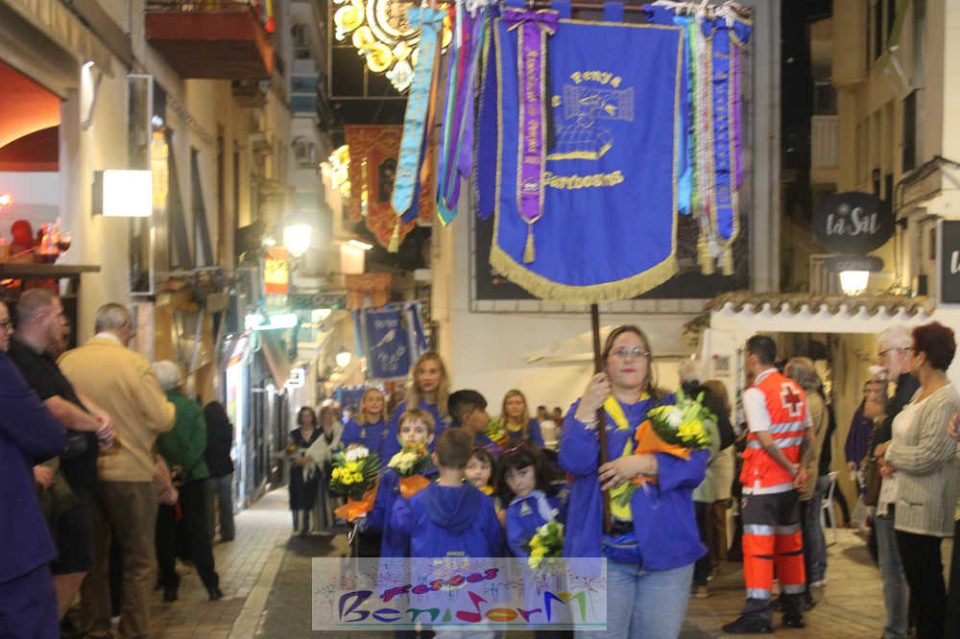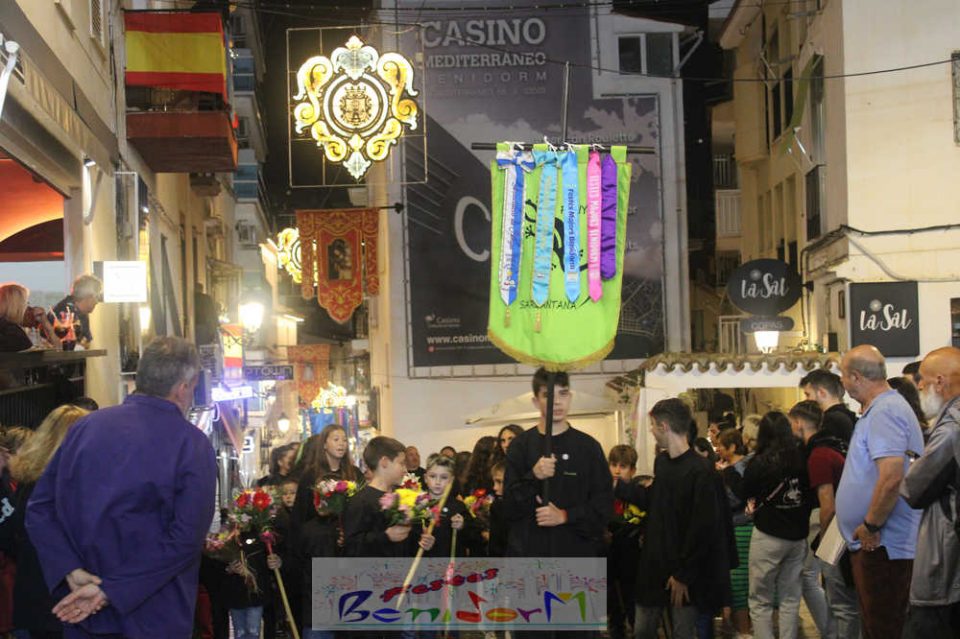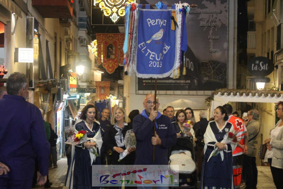 Centenares de benidormenses, vecinos de otras poblaciones y turistas participaron o aplaudieron este desfile a lo largo de todo el recorrido. Y quienes salieron en él lo hicieron portando vistosos y coloridos ramos o cestas de flores en señal de devoción a la patrona, a la que lanzaron besos, pidieron protección o ante la cual derramaron lágrimas de emoción o tristeza por el recuerdo de seres queridos.