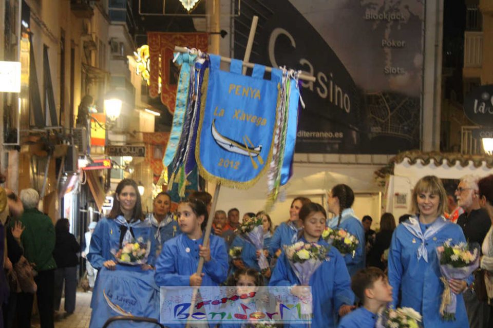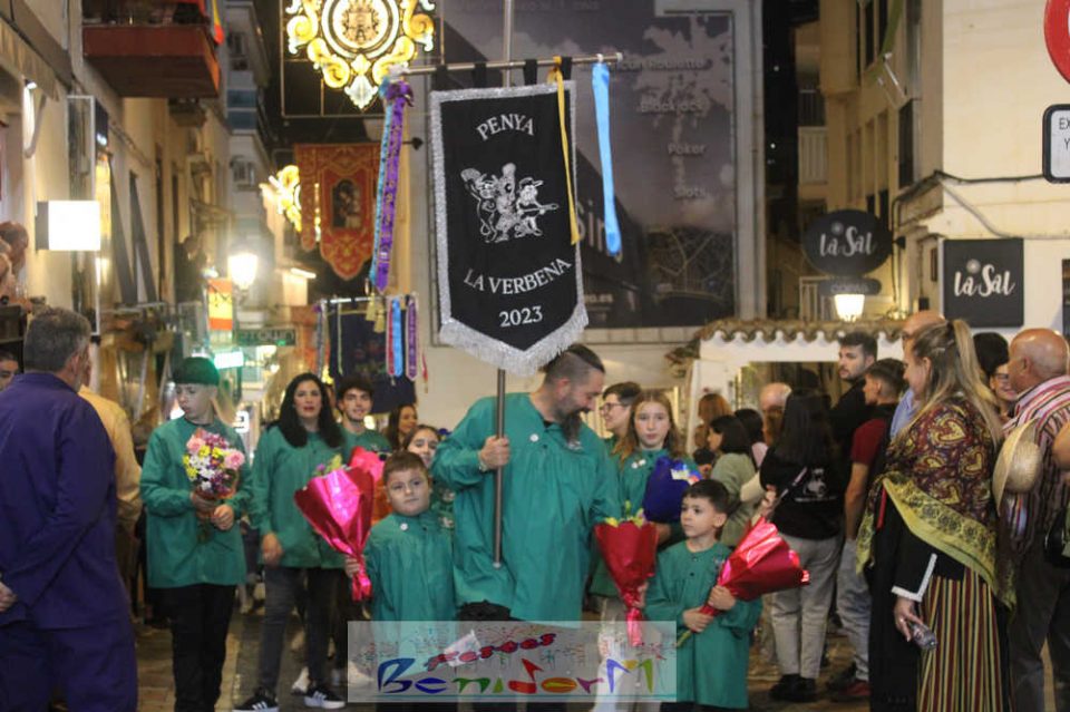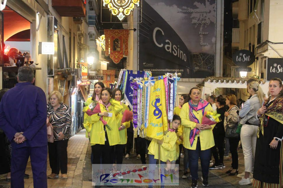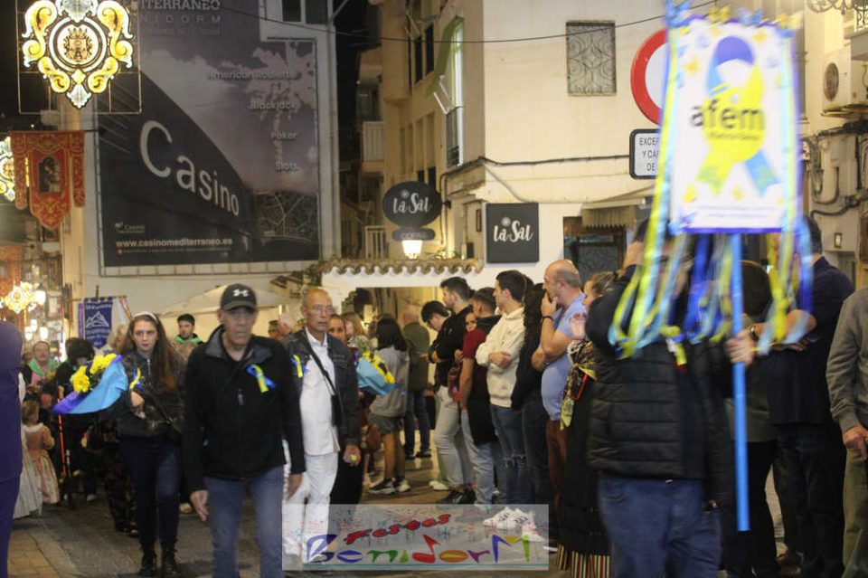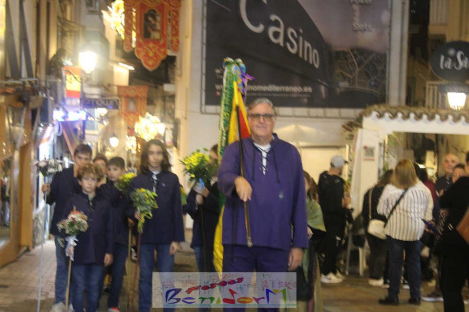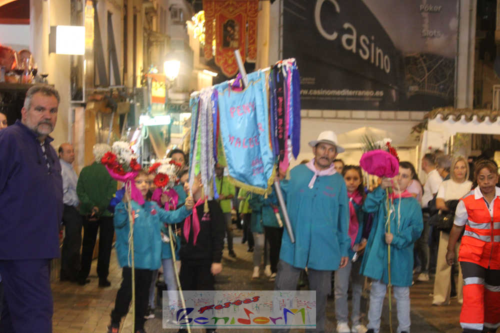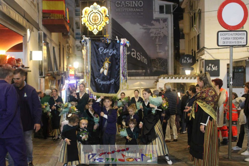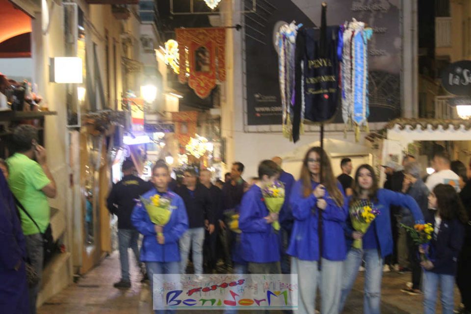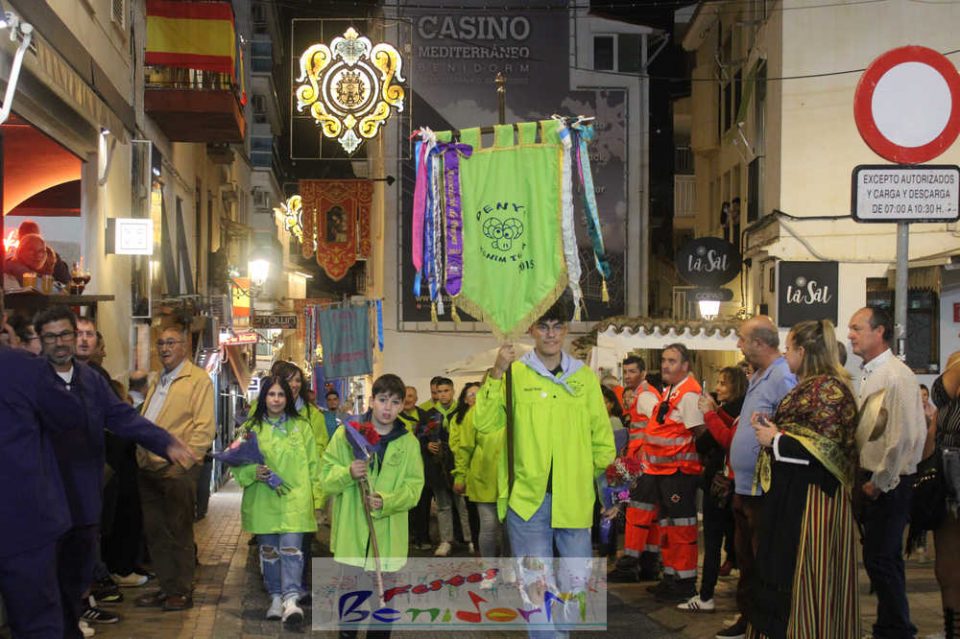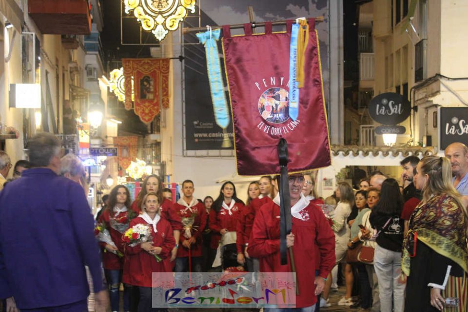 Centenares de benidormenses, vecinos de otras poblaciones y turistas participaron o aplaudieron este desfile a lo largo de todo el recorrido. Y quienes salieron en él lo hicieron portando vistosos y coloridos ramos o cestas de flores en señal de devoción a la patrona, a la que lanzaron besos, pidieron protección o ante la cual derramaron lágrimas de emoción o tristeza por el recuerdo de seres queridos.