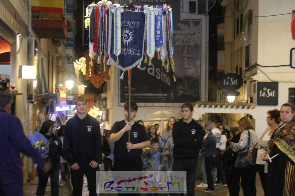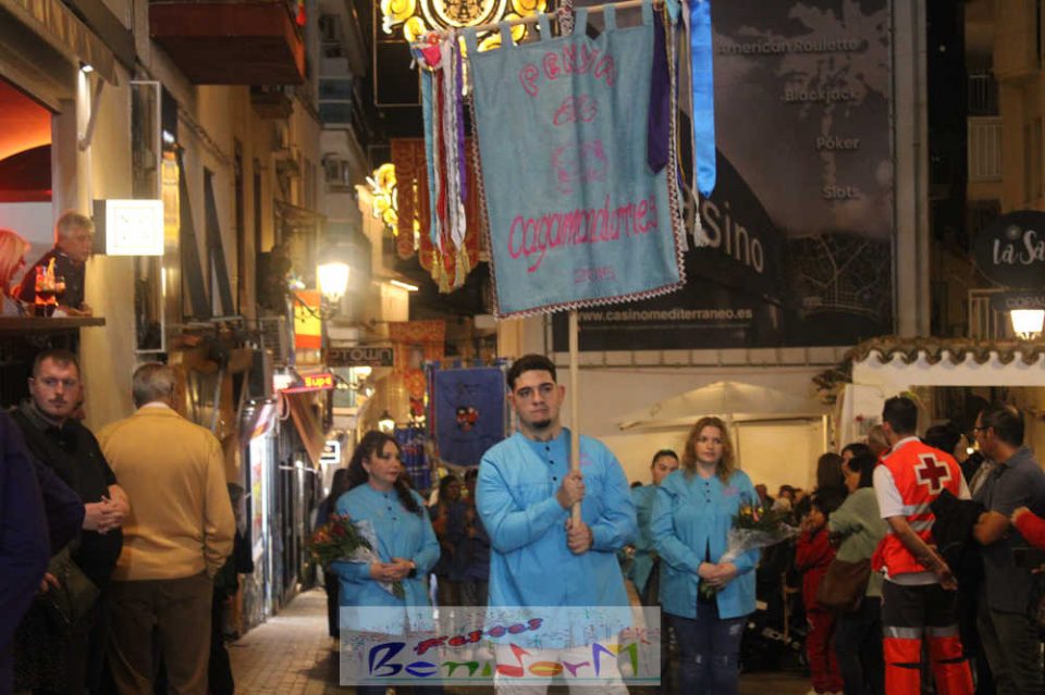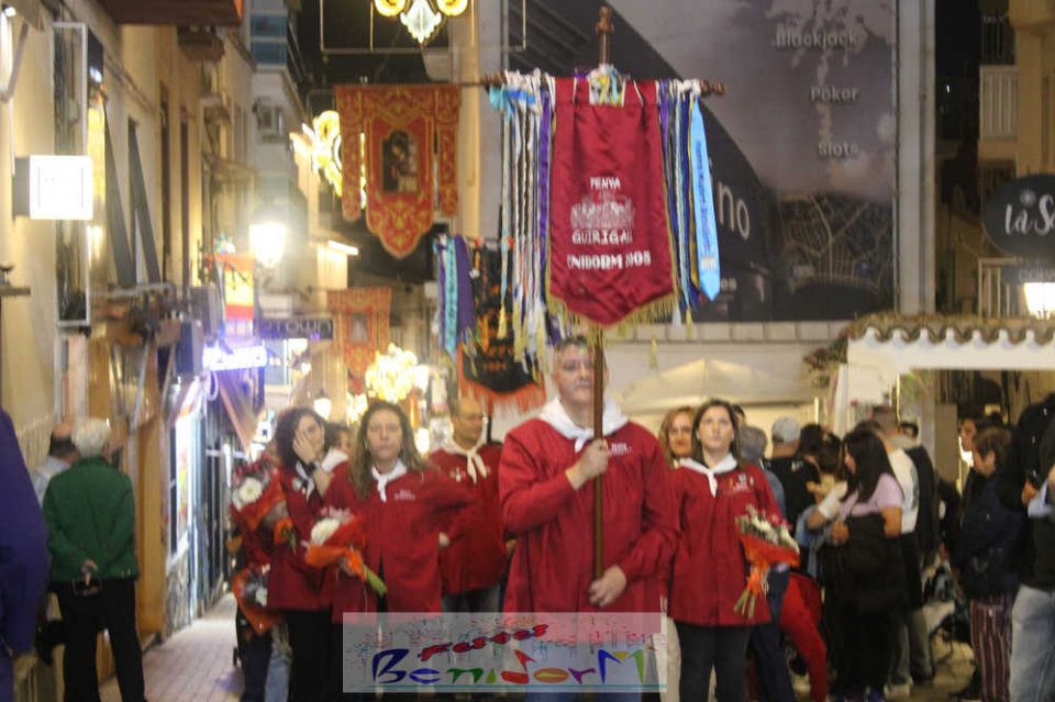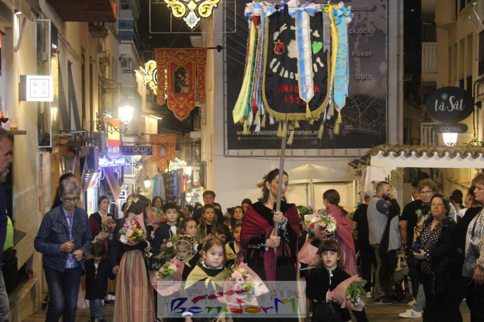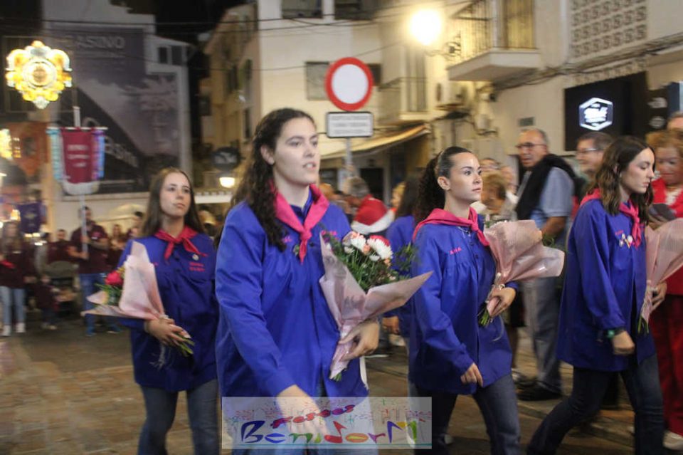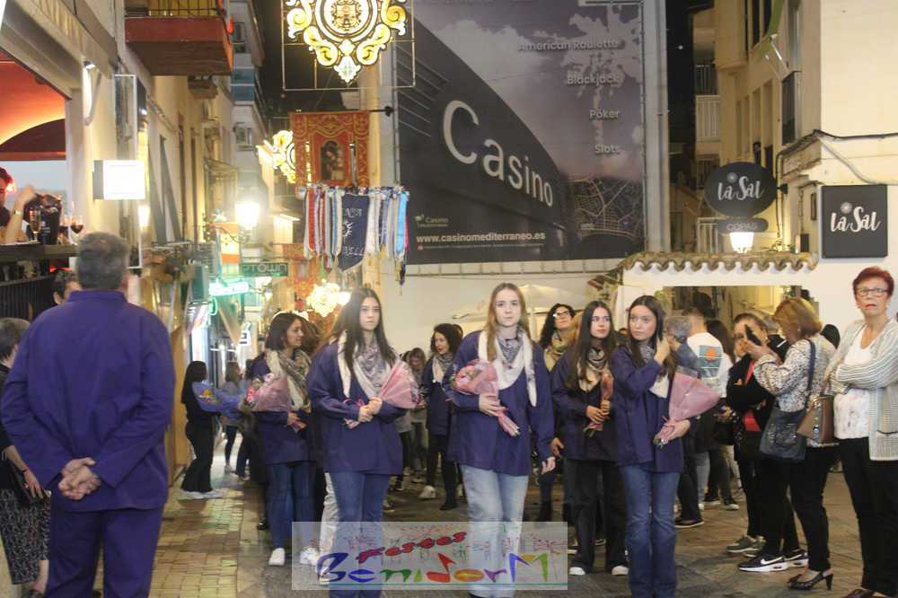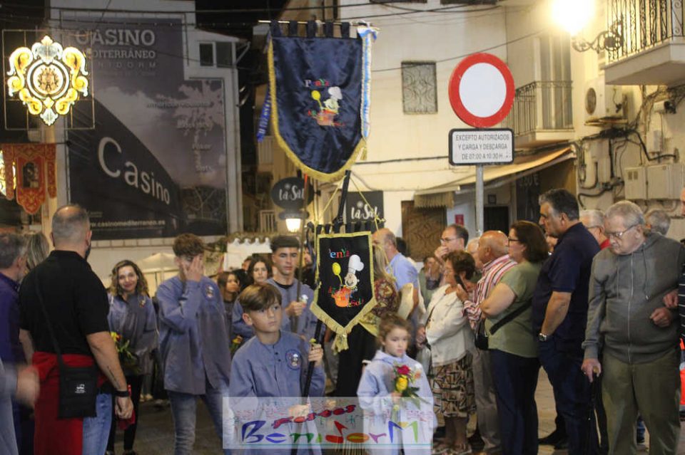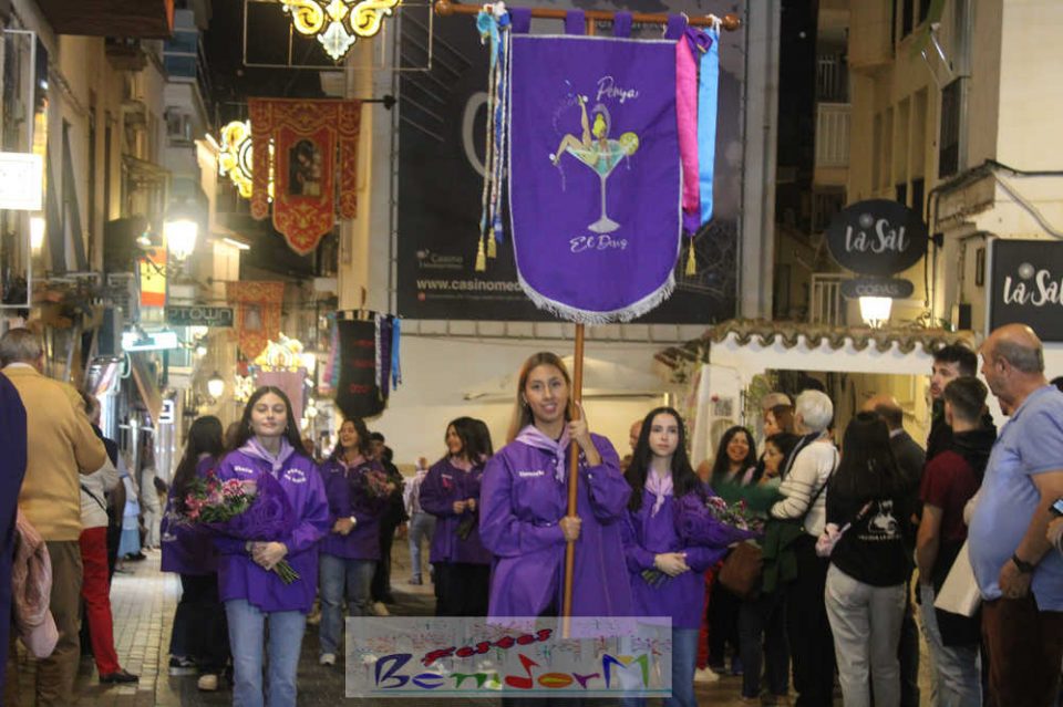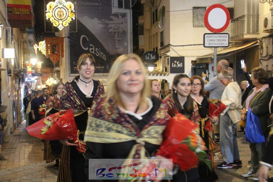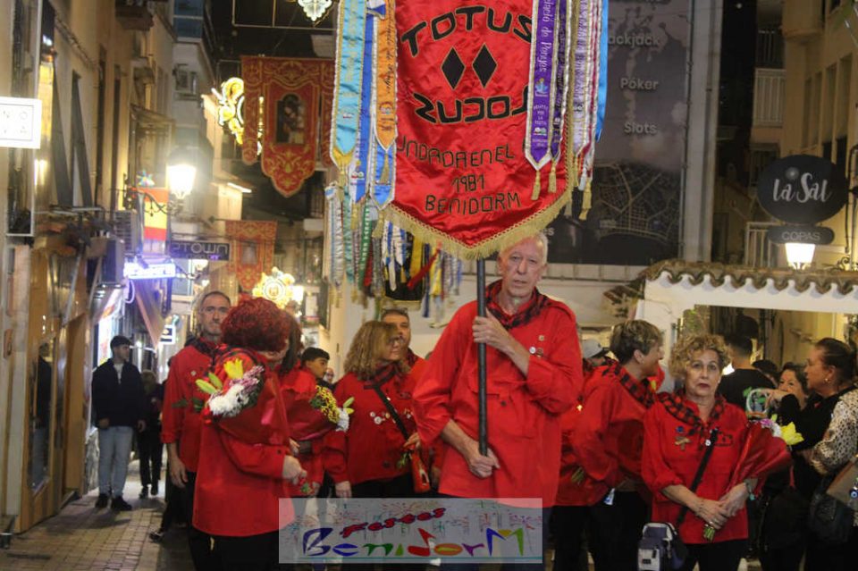 Centenares de benidormenses, vecinos de otras poblaciones y turistas participaron o aplaudieron este desfile a lo largo de todo el recorrido. Y quienes salieron en él lo hicieron portando vistosos y coloridos ramos o cestas de flores en señal de devoción a la patrona, a la que lanzaron besos, pidieron protección o ante la cual derramaron lágrimas de emoción o tristeza por el recuerdo de seres queridos.