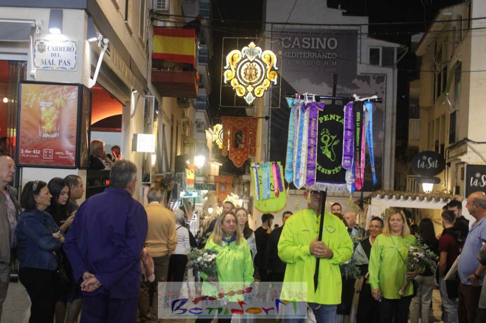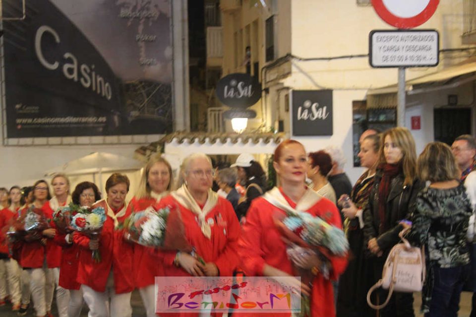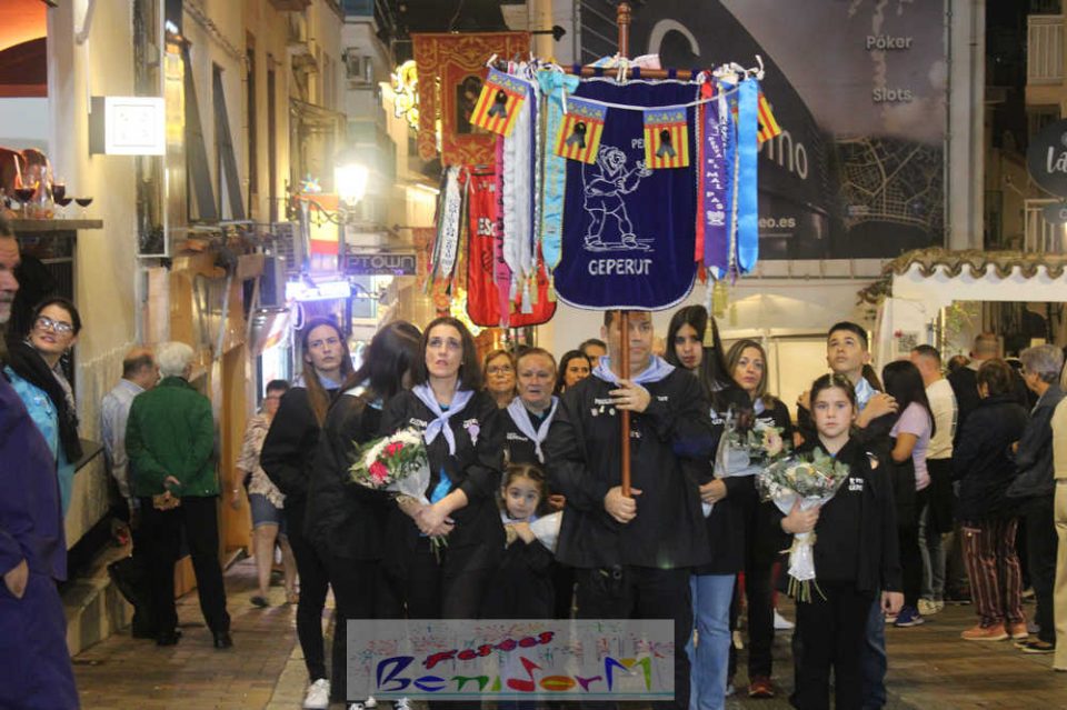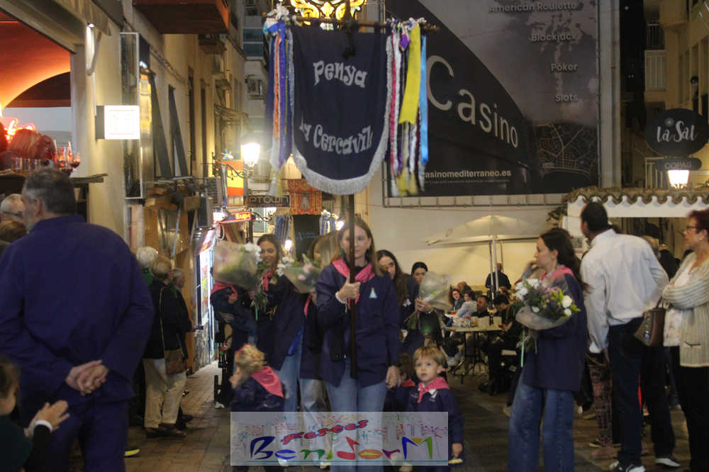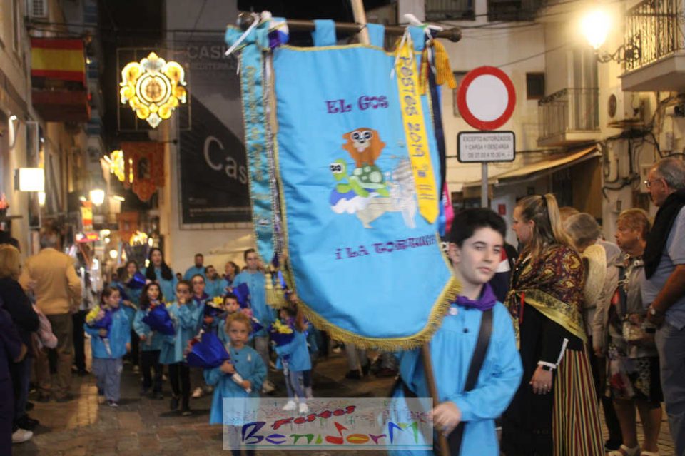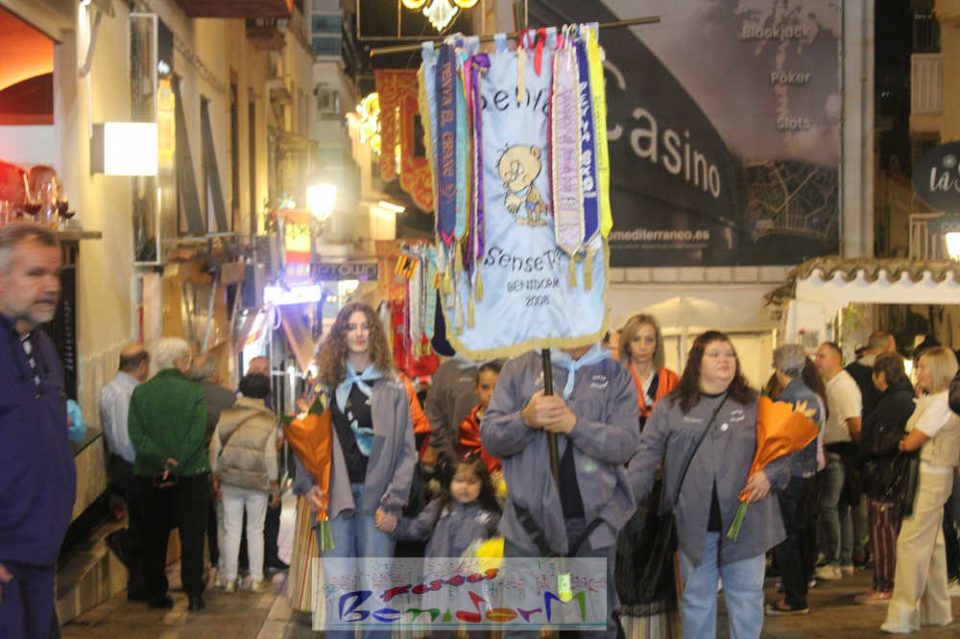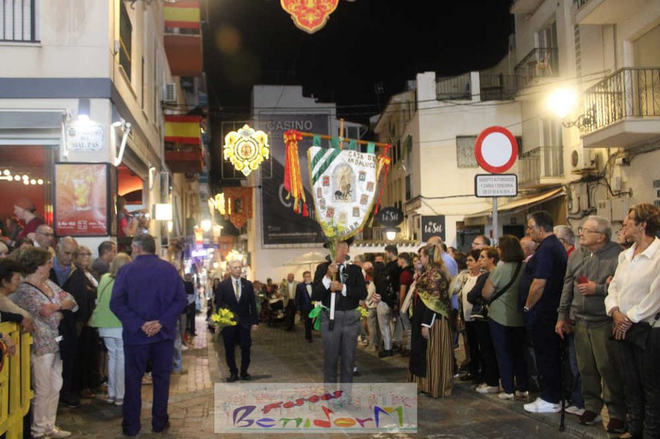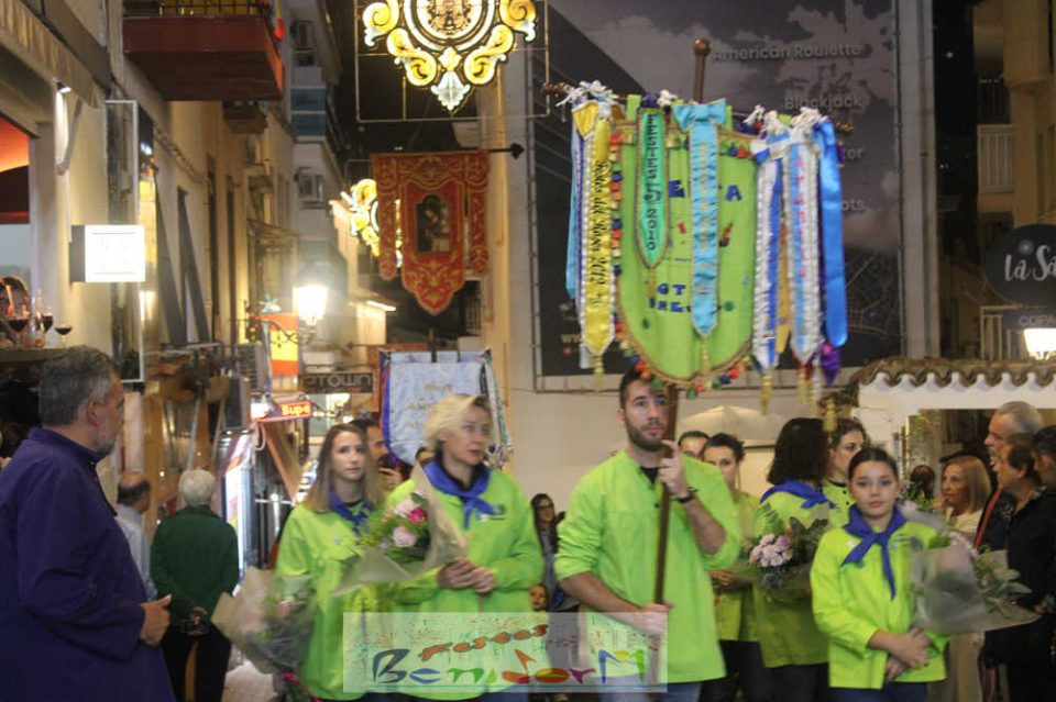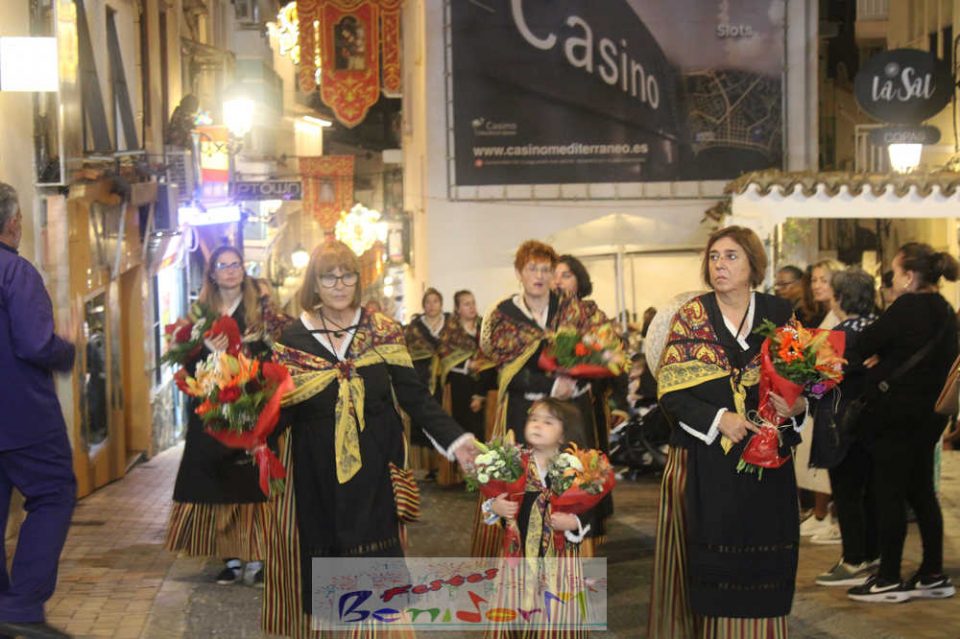 Centenares de benidormenses, vecinos de otras poblaciones y turistas participaron o aplaudieron este desfile a lo largo de todo el recorrido. Y quienes salieron en él lo hicieron portando vistosos y coloridos ramos o cestas de flores en señal de devoción a la patrona, a la que lanzaron besos, pidieron protección o ante la cual derramaron lágrimas de emoción o tristeza por el recuerdo de seres queridos.