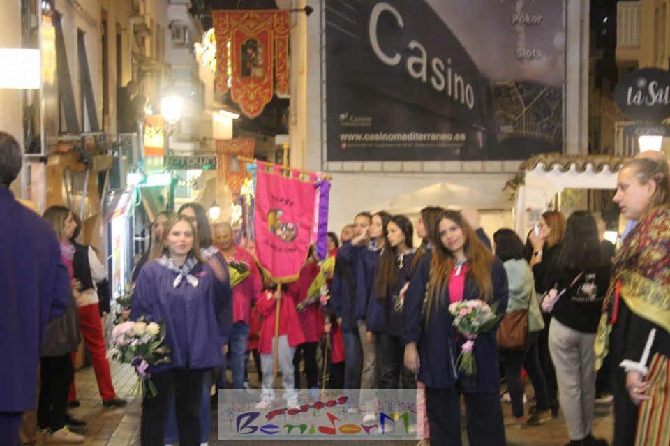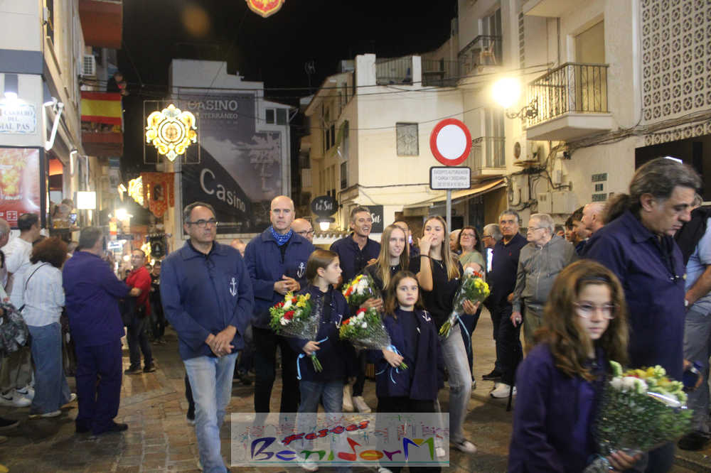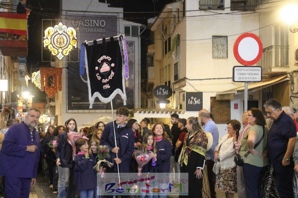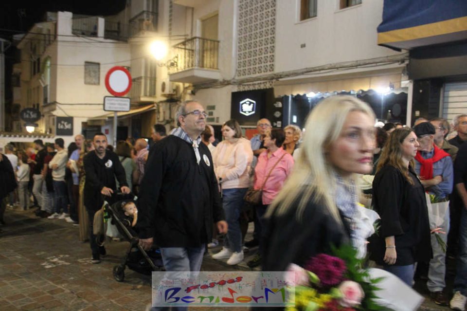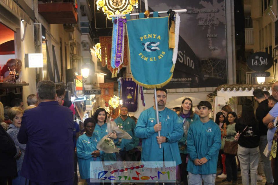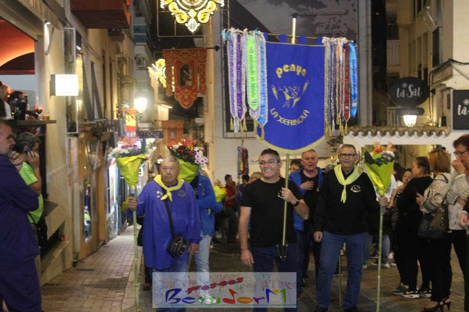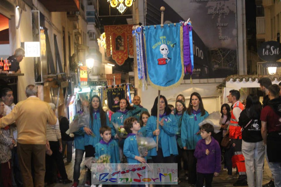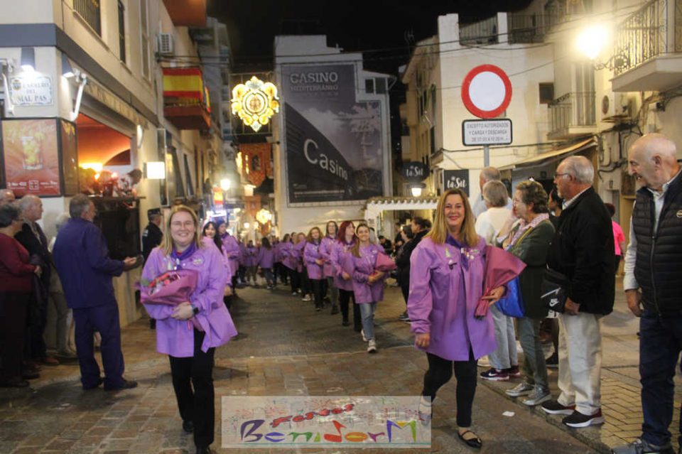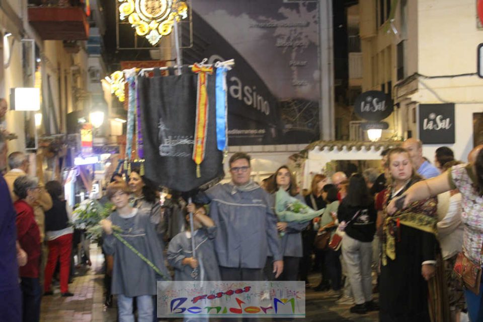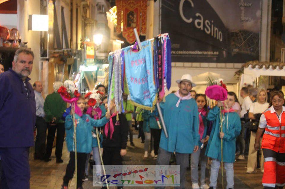 Centenares de benidormenses, vecinos de otras poblaciones y turistas participaron o aplaudieron este desfile a lo largo de todo el recorrido. Y quienes salieron en él lo hicieron portando vistosos y coloridos ramos o cestas de flores en señal de devoción a la patrona, a la que lanzaron besos, pidieron protección o ante la cual derramaron lágrimas de emoción o tristeza por el recuerdo de seres queridos.