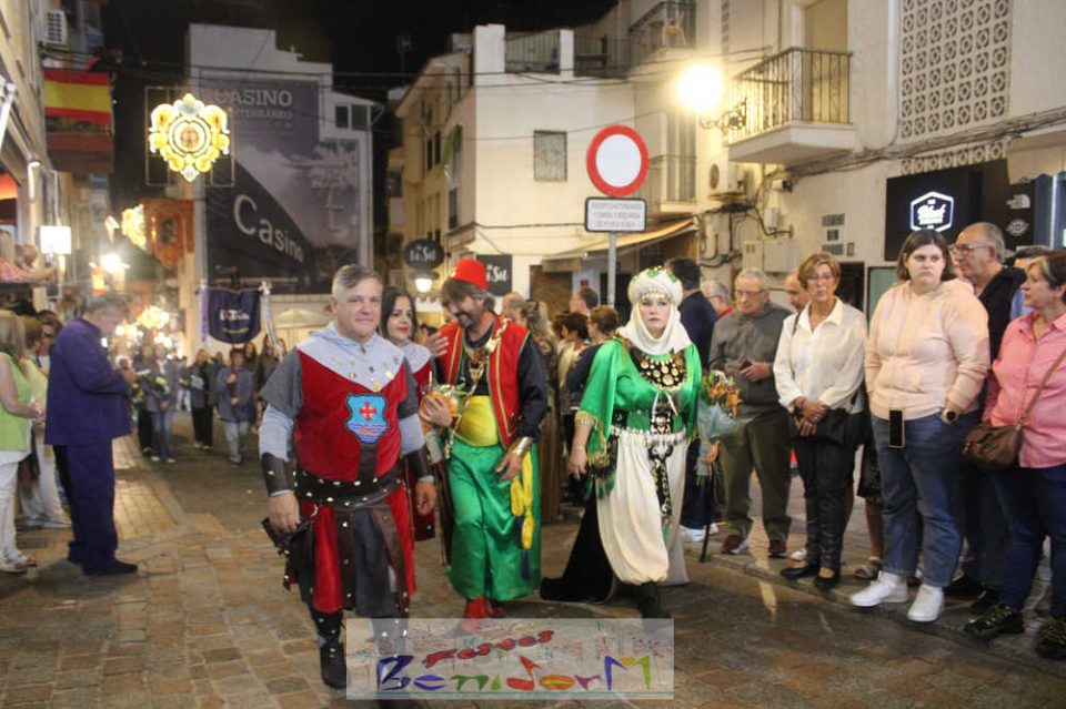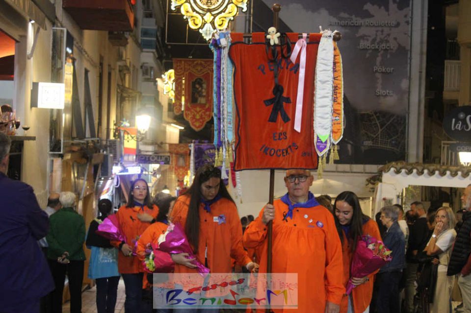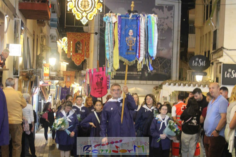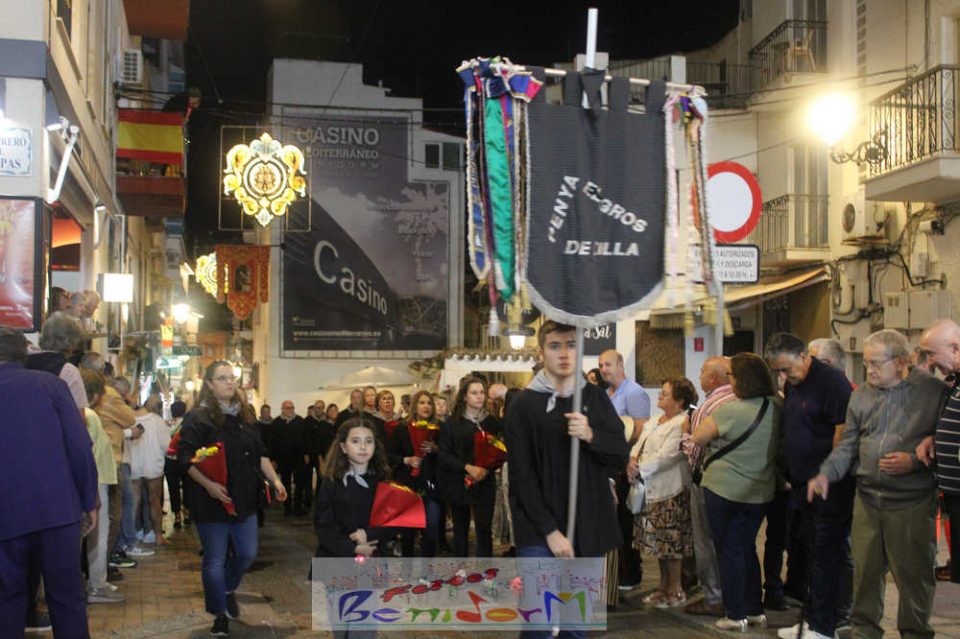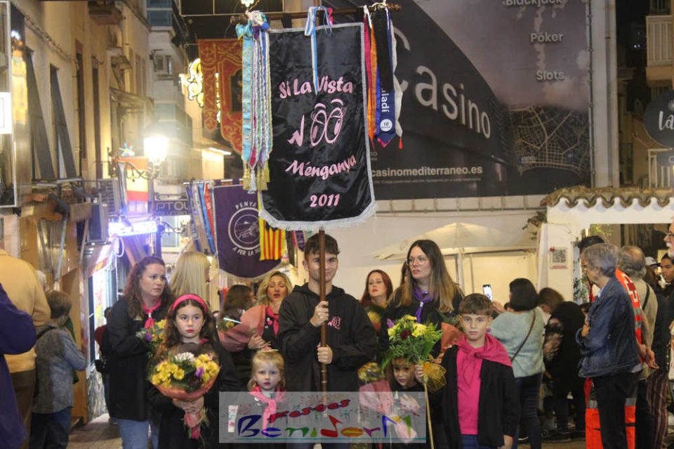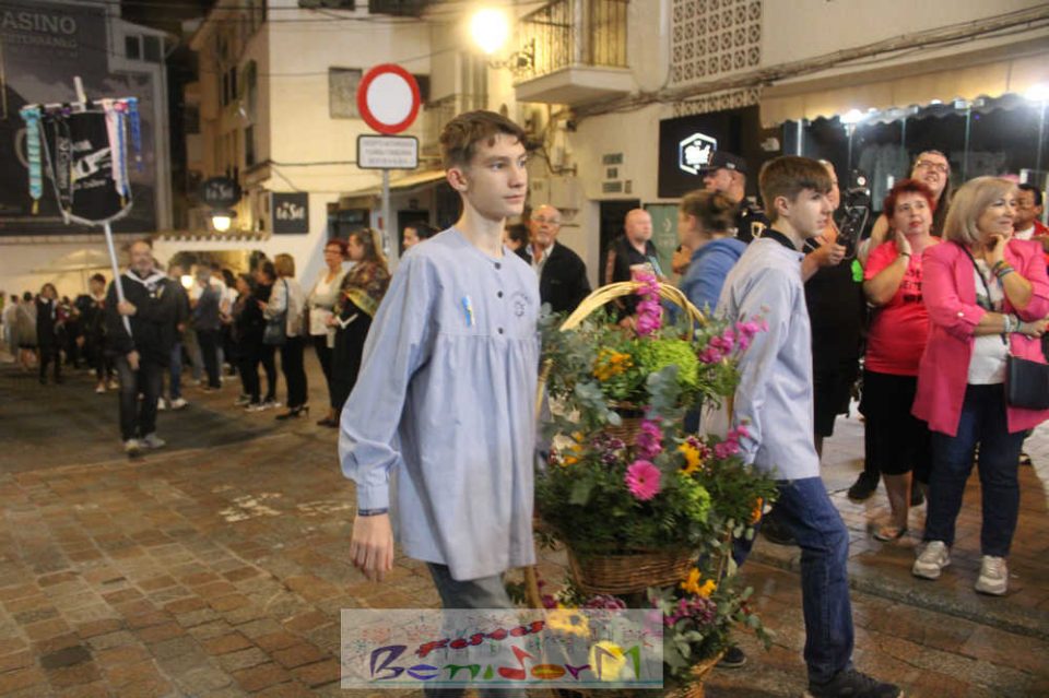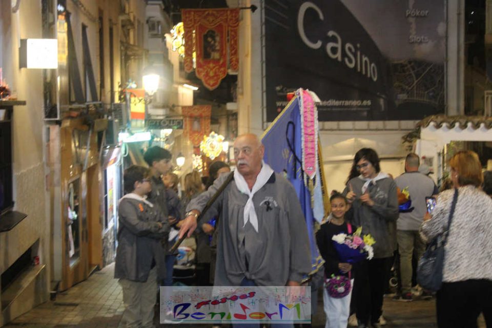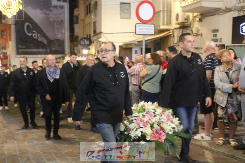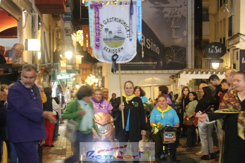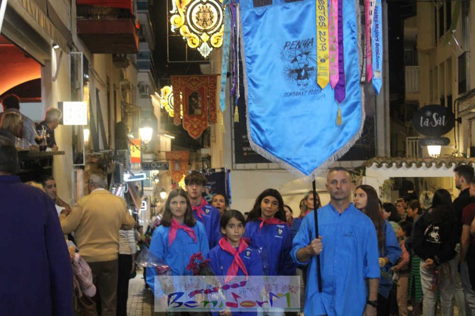 Centenares de benidormenses, vecinos de otras poblaciones y turistas participaron o aplaudieron este desfile a lo largo de todo el recorrido. Y quienes salieron en él lo hicieron portando vistosos y coloridos ramos o cestas de flores en señal de devoción a la patrona, a la que lanzaron besos, pidieron protección o ante la cual derramaron lágrimas de emoción o tristeza por el recuerdo de seres queridos.