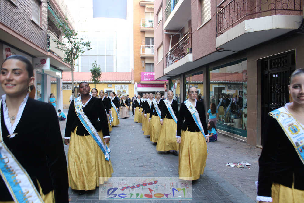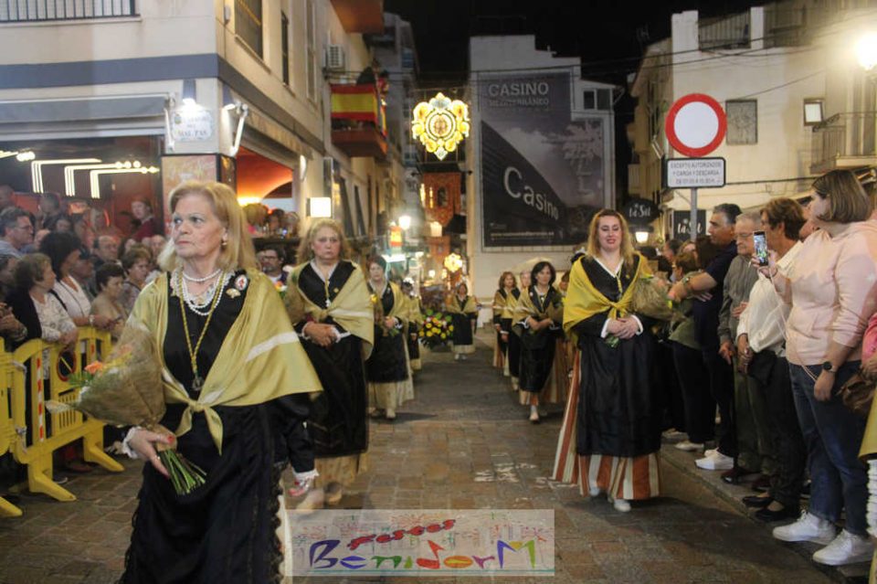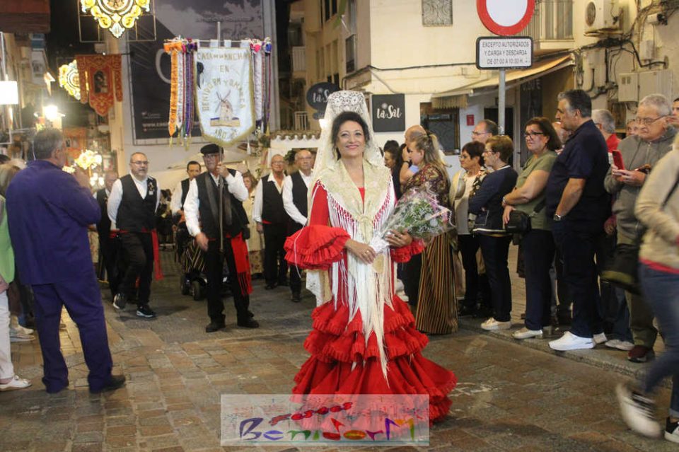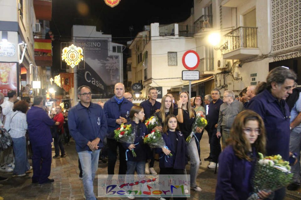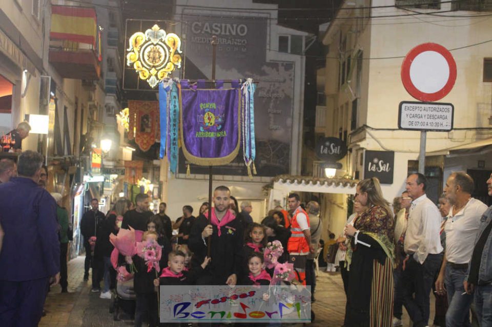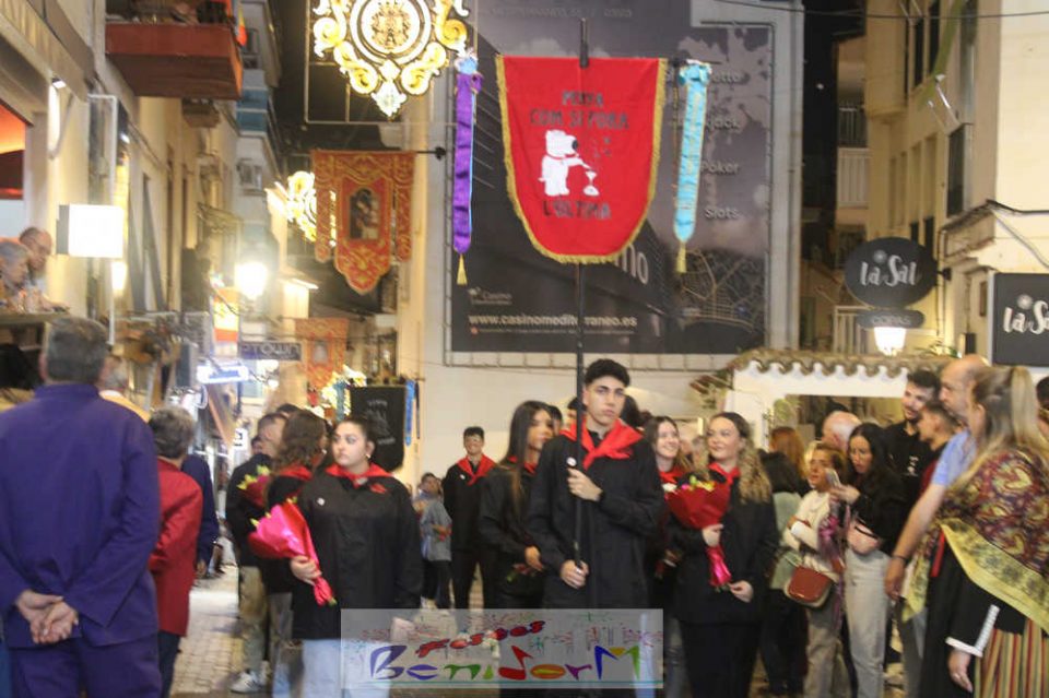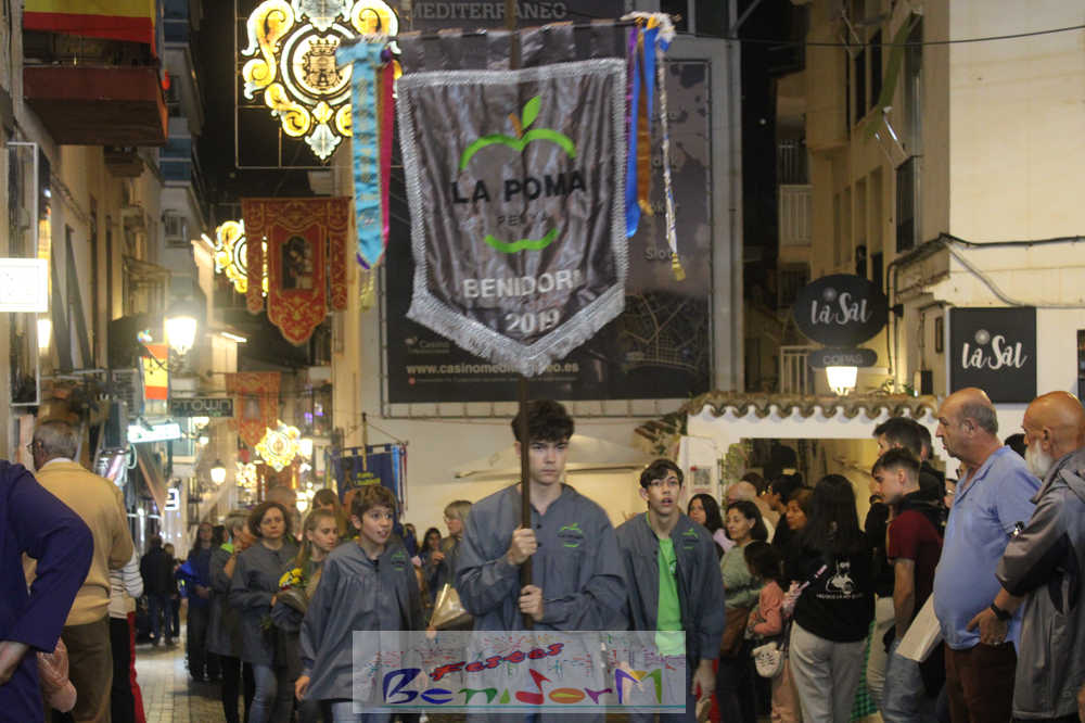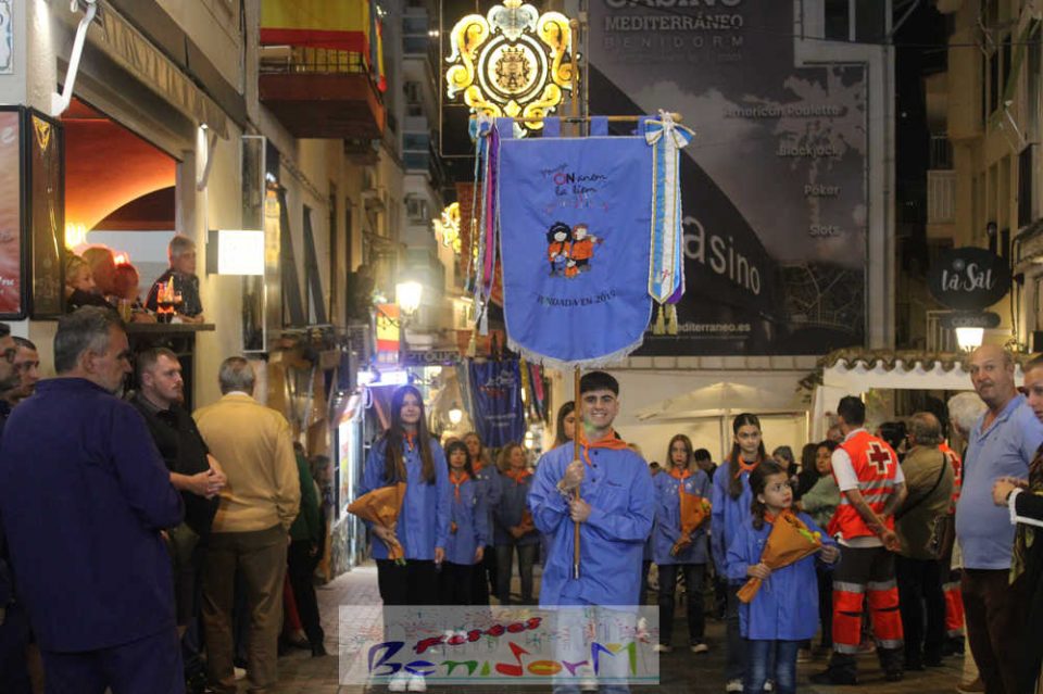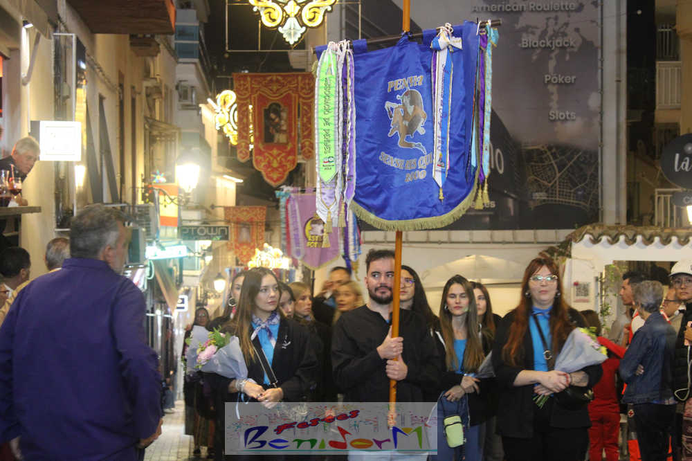 Centenares de benidormenses, vecinos de otras poblaciones y turistas participaron o aplaudieron este desfile a lo largo de todo el recorrido. Y quienes salieron en él lo hicieron portando vistosos y coloridos ramos o cestas de flores en señal de devoción a la patrona, a la que lanzaron besos, pidieron protección o ante la cual derramaron lágrimas de emoción o tristeza por el recuerdo de seres queridos.