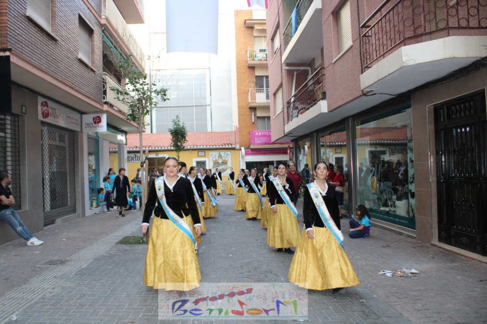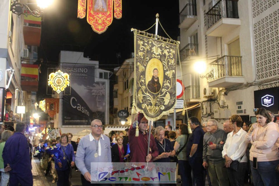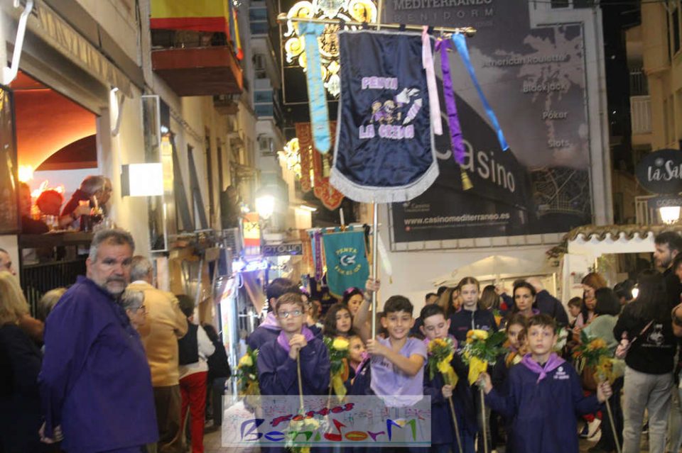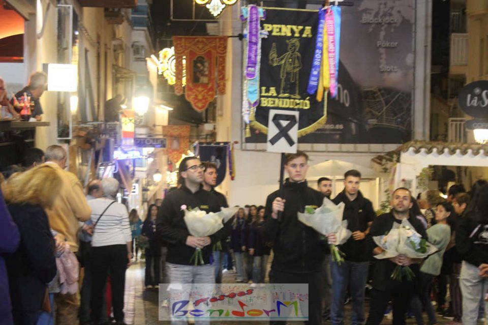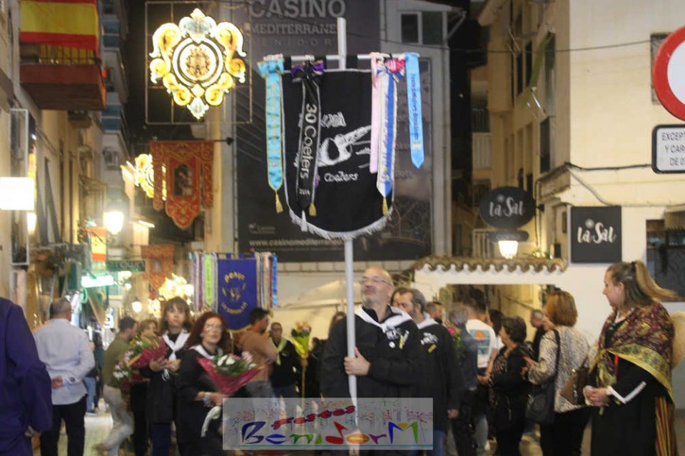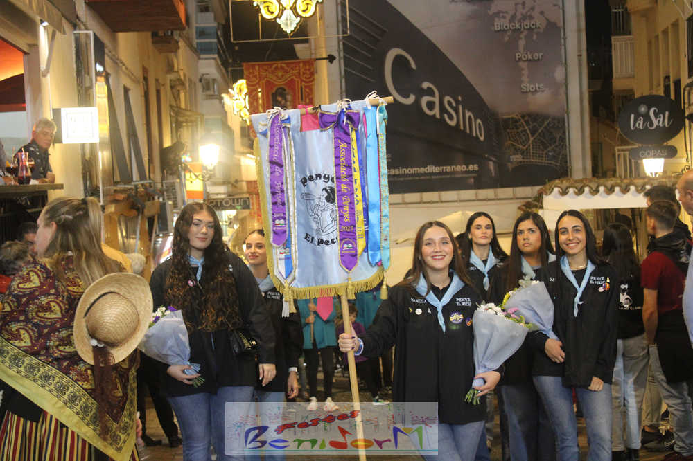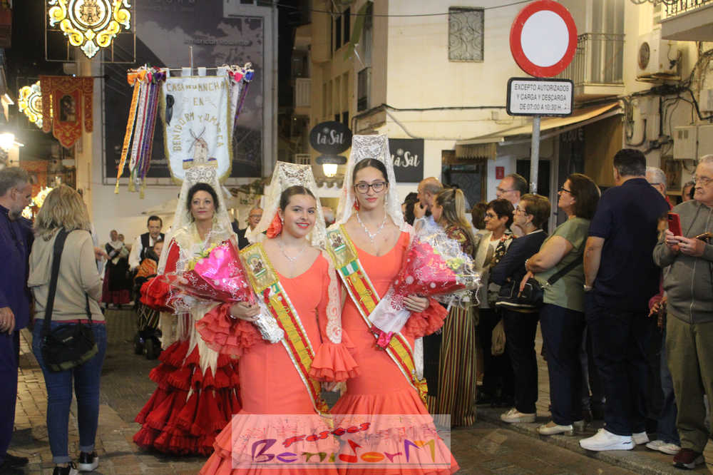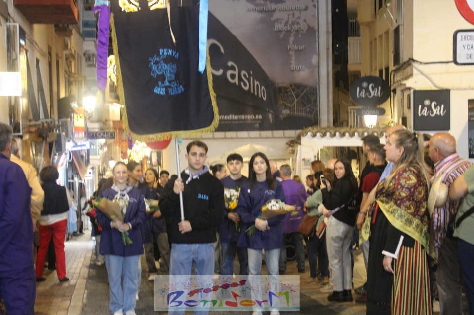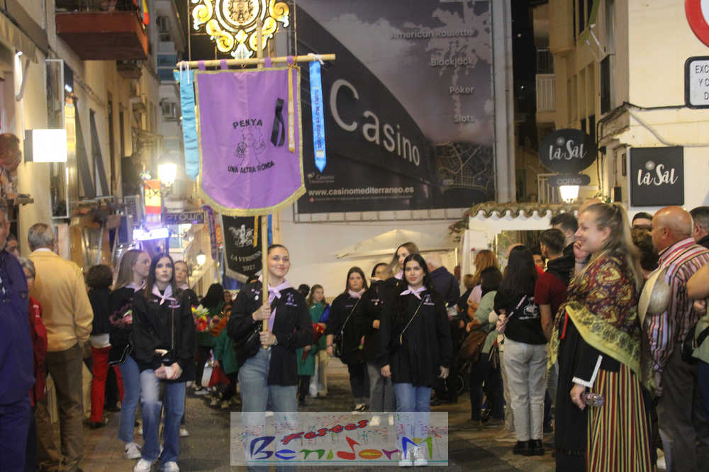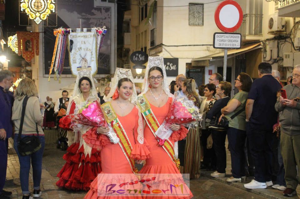 Centenares de benidormenses, vecinos de otras poblaciones y turistas participaron o aplaudieron este desfile a lo largo de todo el recorrido. Y quienes salieron en él lo hicieron portando vistosos y coloridos ramos o cestas de flores en señal de devoción a la patrona, a la que lanzaron besos, pidieron protección o ante la cual derramaron lágrimas de emoción o tristeza por el recuerdo de seres queridos.