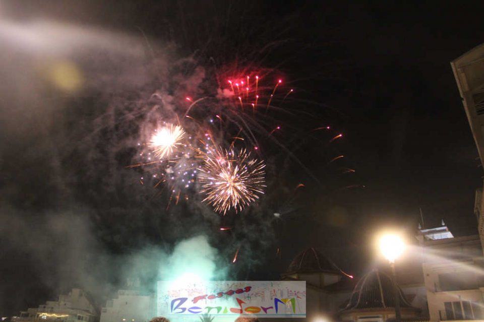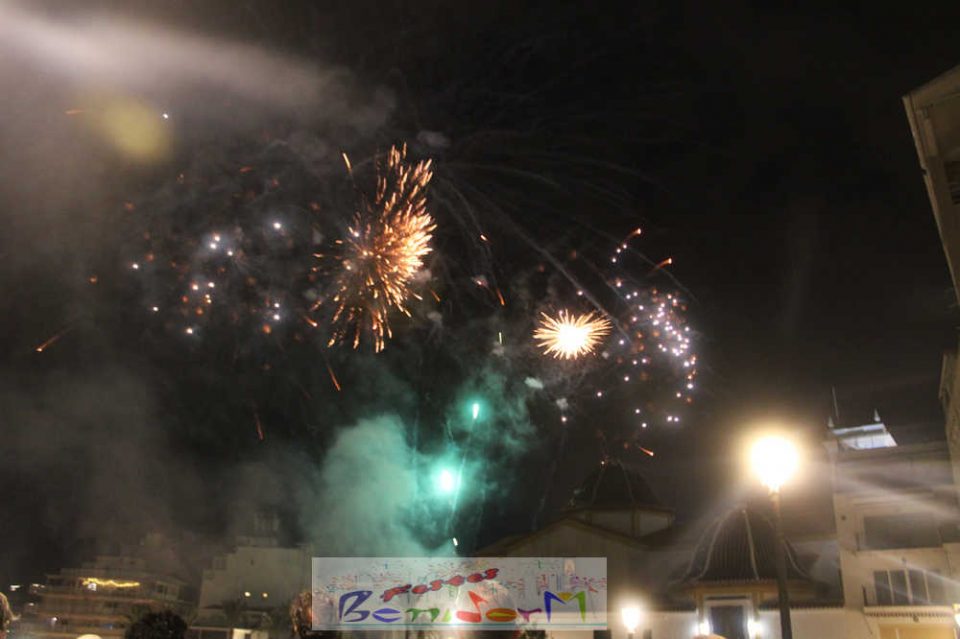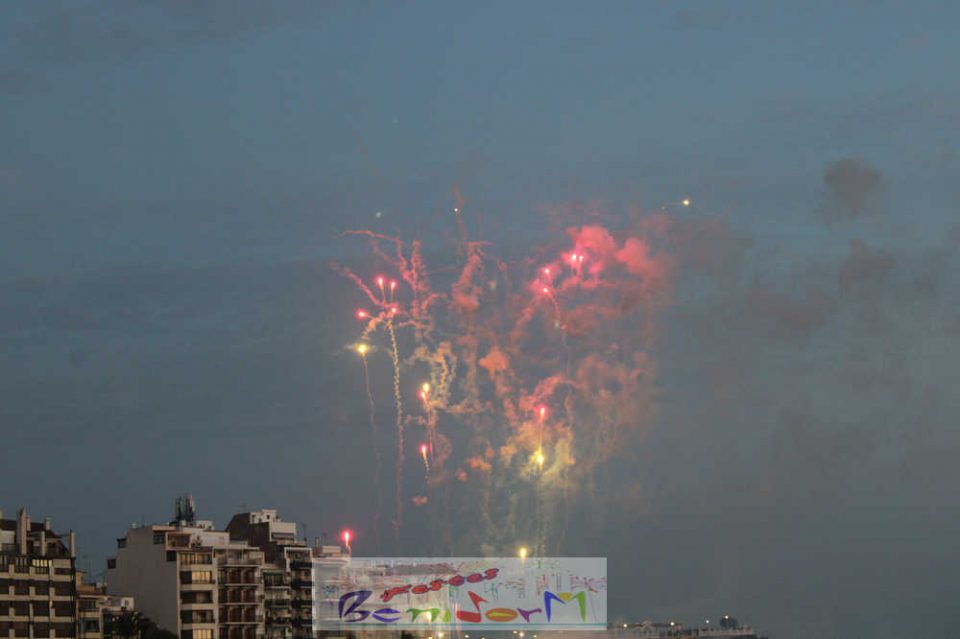 La interpretación de los himnos oficiales de Benidorm y de la Comunidad Valenciana y el disparo de fuegos artificiales pusieron el broche al programa oficial de la jornada del sábado, aunque la fiesta continuó con conciertos, ambiente en las peñas y mucha gente en la ciudad.