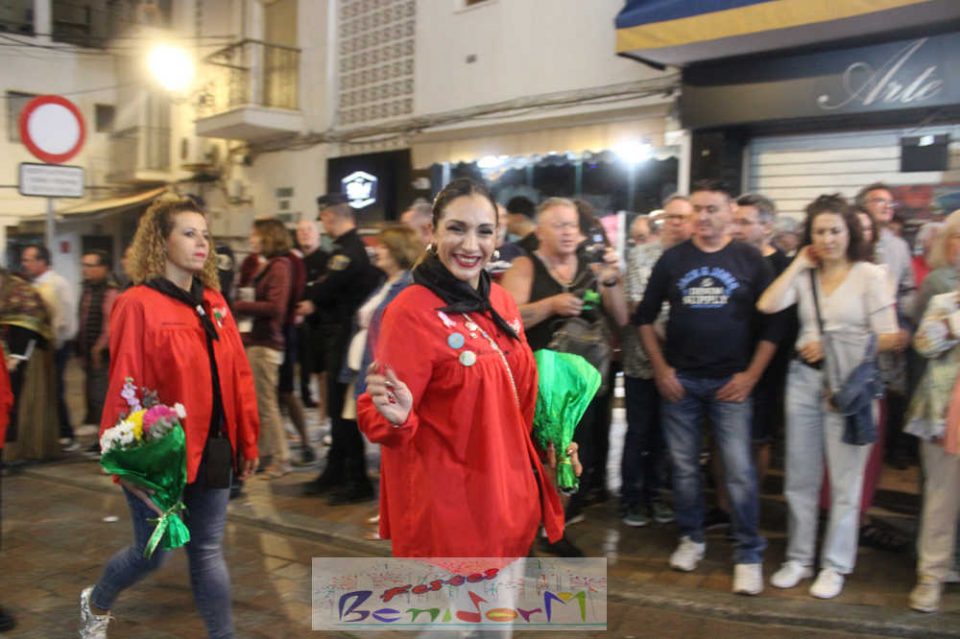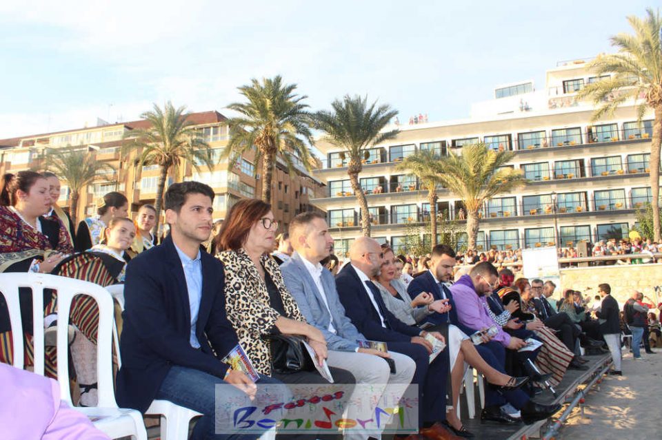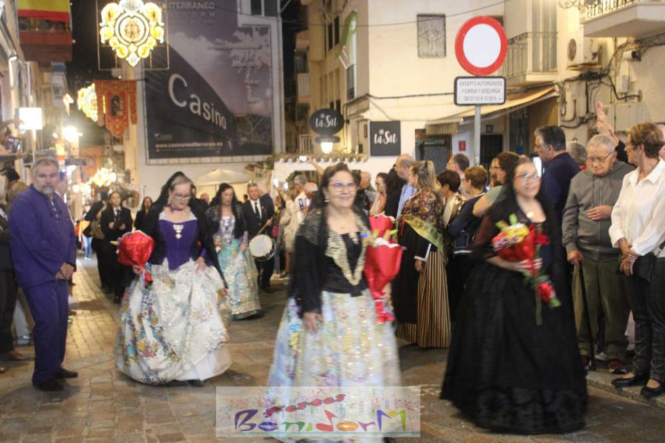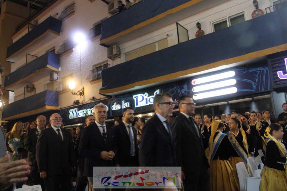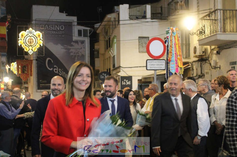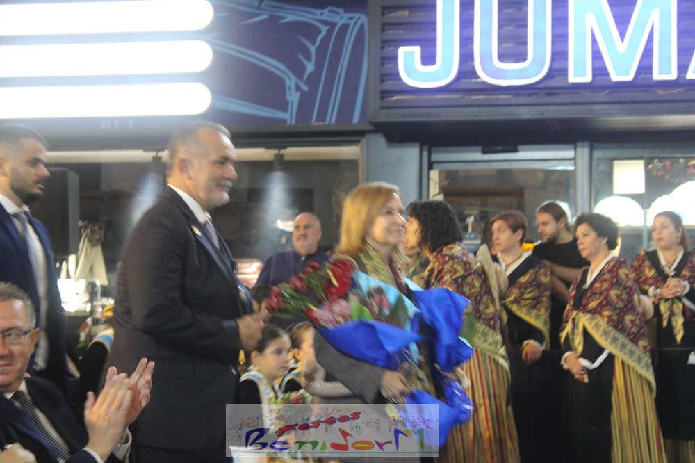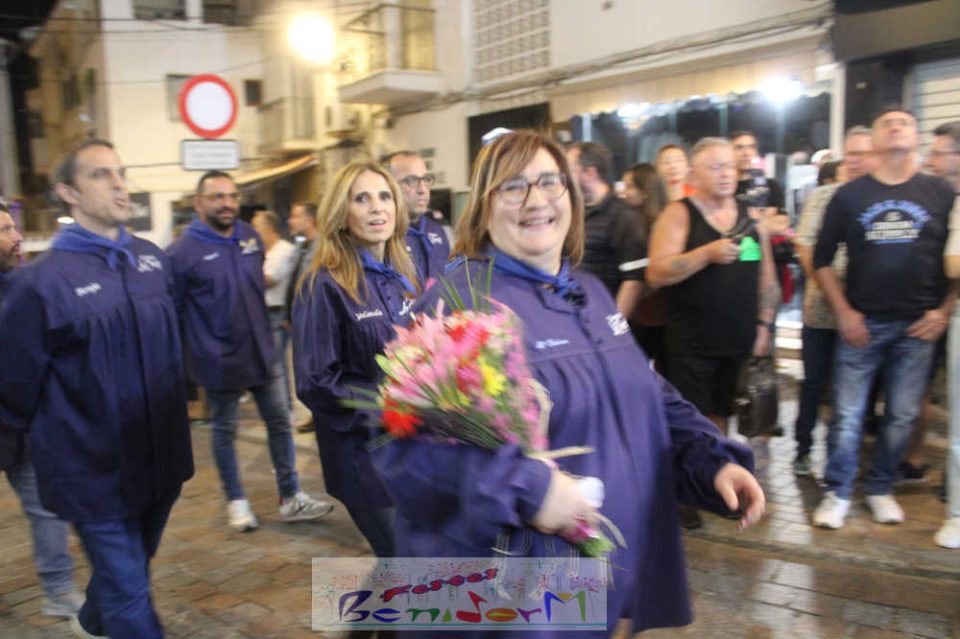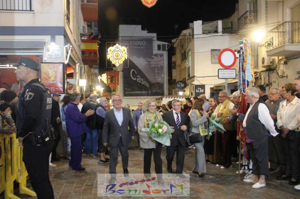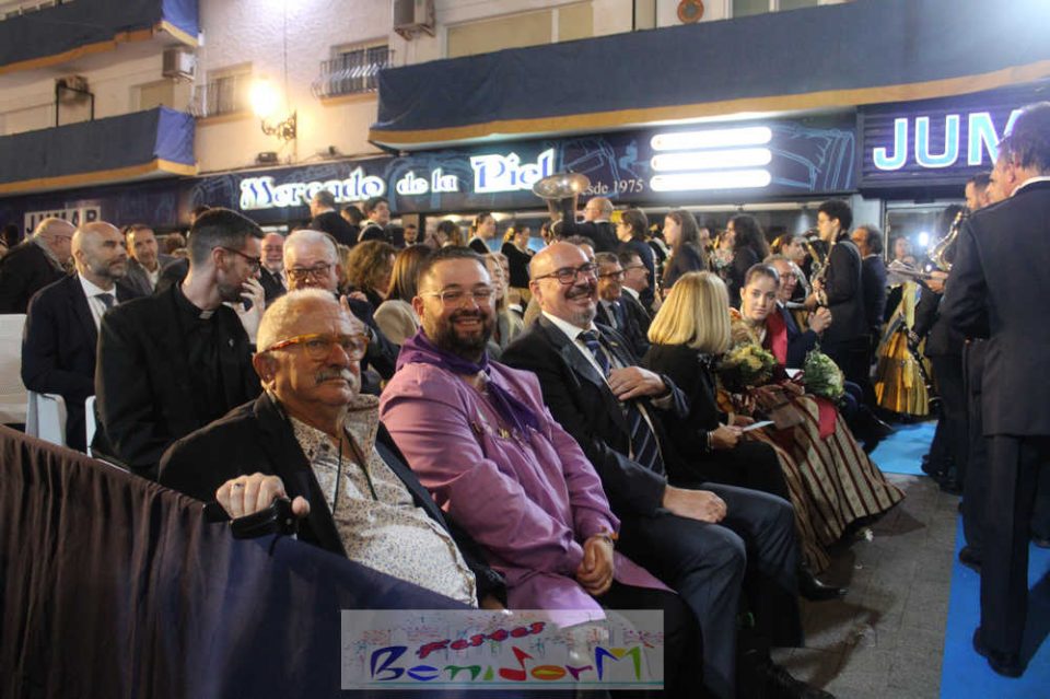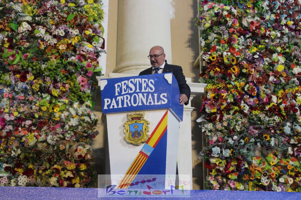Tras el Pregón Oficial, la presidenta de la Comissió de Festes, María Dolores Cano, dedicó también unas palabras a sus mayorales, reinas y damas de honor, peñistas, autoridades y a su propia familia, antes de dar paso al alcalde de Benidorm, Toni Pérez, que puso el broche a la velada ya al filo de las 23 horas.