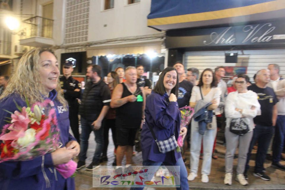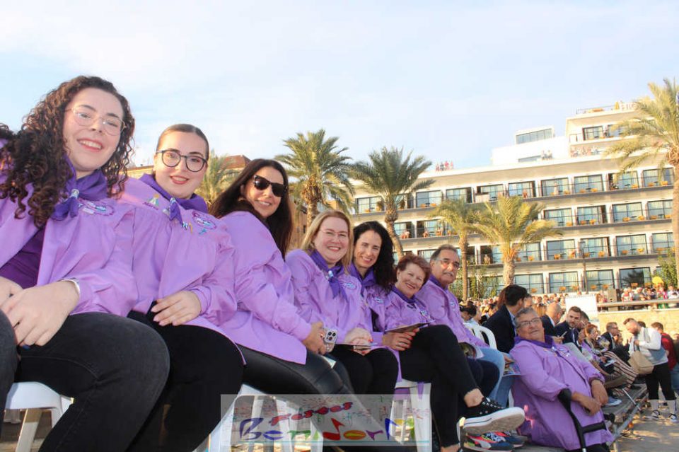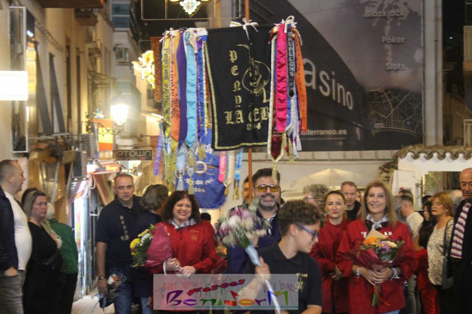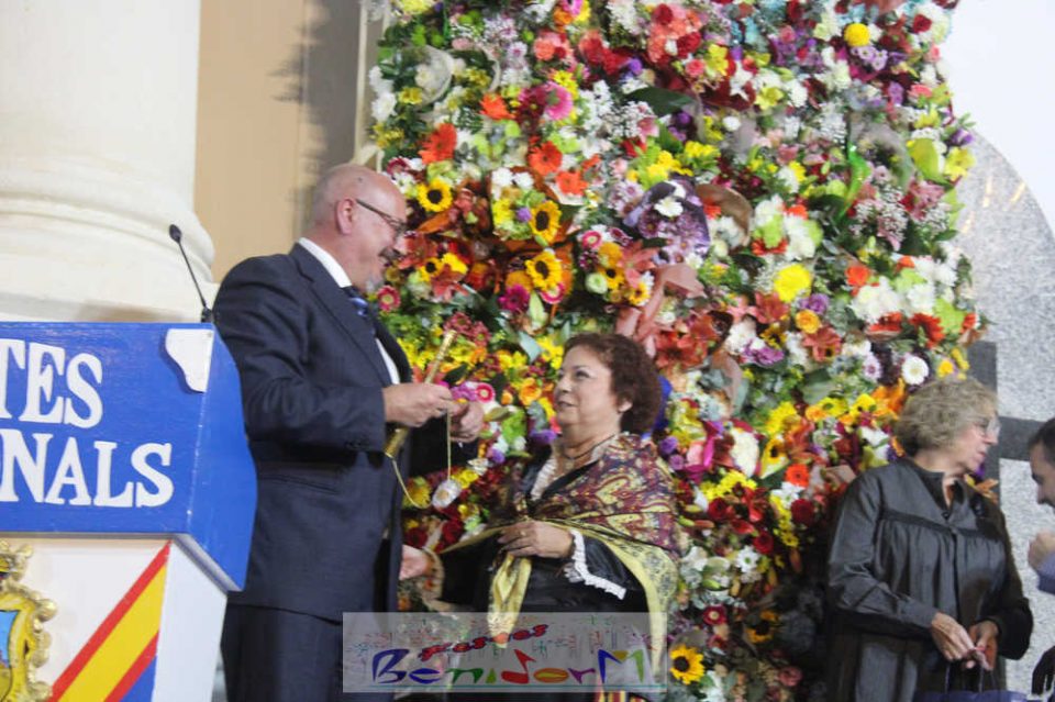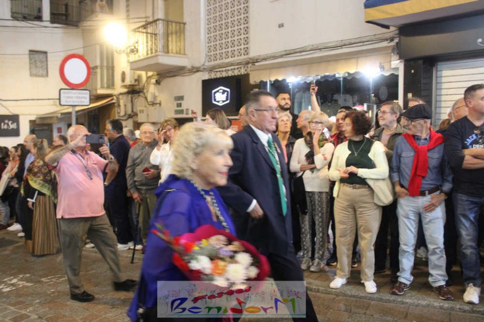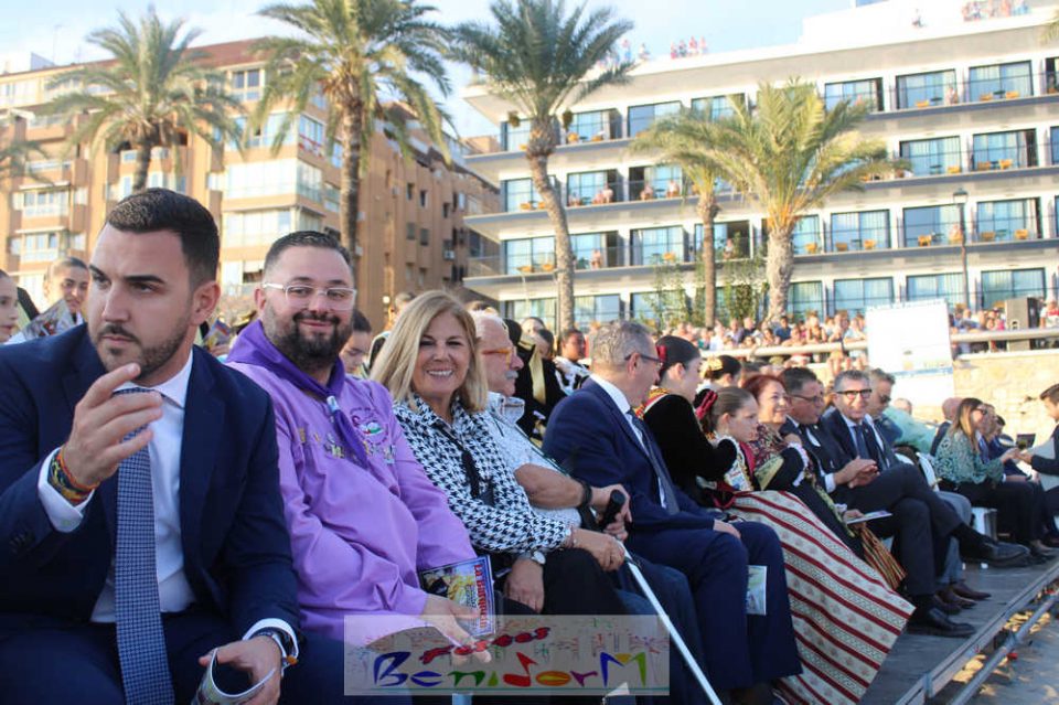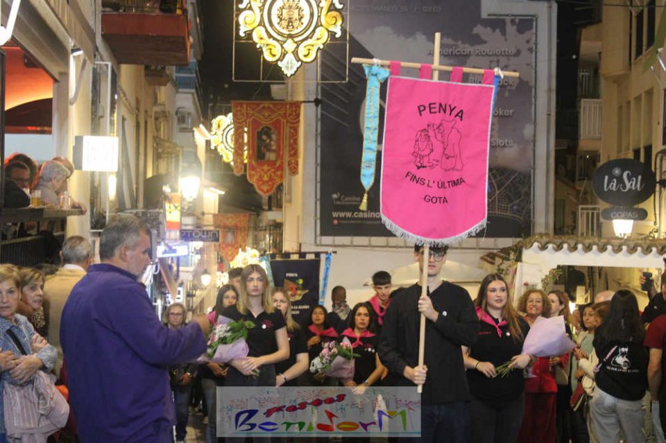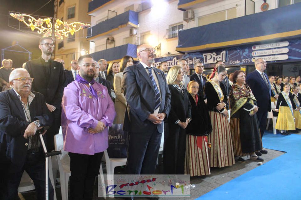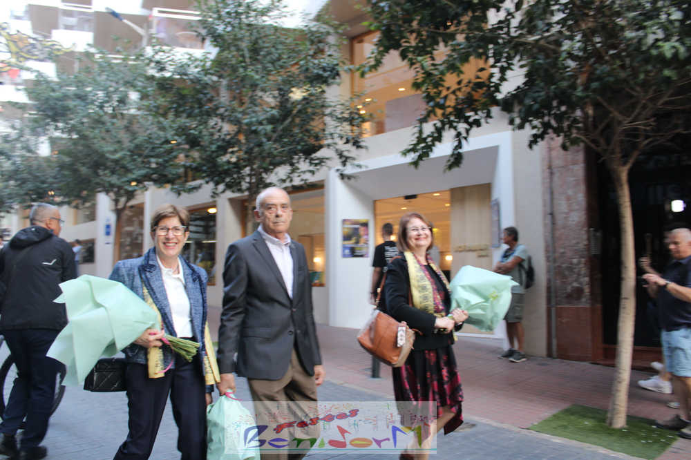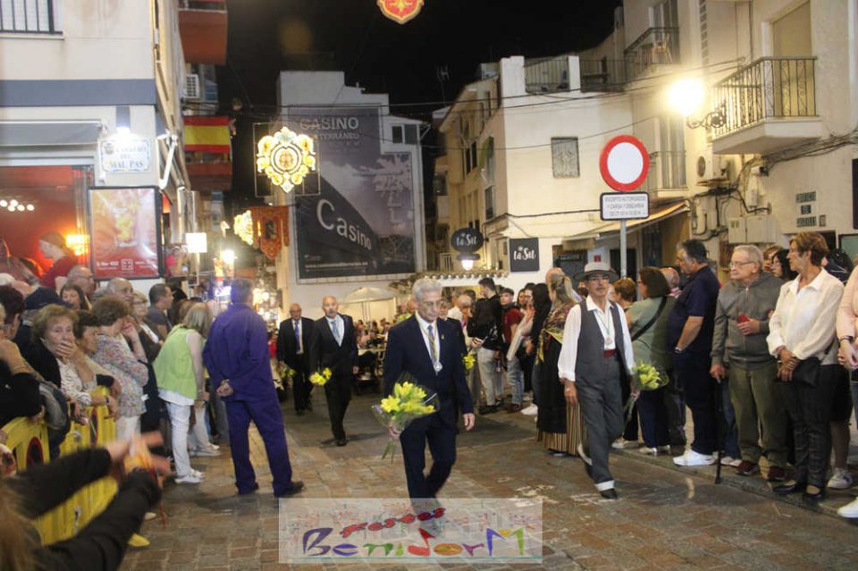 Tras el Pregón Oficial, la presidenta de la Comissió de Festes, María Dolores Cano, dedicó también unas palabras a sus mayorales, reinas y damas de honor, peñistas, autoridades y a su propia familia, antes de dar paso al alcalde de Benidorm, Toni Pérez, que puso el broche a la velada ya al filo de las 23 horas.