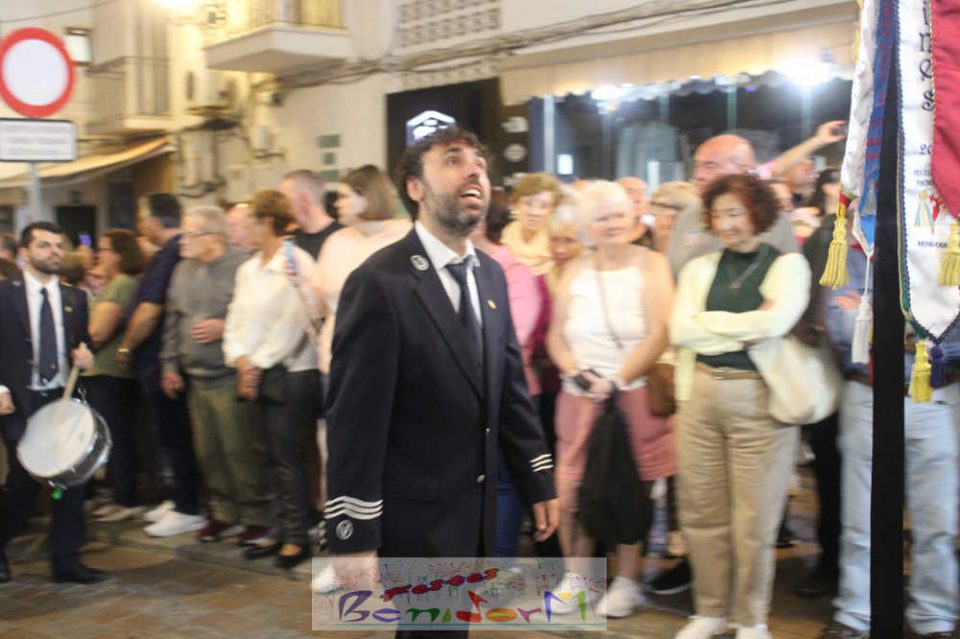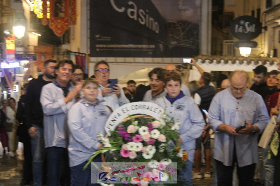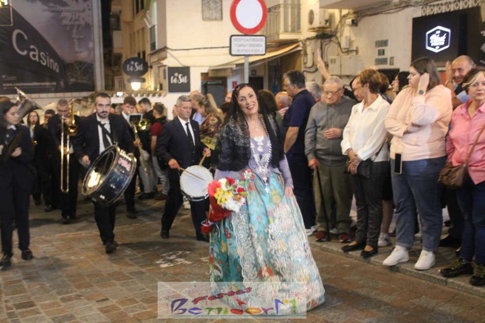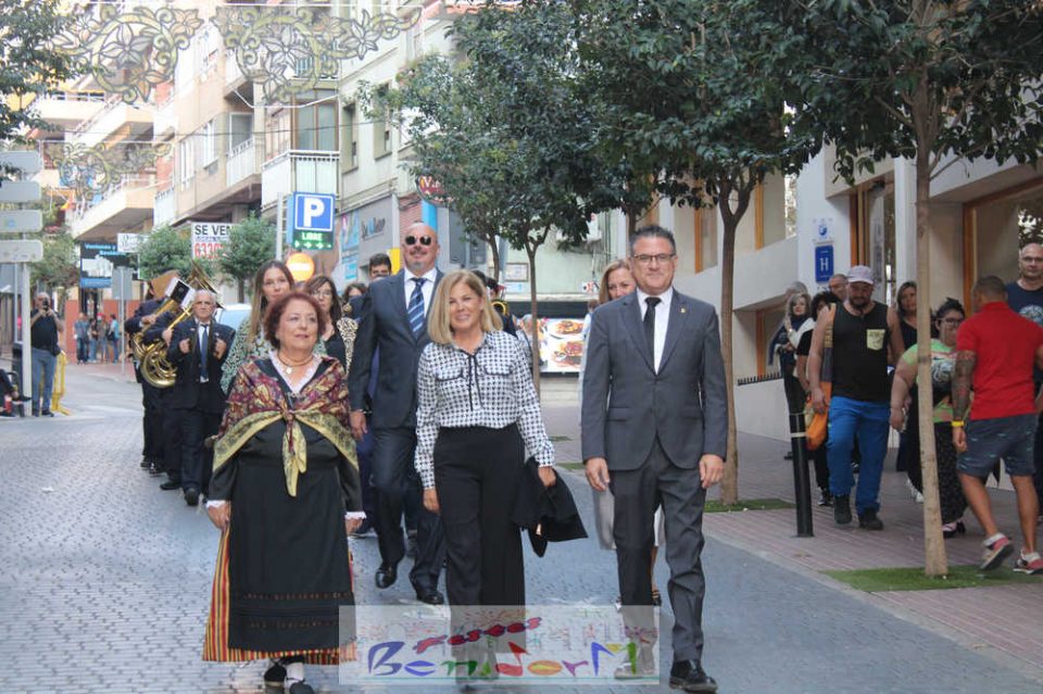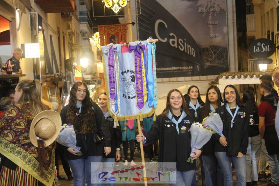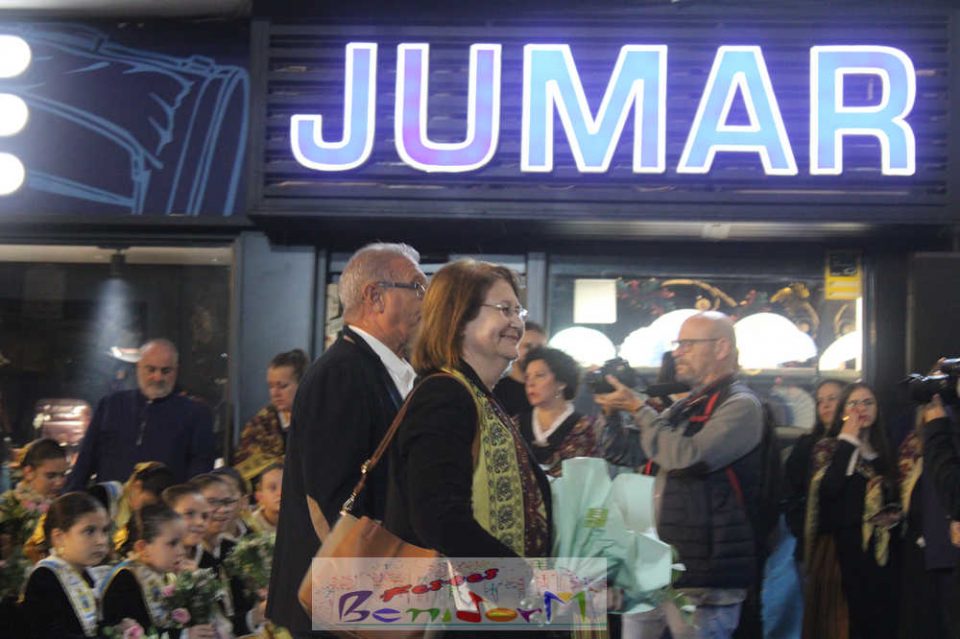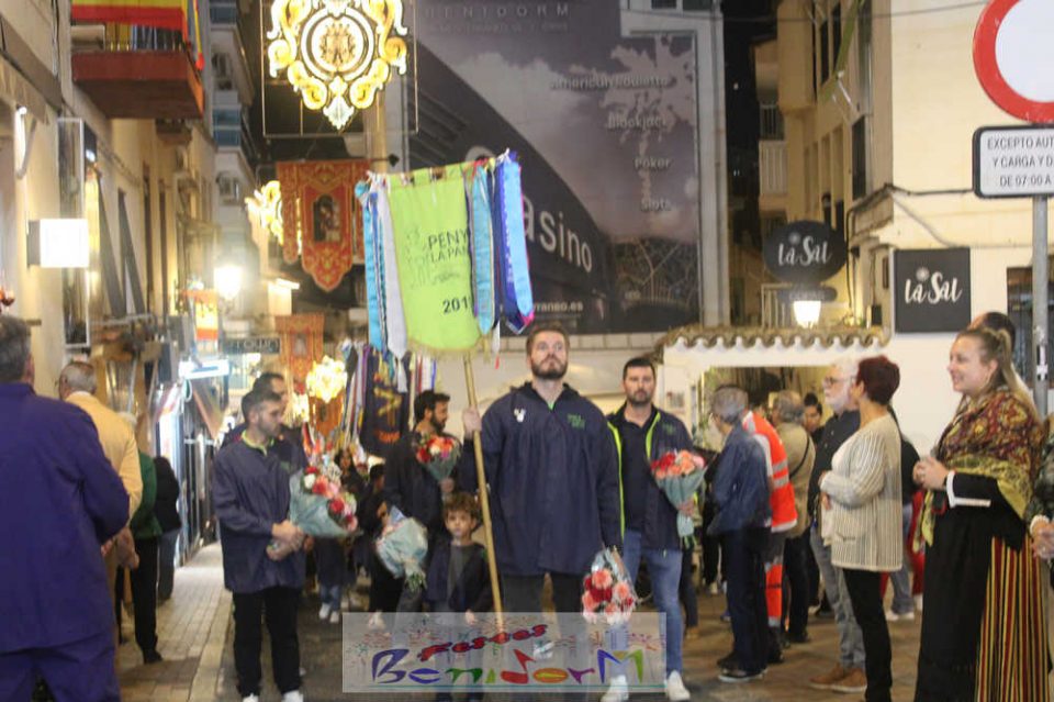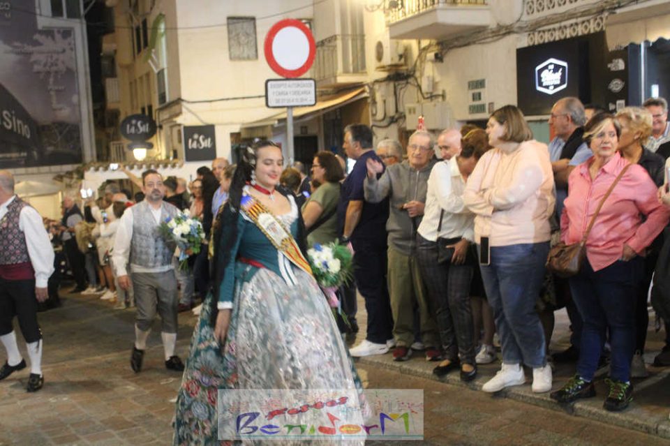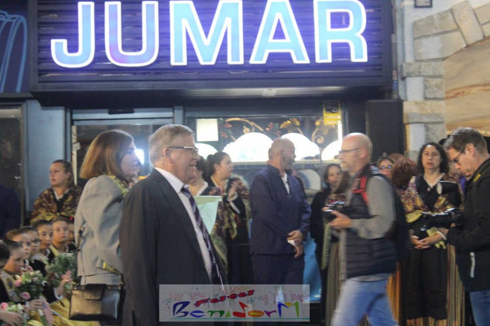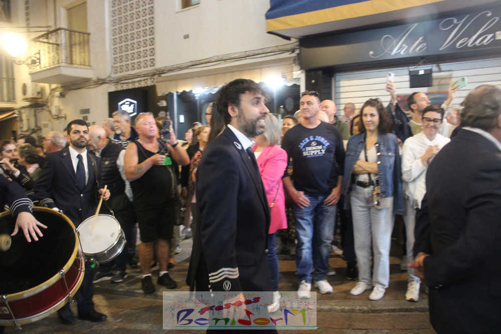 Tras el Pregón Oficial, la presidenta de la Comissió de Festes, María Dolores Cano, dedicó también unas palabras a sus mayorales, reinas y damas de honor, peñistas, autoridades y a su propia familia, antes de dar paso al alcalde de Benidorm, Toni Pérez, que puso el broche a la velada ya al filo de las 23 horas.