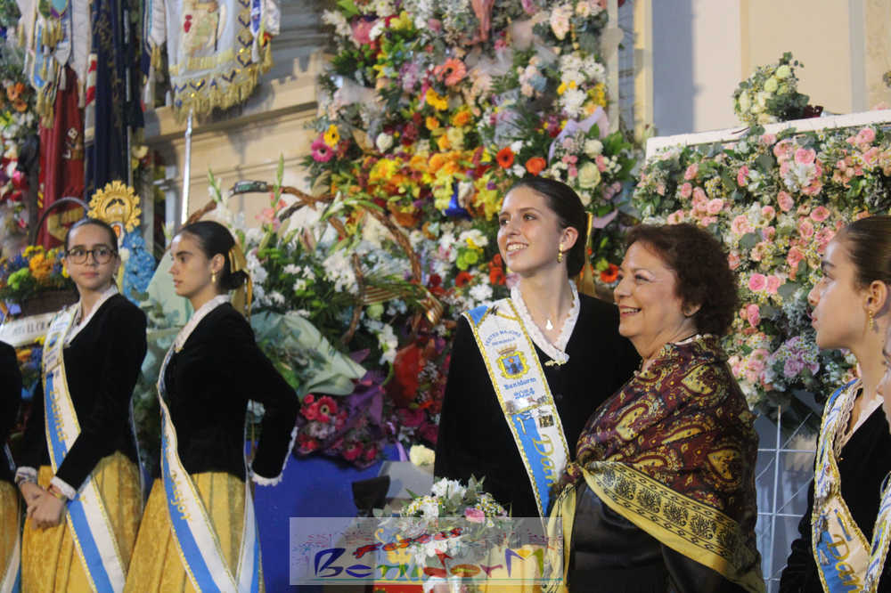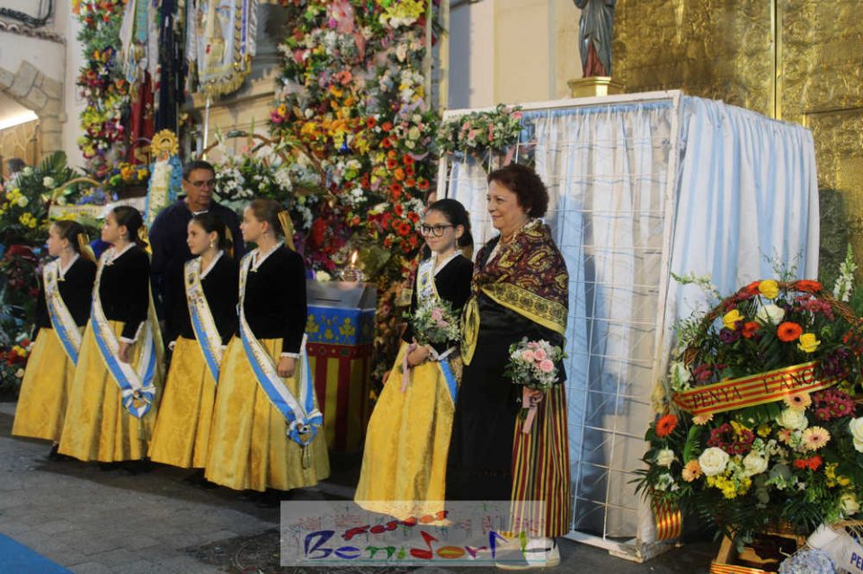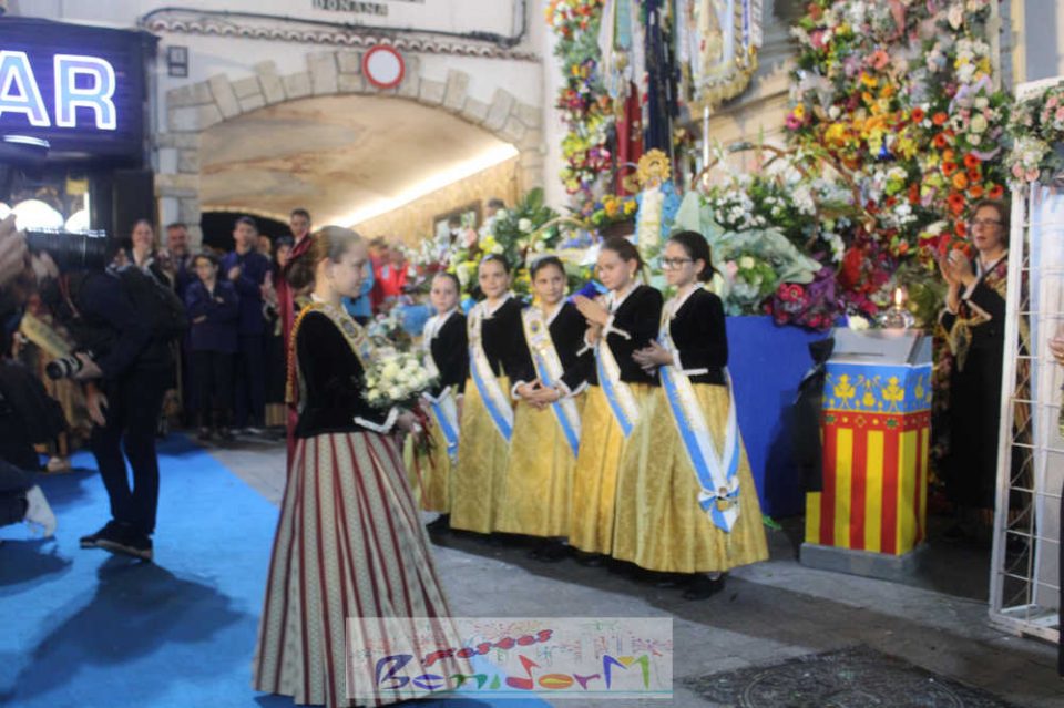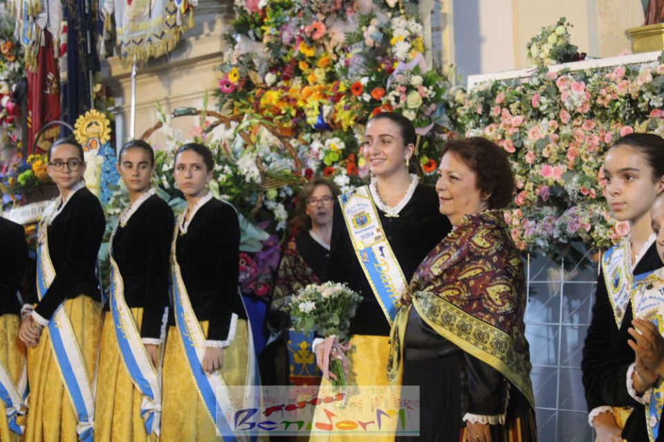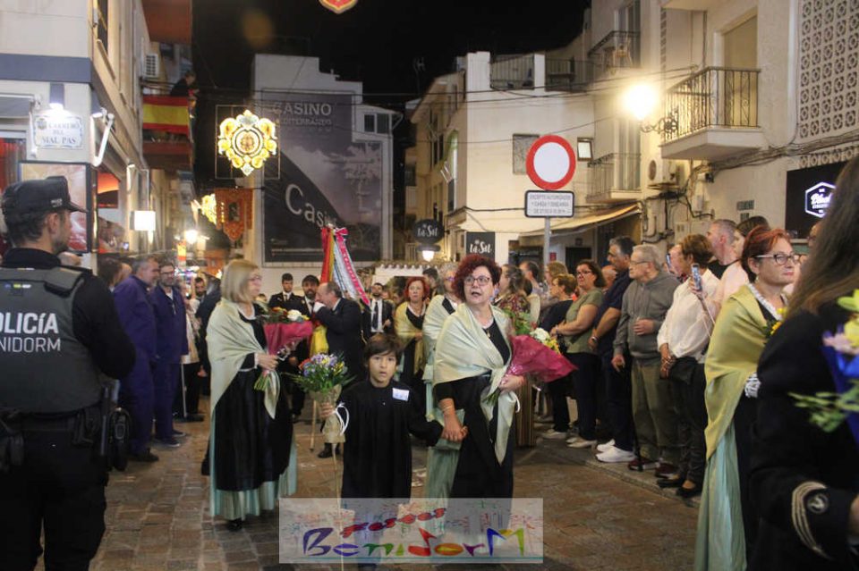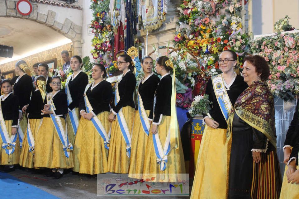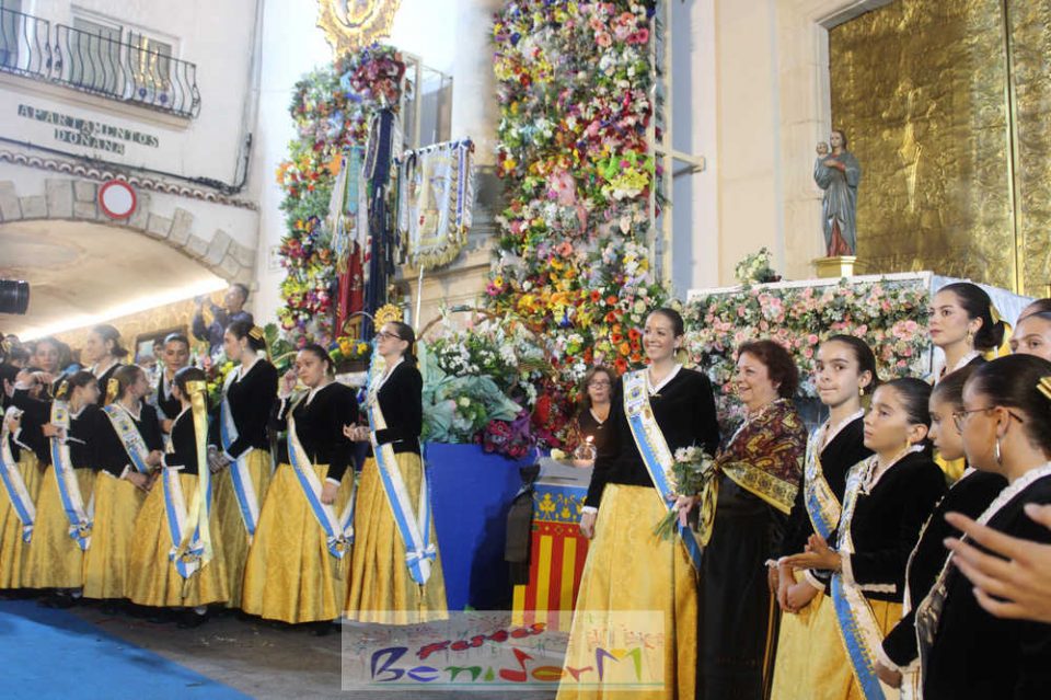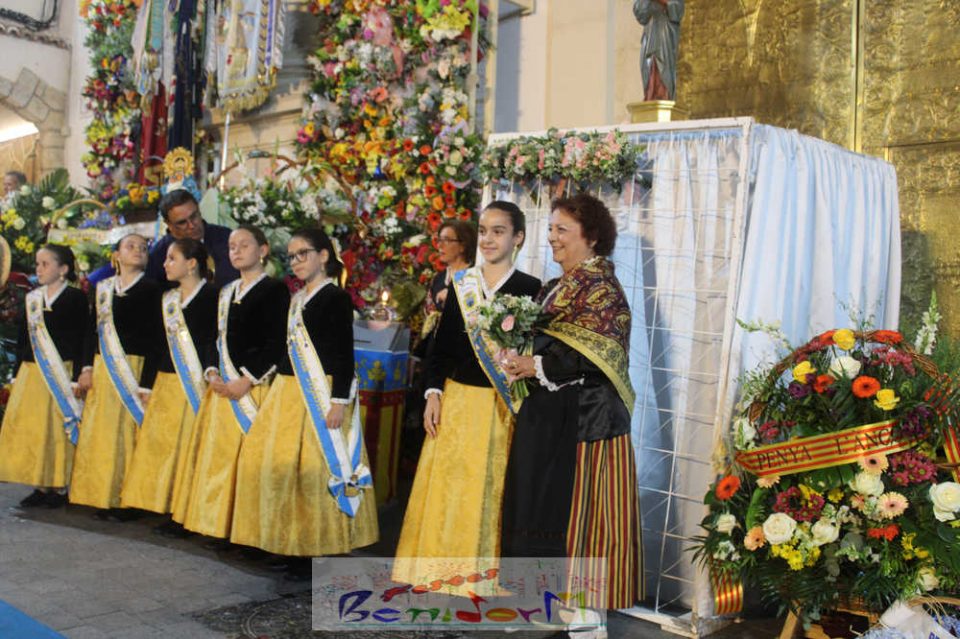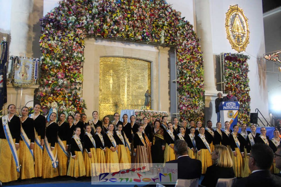 Entre los momentos más emotivos destacó el instante en el que las damas mayores e infantiles de las Festes Majors Patronals y las reinas de este año entregaron sus ramos a la Mare de Déu, así como cuando Laia Zamora recitó el tradicional verso a la patrona escrito por su madre, Rosana Picó, y Valentina Almodóbar dedicó unas palabras al pueblo de Benidorm.