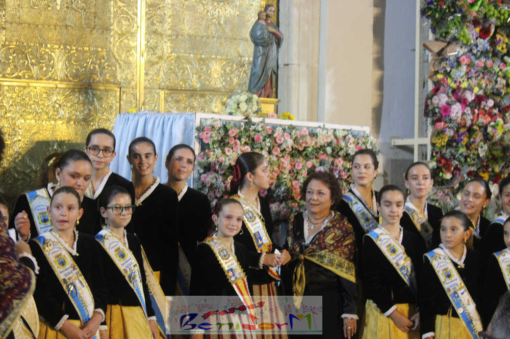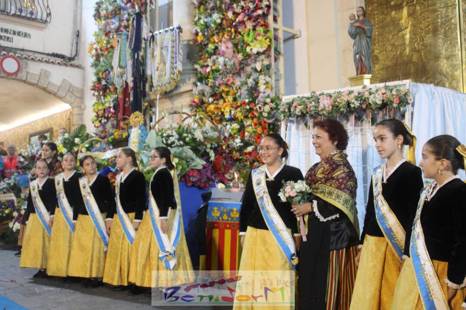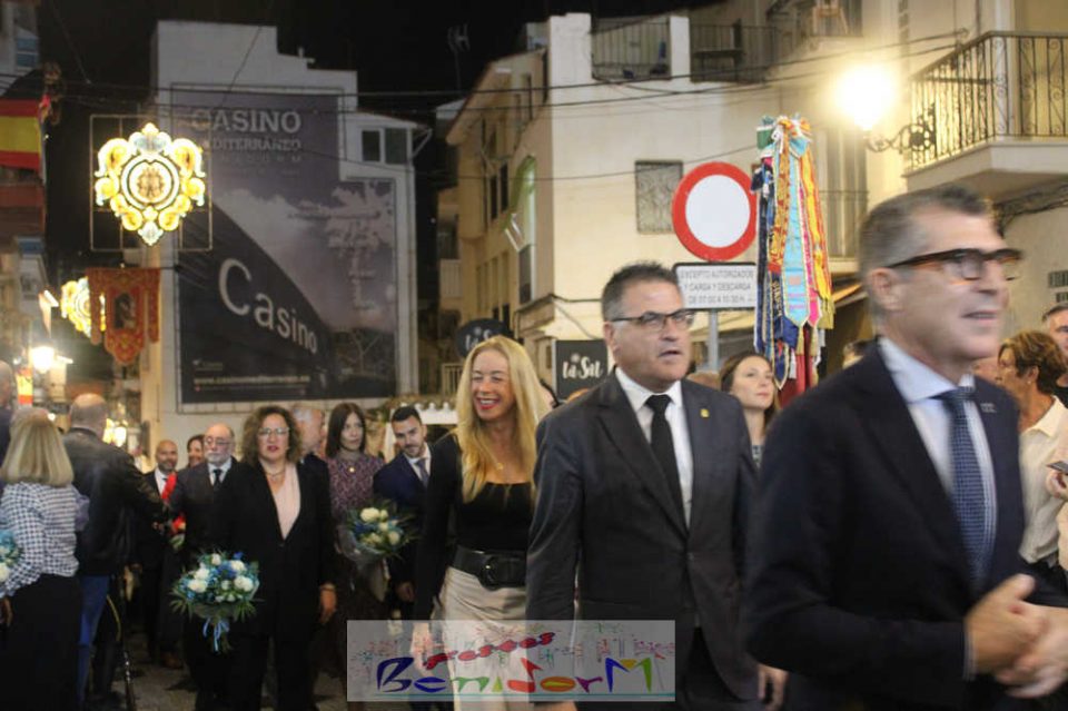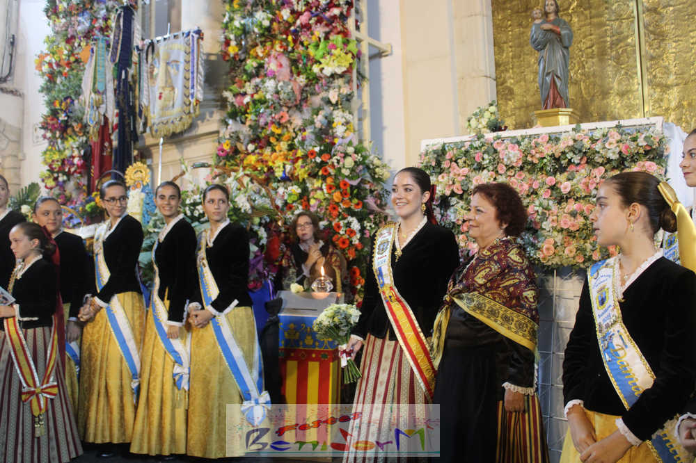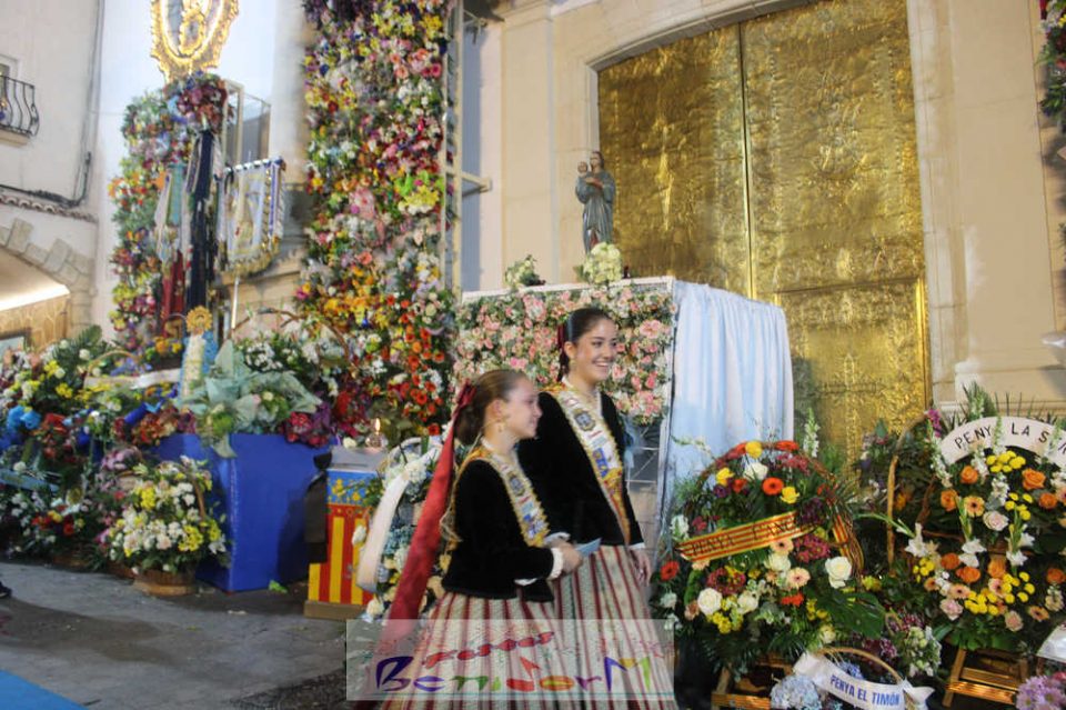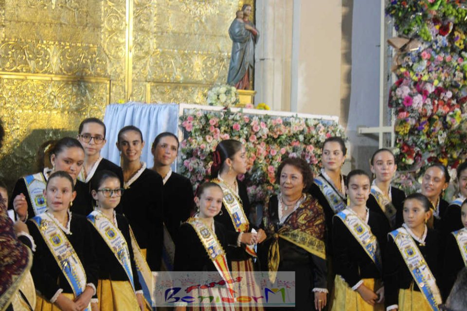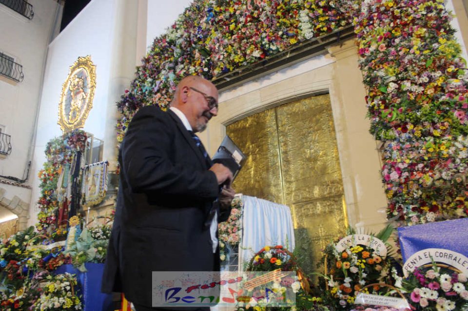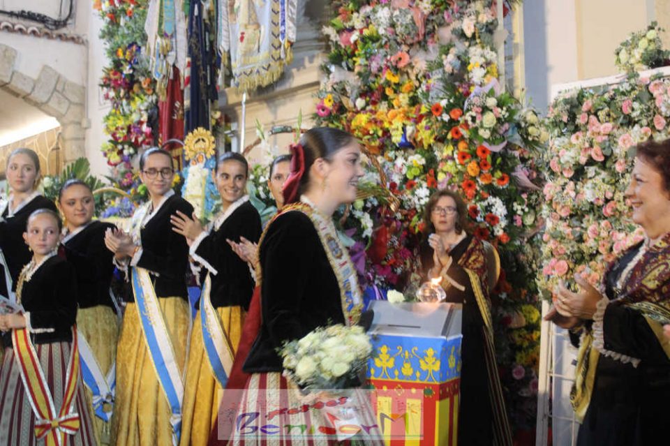 Entre los momentos más emotivos destacó el instante en el que las damas mayores e infantiles de las Festes Majors Patronals y las reinas de este año entregaron sus ramos a la Mare de Déu, así como cuando Laia Zamora recitó el tradicional verso a la patrona escrito por su madre, Rosana Picó, y Valentina Almodóbar dedicó unas palabras al pueblo de Benidorm.