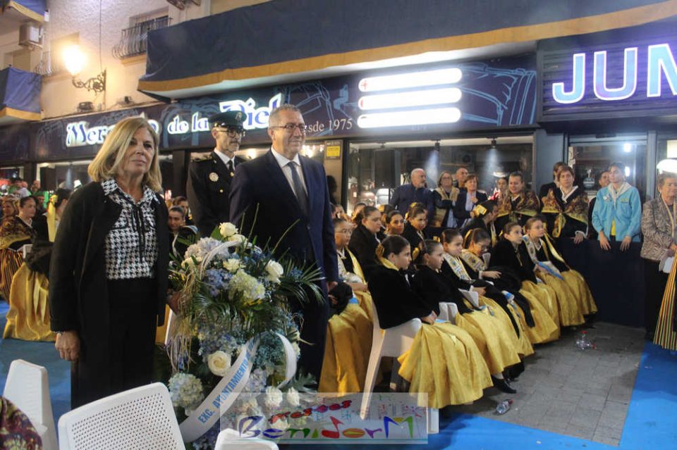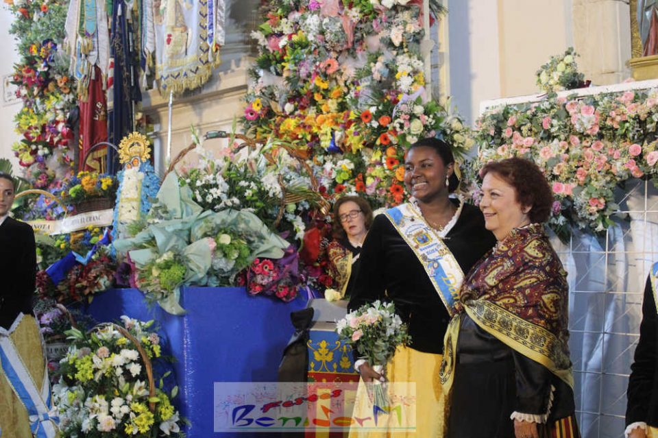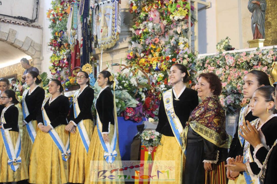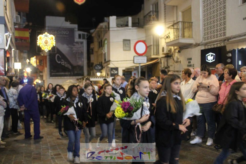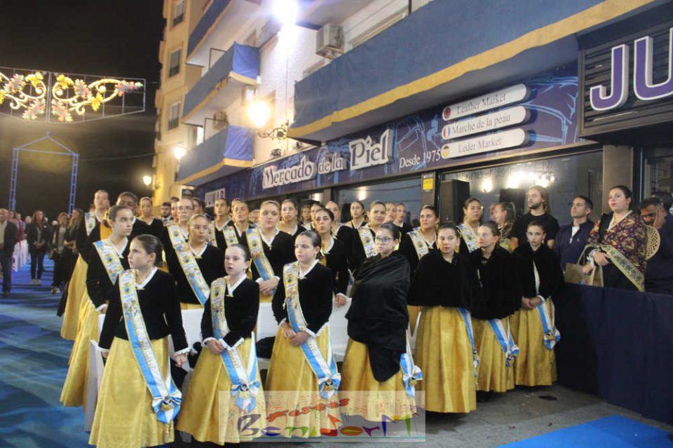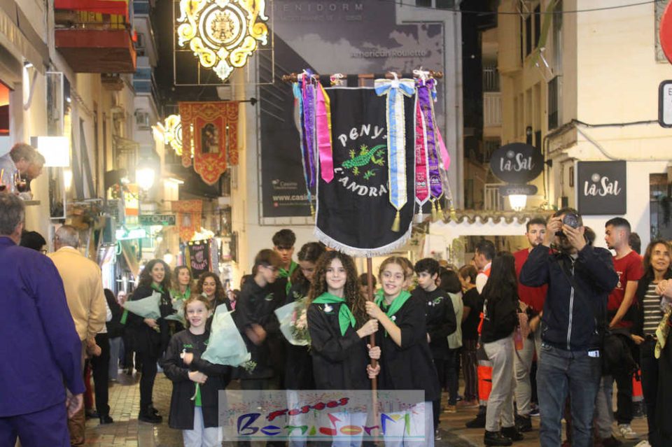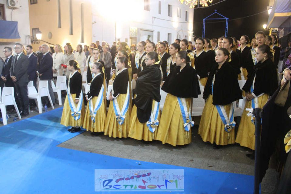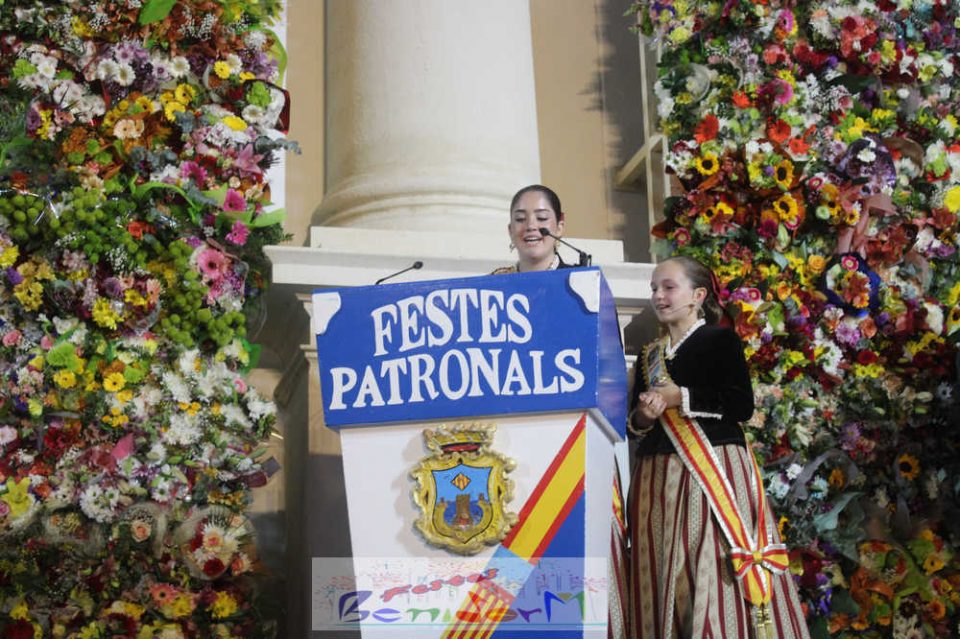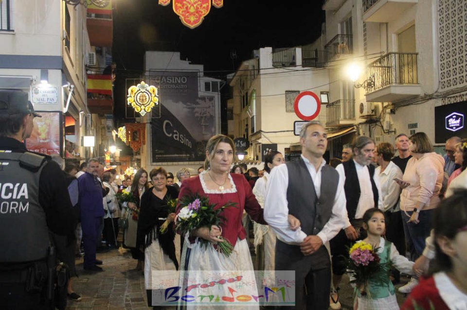 Entre los momentos más emotivos destacó el instante en el que las damas mayores e infantiles de las Festes Majors Patronals y las reinas de este año entregaron sus ramos a la Mare de Déu, así como cuando Laia Zamora recitó el tradicional verso a la patrona escrito por su madre, Rosana Picó, y Valentina Almodóbar dedicó unas palabras al pueblo de Benidorm.