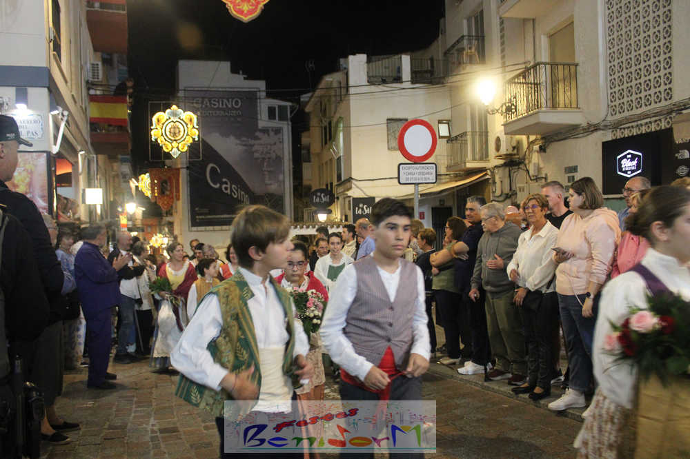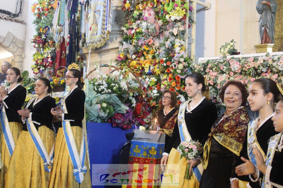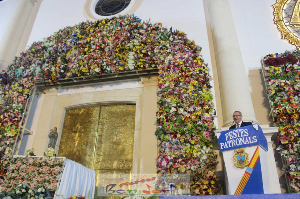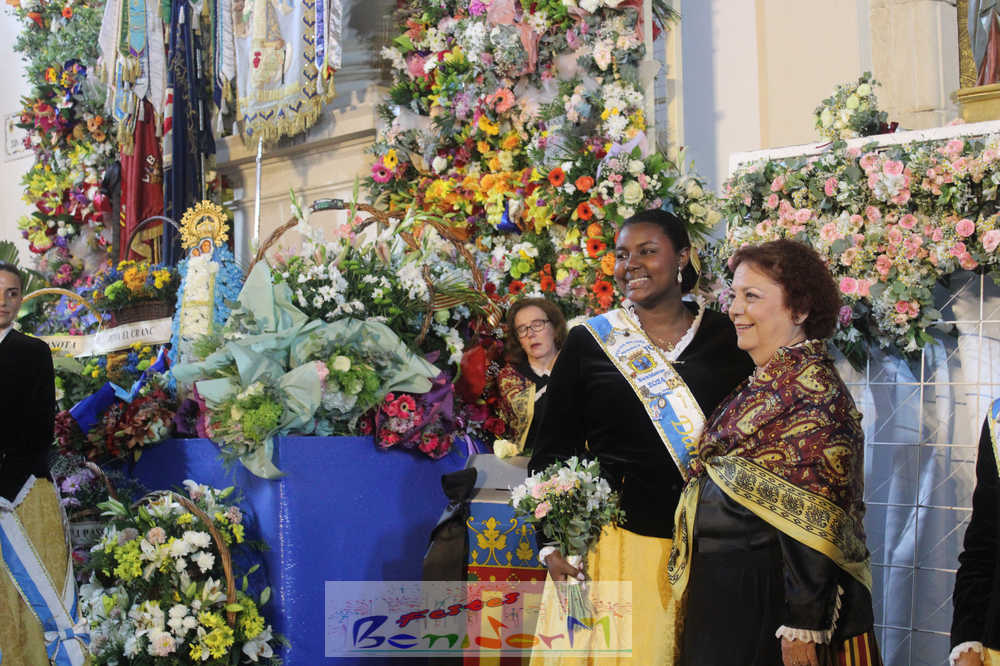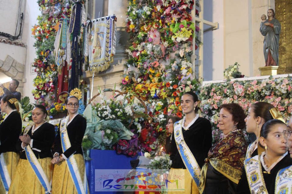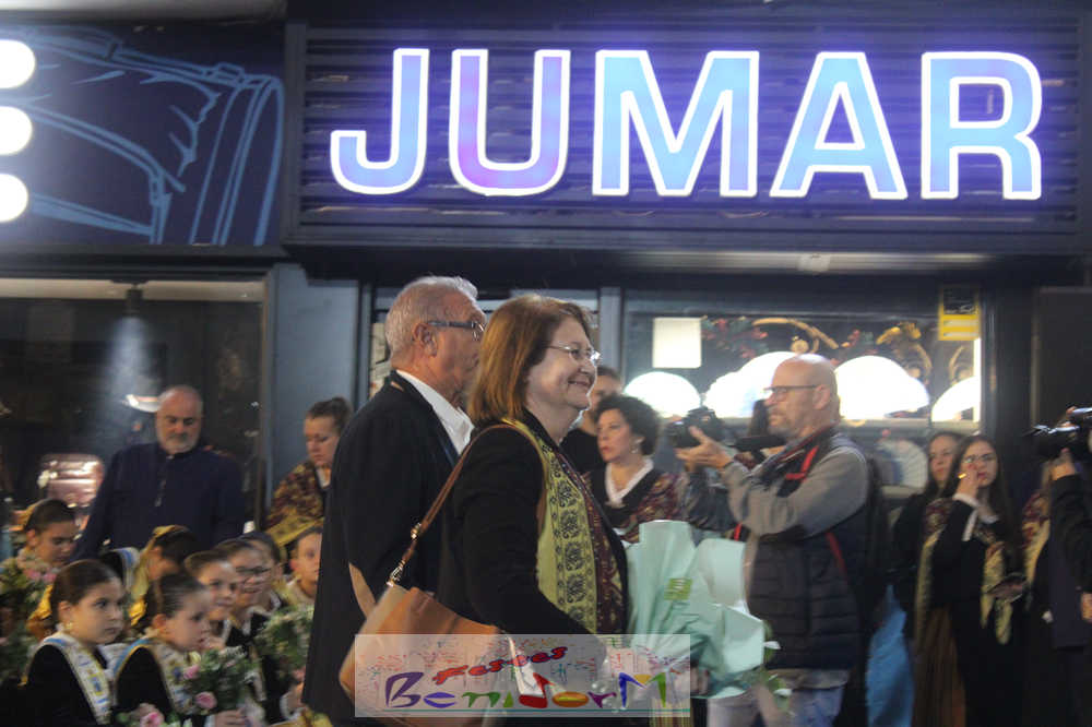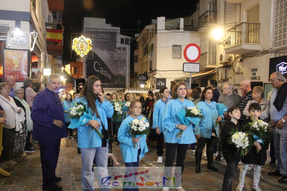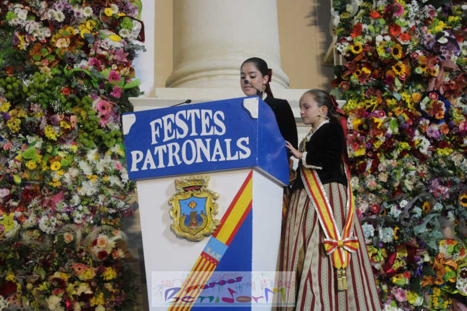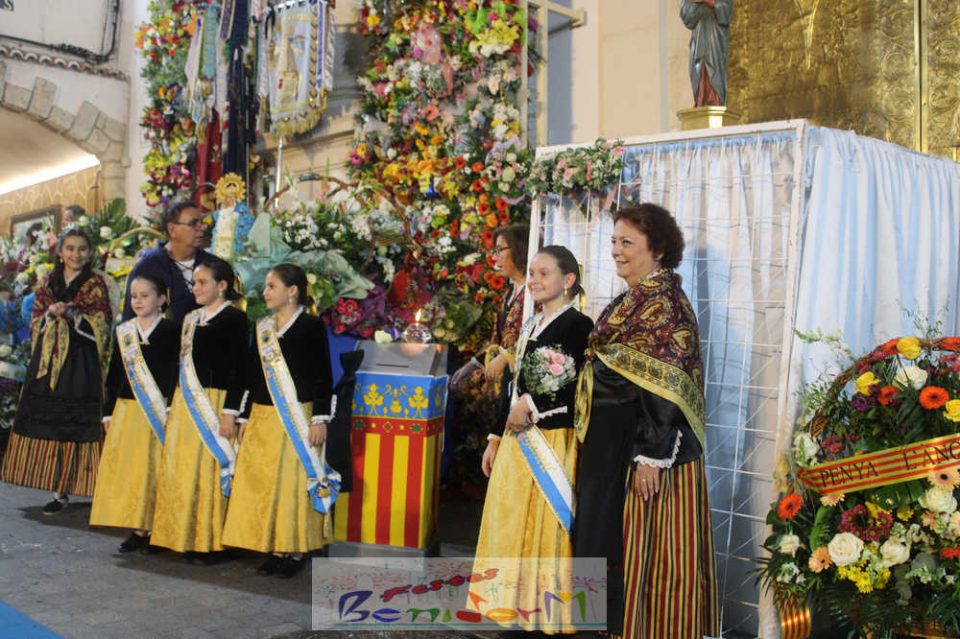 Entre los momentos más emotivos destacó el instante en el que las damas mayores e infantiles de las Festes Majors Patronals y las reinas de este año entregaron sus ramos a la Mare de Déu, así como cuando Laia Zamora recitó el tradicional verso a la patrona escrito por su madre, Rosana Picó, y Valentina Almodóbar dedicó unas palabras al pueblo de Benidorm.