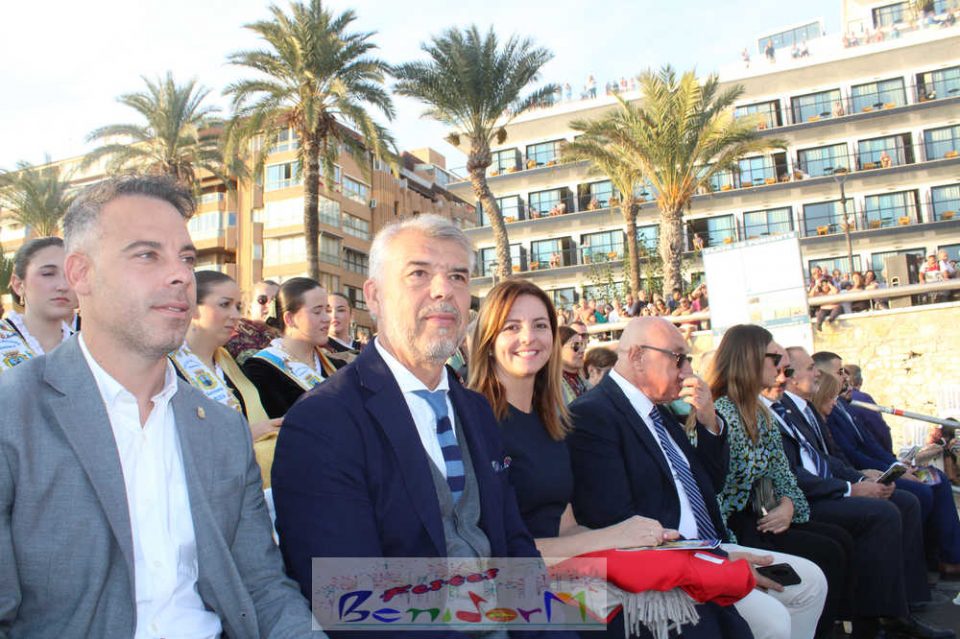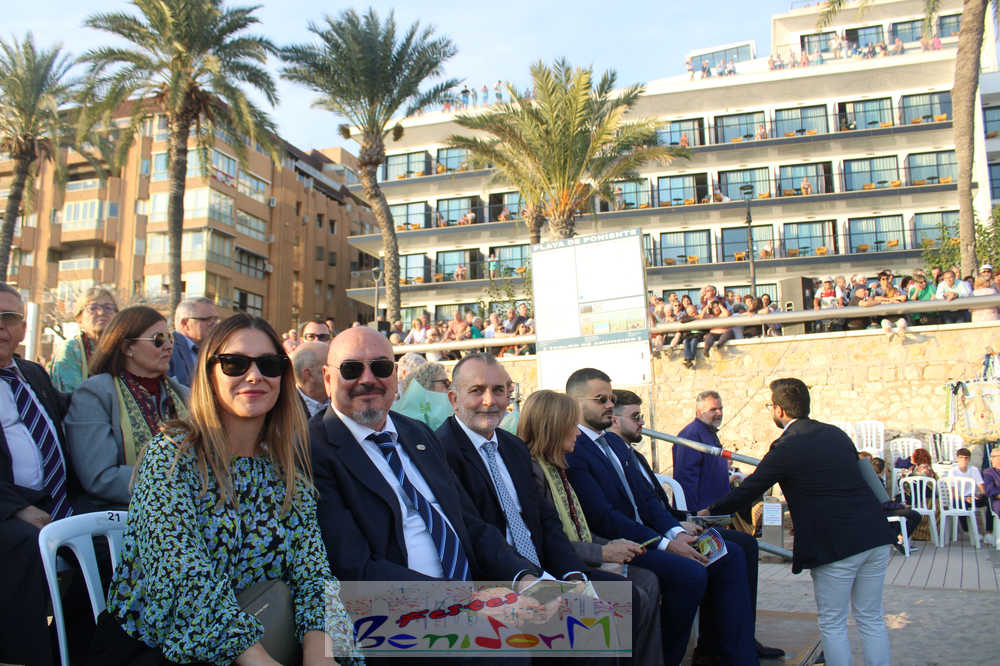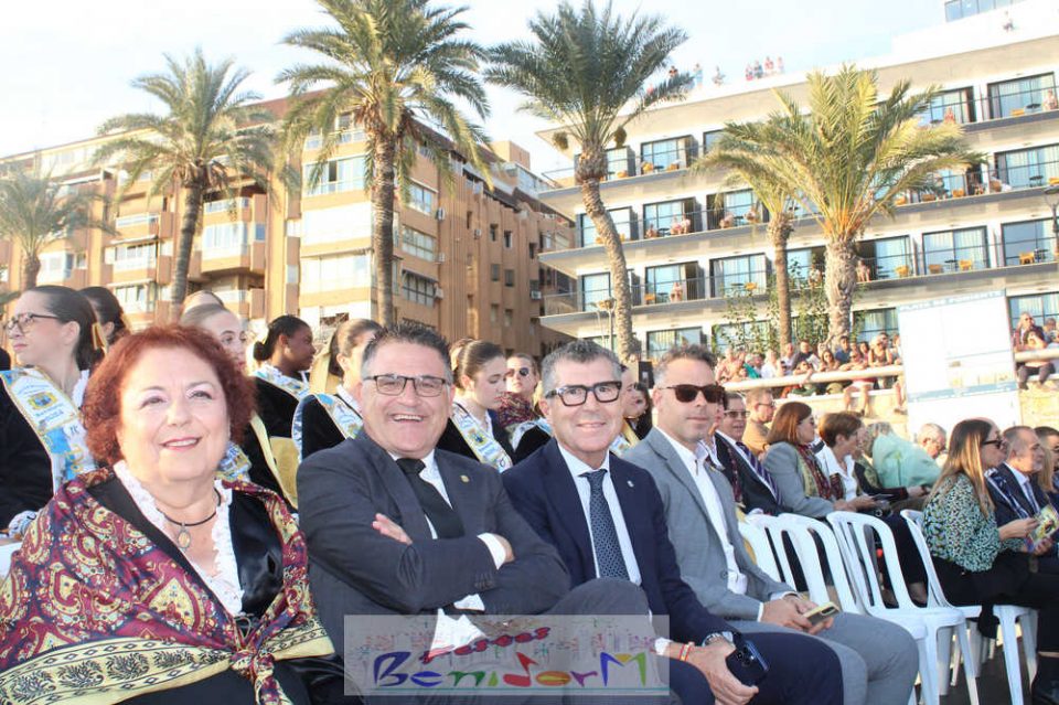 Pero también hubo tiempo para la solidaridad. Benidorm, que siempre ha sido un pueblo solidario, ayer lo volvió a demostrar. Los festeros, las entidades, las peñas… depositaron en el buzón instalado junto a la imagen de la patrona sus ayudas en forma de donativos para los afectados por la DANA de Valencia. Una catástrofe que estuvo muy presente en las intervenciones de todos los que subieron al estrado.
