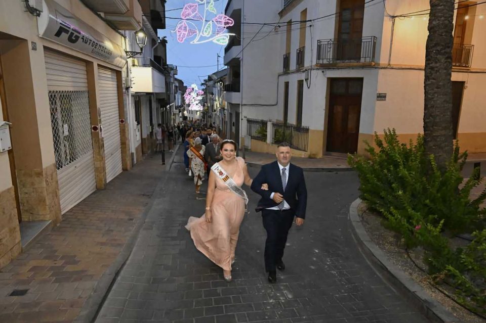 Las reinas primero se concentraron en la plaça dels Músics, donde se les comunicó que se había anulado el acto del “50é aniversari de les Reines de Festes d’Agost” (1971-2020)” en l’Auditori Les Nits y que en su lugar se iba a realizar únicamente un pasacalle. A pesar de la amenaza de lluvia, alguna gota y rachas de viento el pasacalle pudo realizarse. Las 46 reinas con sus bandas de su reinado junto a sus acompañantes salieron en pasacalle desde la plaça del Músics hasta la plaça Major, acompañadas por la banda de la Unió Musical La Nucía. Durante todo el recorrido los vecinos y vecinas, festeros y festeras, vitoreaban a las reinas a su paso.