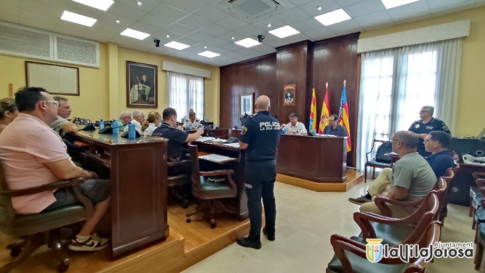 La Junta Local de Seguridad de Villajoyosa se reunió ayer para presentar el plan de seguridad y emergencia que se aplicará durante la celebración de las fiestas patronales de Moros y Cristianos del 24 al 31 de julio. Este plan coordinará las tareas de los diversos agentes de la Policía Local, Guardia Civil, Protección Civil, sanitarios y bomberos.