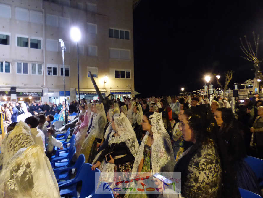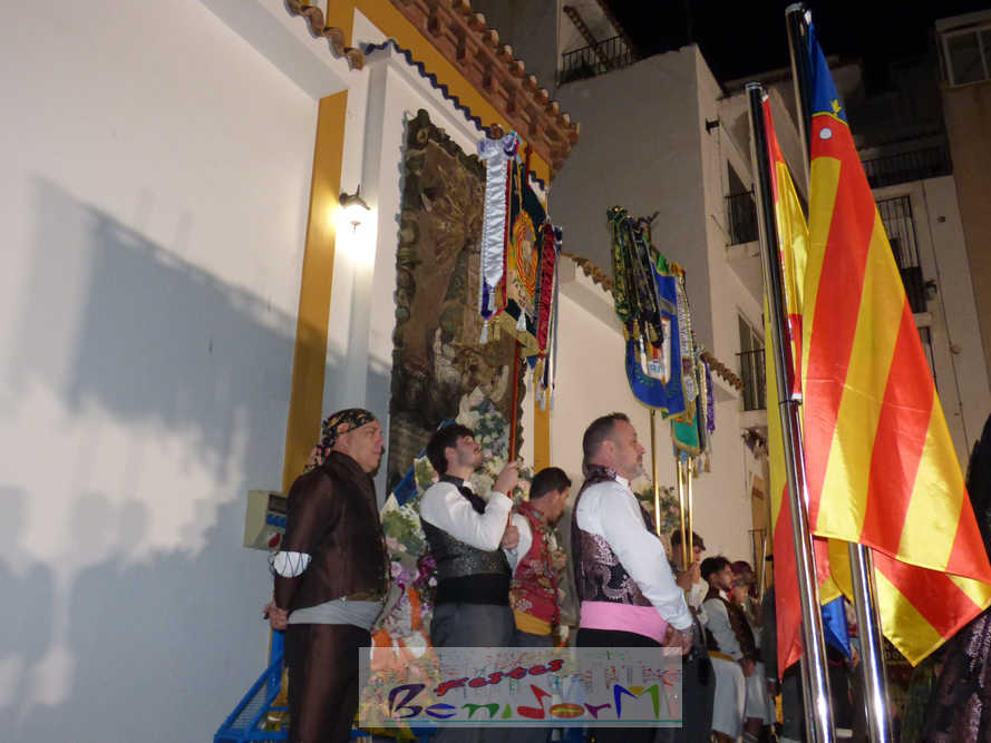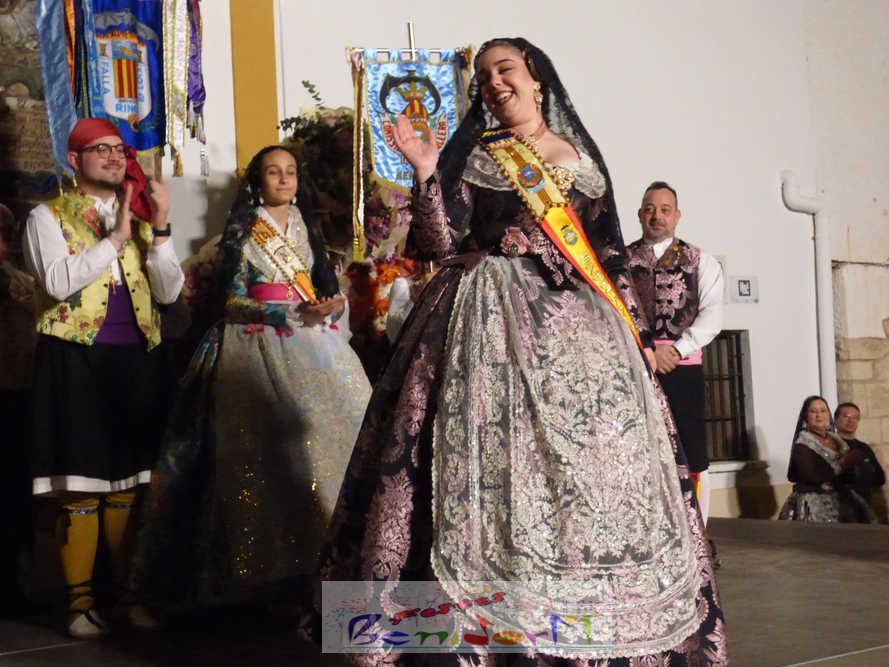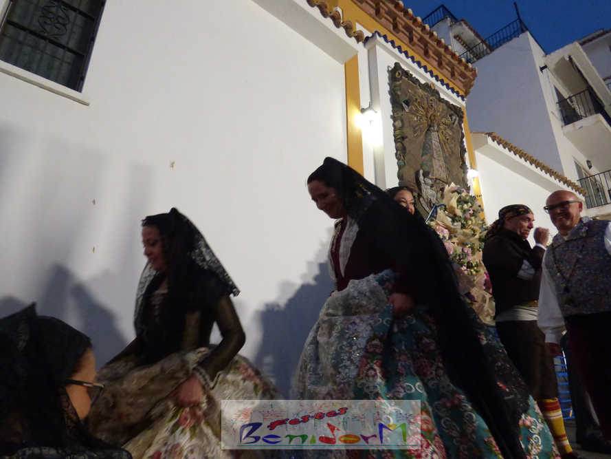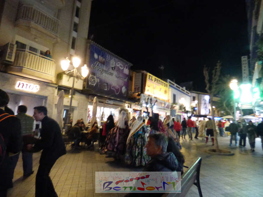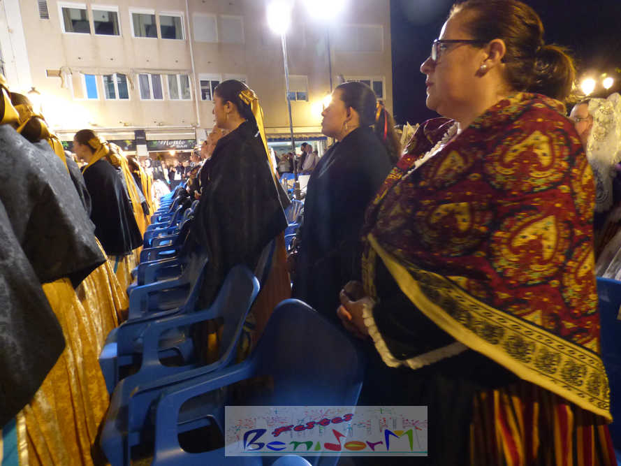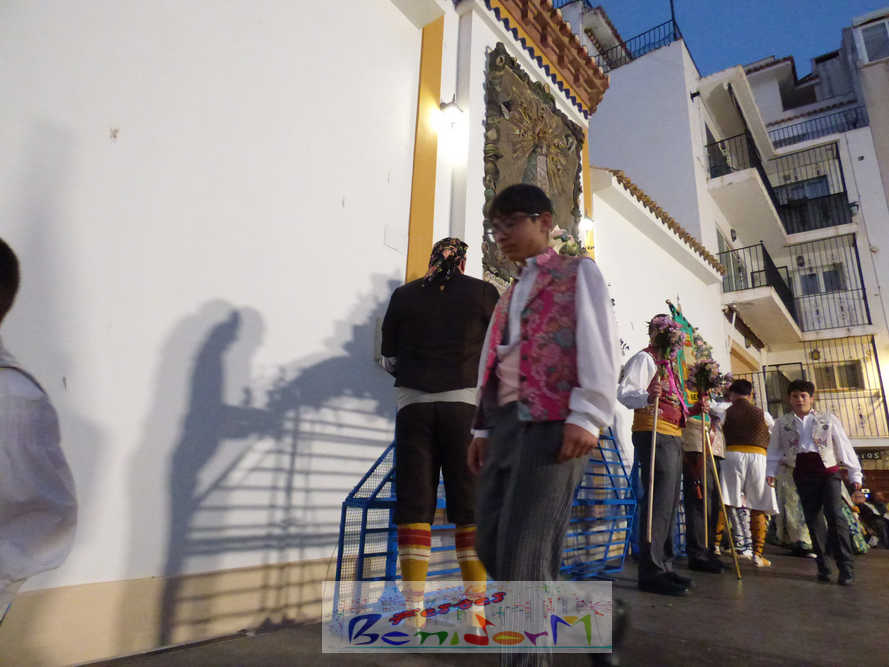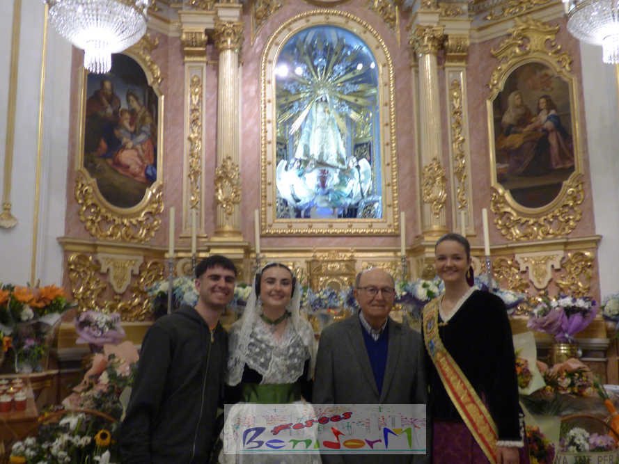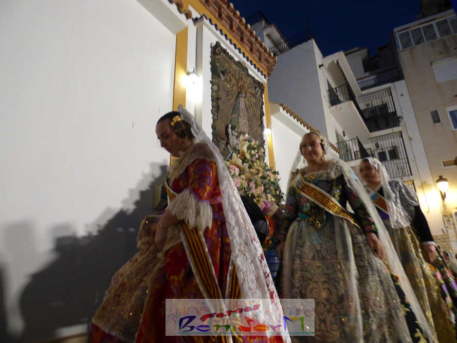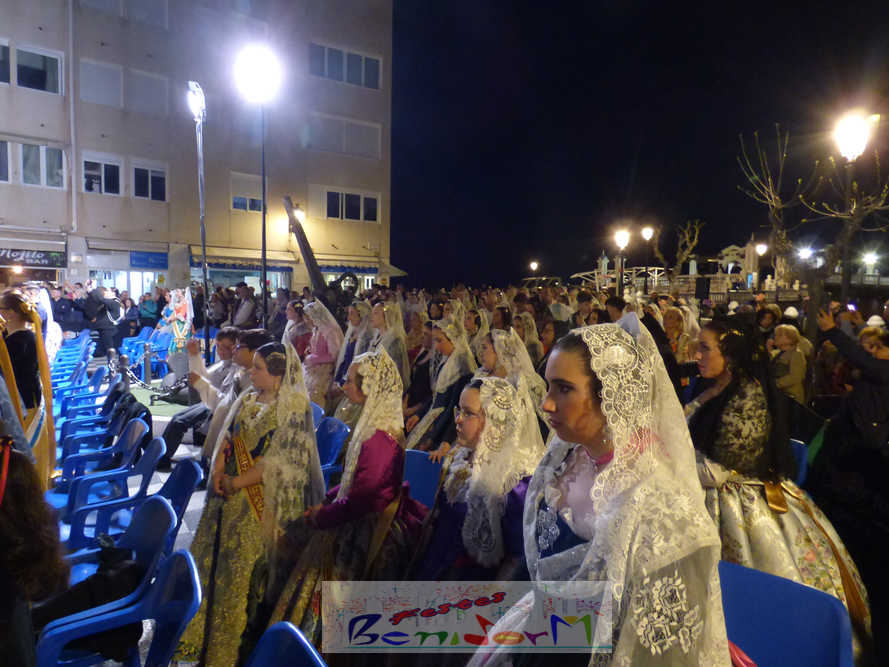 El estandarte de la Junta Local Fallera ha encabezado una comitiva en la que han desfilado, por orden de antigüedad, las fallas de Els Tolls, encabezada por su fallera mayor y su presidente, Teresa Peris y Wenceslao Peris; la Falla Rincón de Loix, con su fallera mayor infantil, Nahia Fernández, junto a su presidente infantil, Samuel Cortés, y su presidente, Javier Rico; y la Falla Benidorm Centro, que este año está representada por su fallera mayor infantil y presidente infantil, Thais Jiménez y Carlos de Torres, su fallera mayor, Jaira Rodríguez, y su presidente, Antonio de Torres, todos ellos acompañados por bandas de música interpretando pasodobles falleros y melodías de ‘xirimita’ y ‘tabalet’.