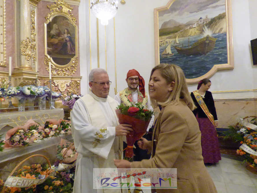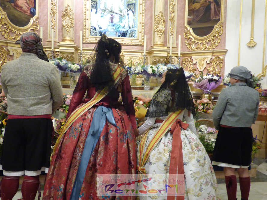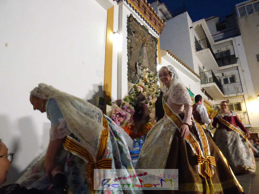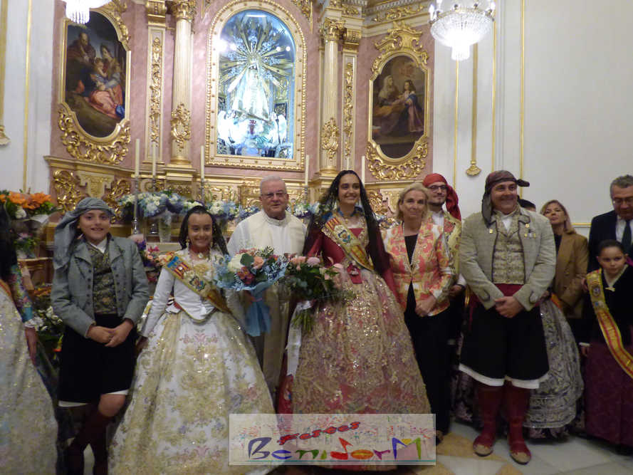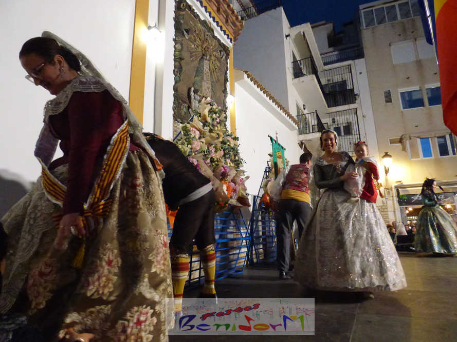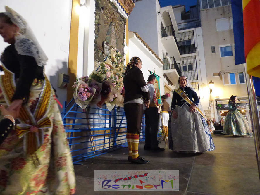 Las tres comisiones falleras de Benidorm, Els Tolls, Rincón de Loix y Benidorm Centro, han celebrado ayer por la tarde la tradicional ofrenda de flores conjunta a la Mare de Déu del Sofratge, patrona de Benidorm, en el preludio de su día grande. Varios centenares de falleros han protagonizado un colorido desfile, en el que también han participado el alcalde de Benidorm, Toni Pérez; la edil de Fiestas, Mariló Cebreros; y numerosos miembros de la Corporación municipal; que han arropado a las tres fallas y a los componentes de la Junta Local Fallera, que este año preside Pablo Pérez. Entre ellos, el también diputado autonómico José Ramón González de Zarate.