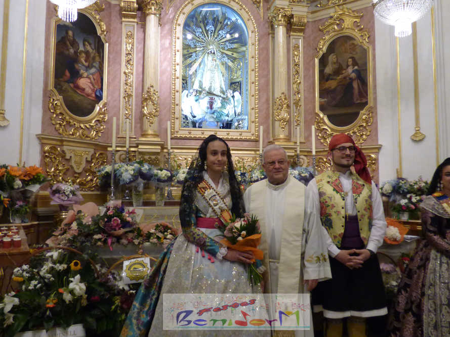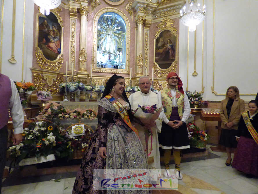 El acto ha finalizado con la interpretación de los himnos oficiales de Benidorm y la Comunitat Valenciana, tras lo cual las falleras mayores de las tres comisiones, junto a las reinas de las Festes Majors Patronals, las componentes de la Junta Local Fallera y la edil de Fiestas han ofrendado sus flores en la capilla de la Virgen del Sufragio, en presencia del alcalde Toni Pérez; loss presidentes de la Junta Local y de la Comissió de Festes; y el párroco de Sant Jaume i Santa Anna, Juan Antonio González.