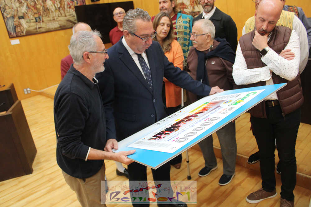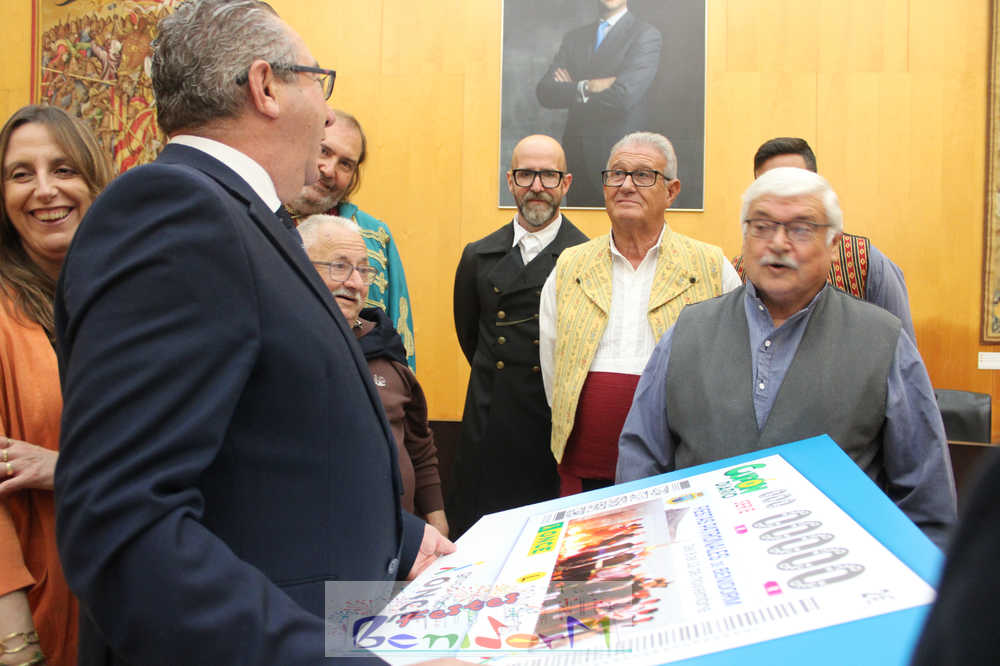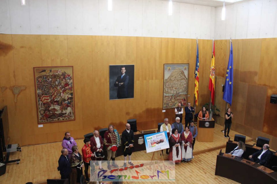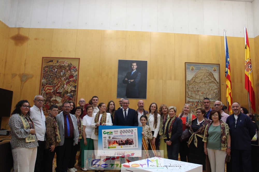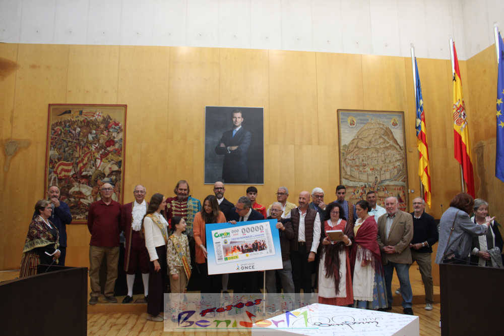 Las Festes Majors Patronals de Benidorm son las protagonistas de un cupón especial emitido por la Organización Nacional de Ciegos de España, ONCE, que se sorteará el próximo el lunes 10 de noviembre, en plena celebración de los días grandes de la ciudad. El cupón se ha presentado públicamente este miércoles en el Salón de Plenos municipal, en un acto en el que han participado el alcalde de la ciudad, Toni Pérez; la directora de la ONCE en Alicante, Estela Medina; el director en la Marina Baixa, Vicente Vázquez; y numerosos miembros de la Corporación municipal, representantes de la ONCE así como de entidades festeras, sociales y culturales del municipio. Entre ellas, las reinas de las Festes Majors Patronals 2025, Paula Pascual Sánchez y Aitana Pérez Gutiérrez.