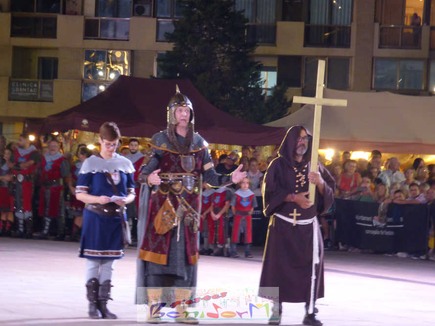 Allí, las tropas de la cruz regresaron con el objetivo de reconquistar la plaza. El embajador cristiano se dirigió al castillo para exigir la rendición de los invasores, pero ante la negativa de la hueste musulmana, dio comienzo el Alardo que acabó con la fortaleza de nuevo en manos cristianas.Hoy sábado, una nueva Diana ha sido el primero de los actos, con el mismo horario e itinerario que la jornada anterior. A las 20 horas tendrá lugar uno de los actos centrales de estos festejos: la ‘Gran Entrada Mora y Cristiana’, en la que desfilarán las huestes moras y las tropas cristianas por las principales calles de la ciudad. En concreto, saldrán desde la parte alta de Tomás Ortuño y recorrerán las calles Venus, Ruzafa, Martínez Alejos y Gambo hasta la Plaza de la Hispanidad.