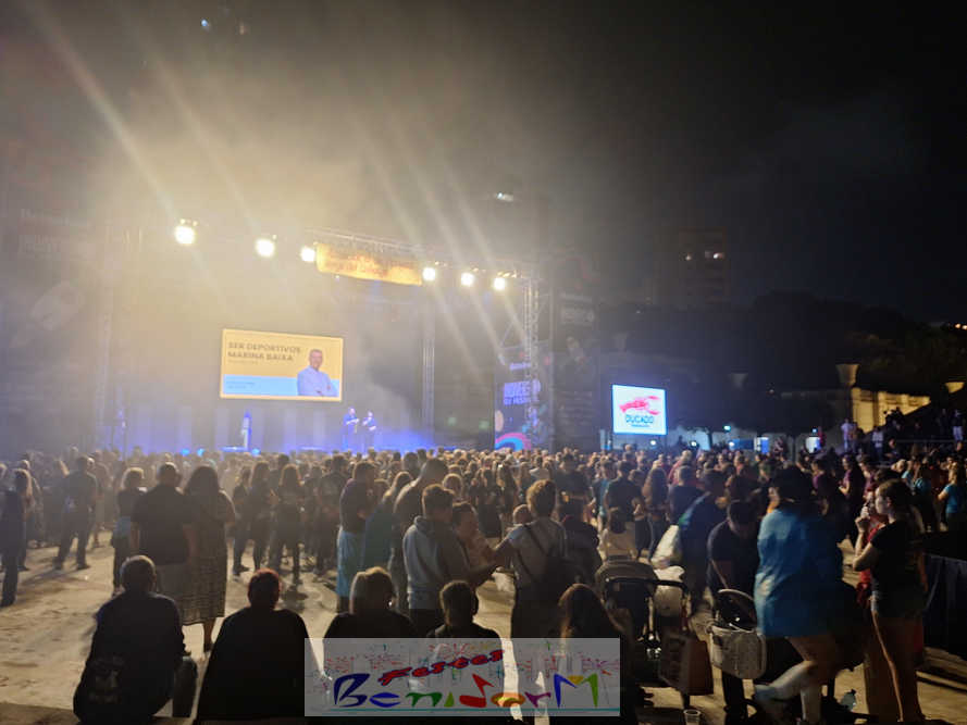 La noche concluyó con un castillo de fuegos artificiales y una animada sesión musical a cargo de Radio Benidorm, cadena SER, poniendo el broche final a una