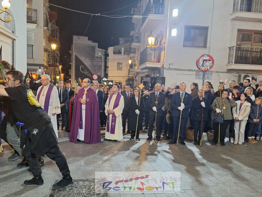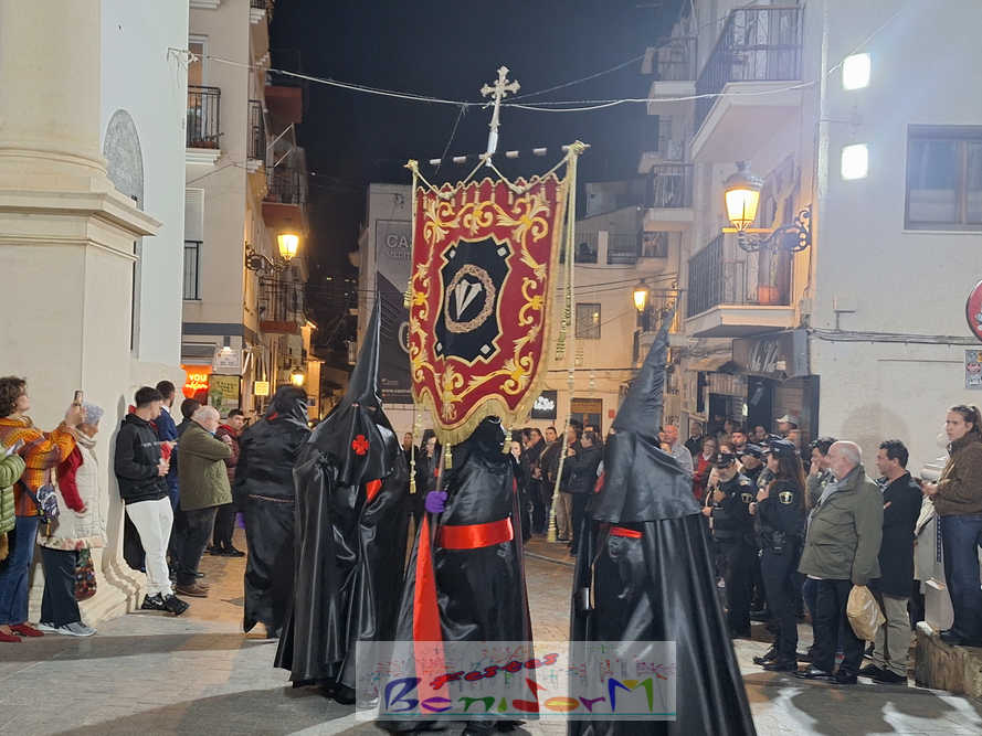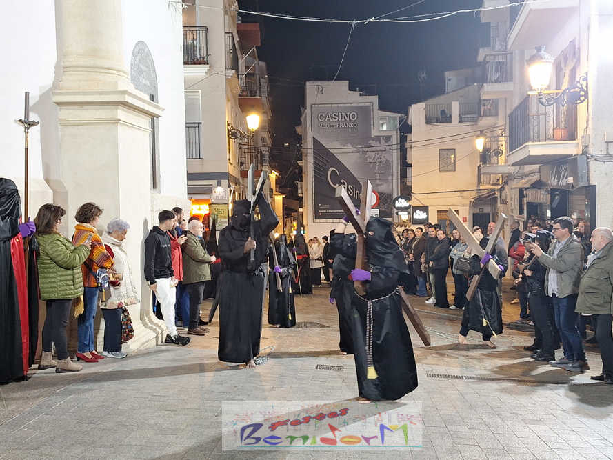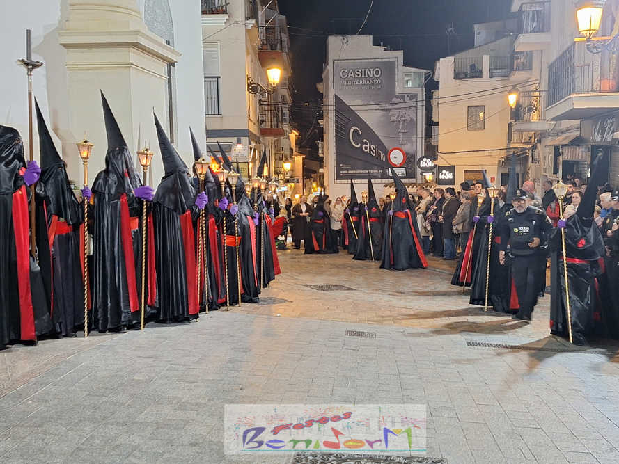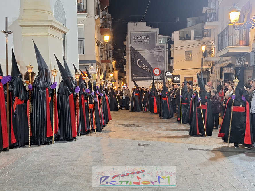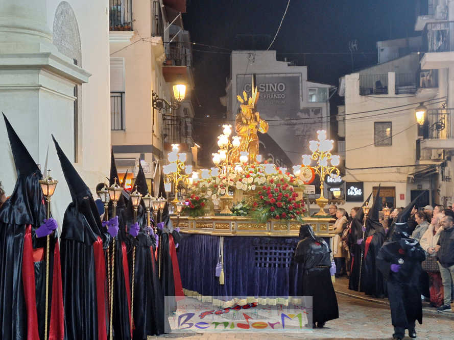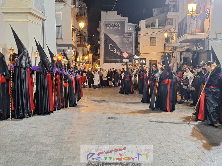 La Cofradía de Nuestro Padre Jesús Nazareno ha cumplido esta noche con la tradición del Miércoles Santo y ha recorrido las calles más céntricas de Benidorm en una procesión marcada por la solemnidad y la devoción. La comitiva ha partido a las 22.00 horas desde la parroquia de Sant Jaume i Santa Anna, siguiendo el itinerario habitual por el casco histórico y diversas vías del centro urbano, donde numerosos vecinos y visitantes han acompañado el desfile procesional.