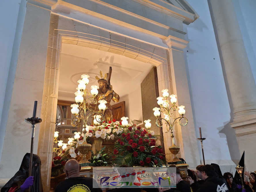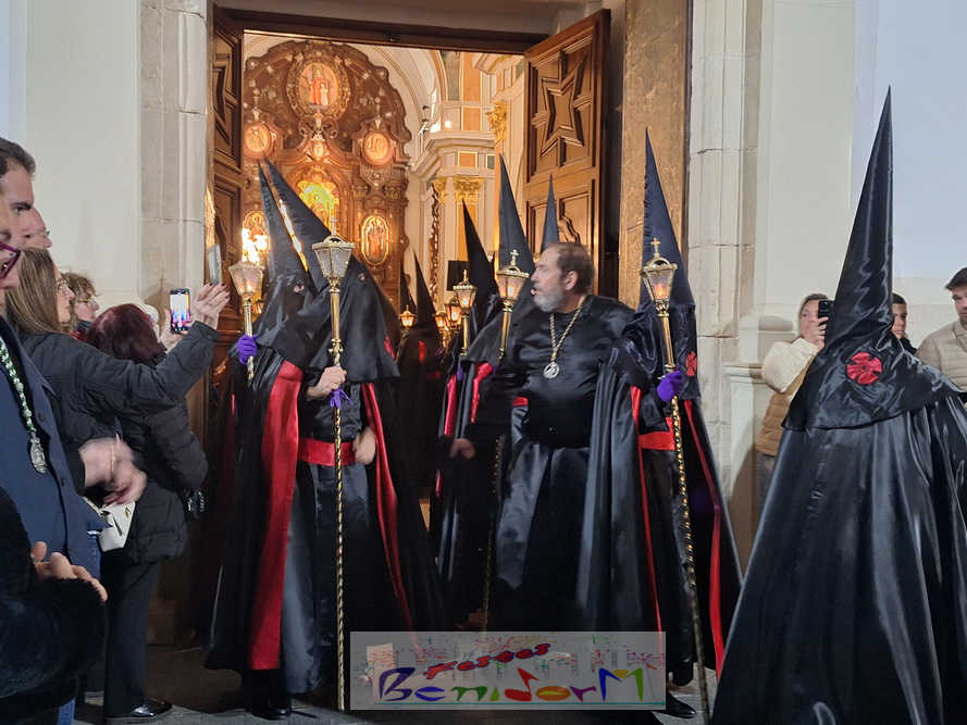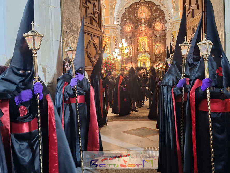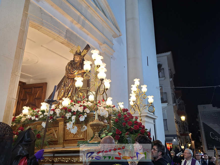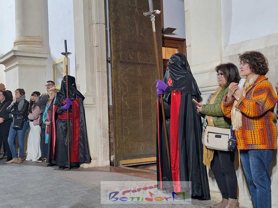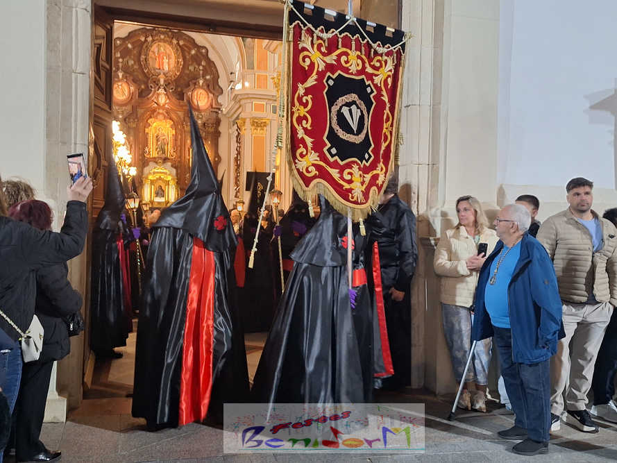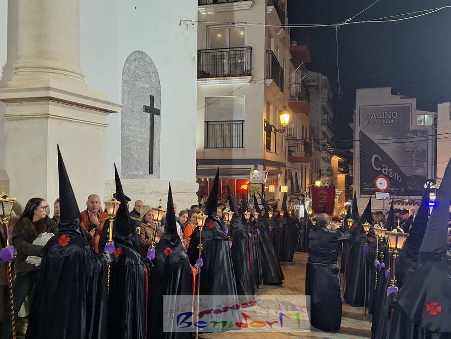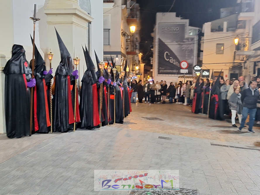 La Cofradía de Nuestro Padre Jesús Nazareno ha cumplido esta noche con la tradición del Miércoles Santo y ha recorrido las calles más céntricas de Benidorm en una procesión marcada por la solemnidad y la devoción. La comitiva ha partido a las 22.00 horas desde la parroquia de Sant Jaume i Santa Anna, siguiendo el itinerario habitual por el casco histórico y diversas vías del centro urbano, donde numerosos vecinos y visitantes han acompañado el desfile procesional.