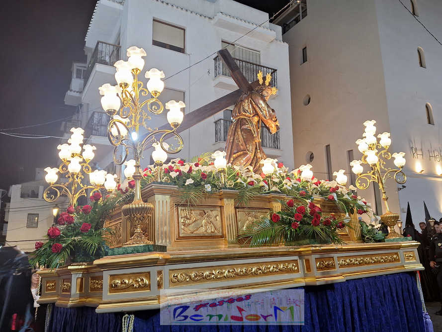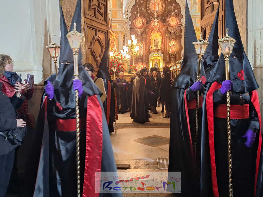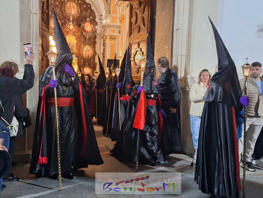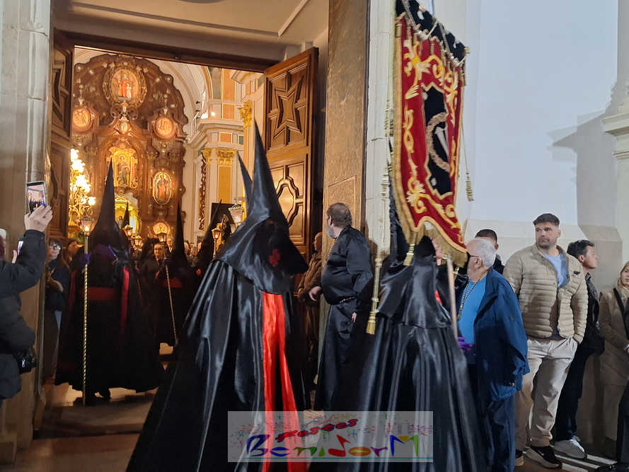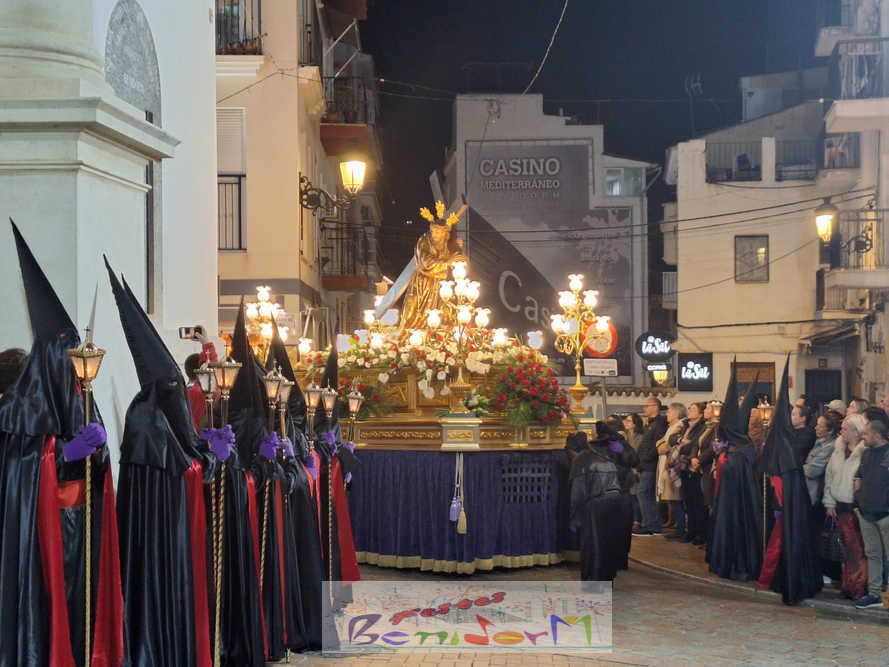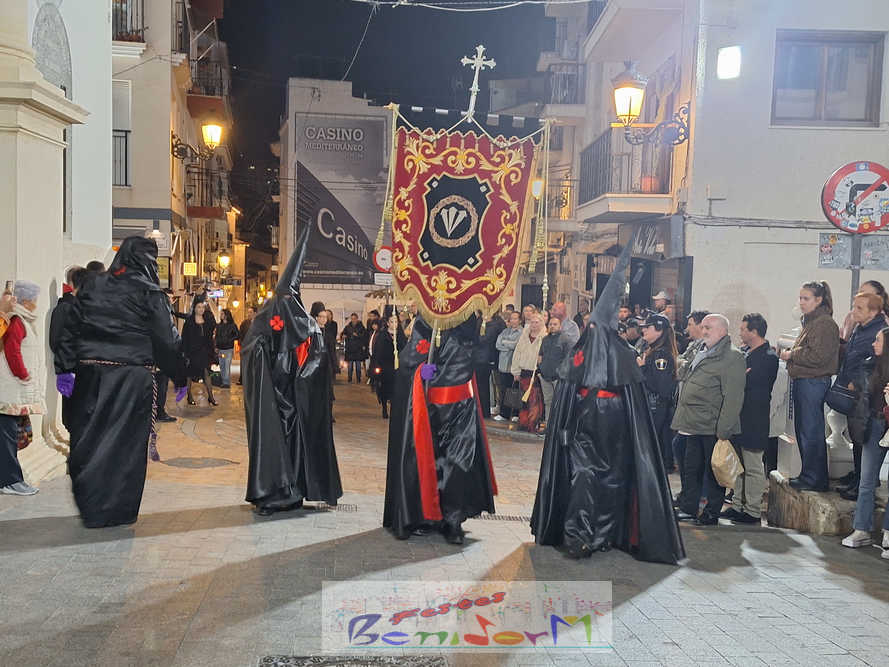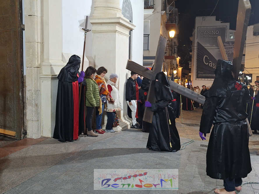 La Cofradía de Nuestro Padre Jesús Nazareno ha cumplido esta noche con la tradición del Miércoles Santo y ha recorrido las calles más céntricas de Benidorm en una procesión marcada por la solemnidad y la devoción. La comitiva ha partido a las 22.00 horas desde la parroquia de Sant Jaume i Santa Anna, siguiendo el itinerario habitual por el casco histórico y diversas vías del centro urbano, donde numerosos vecinos y visitantes han acompañado el desfile procesional.