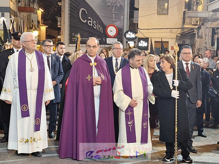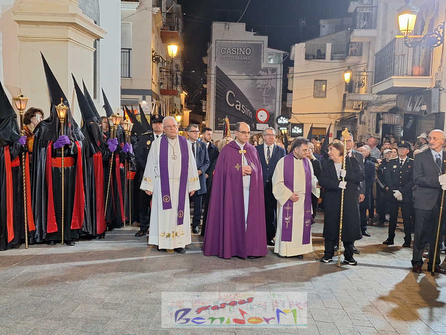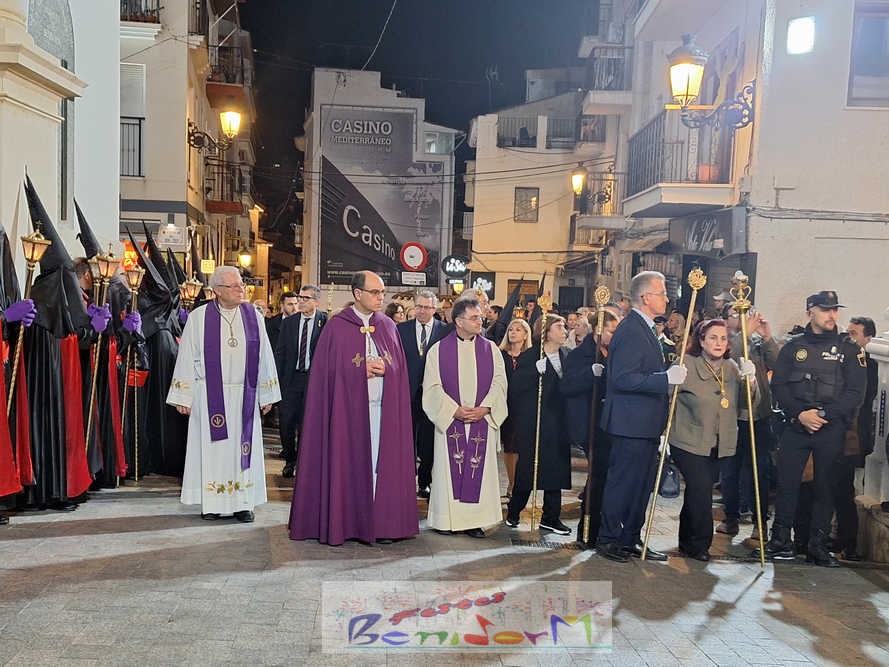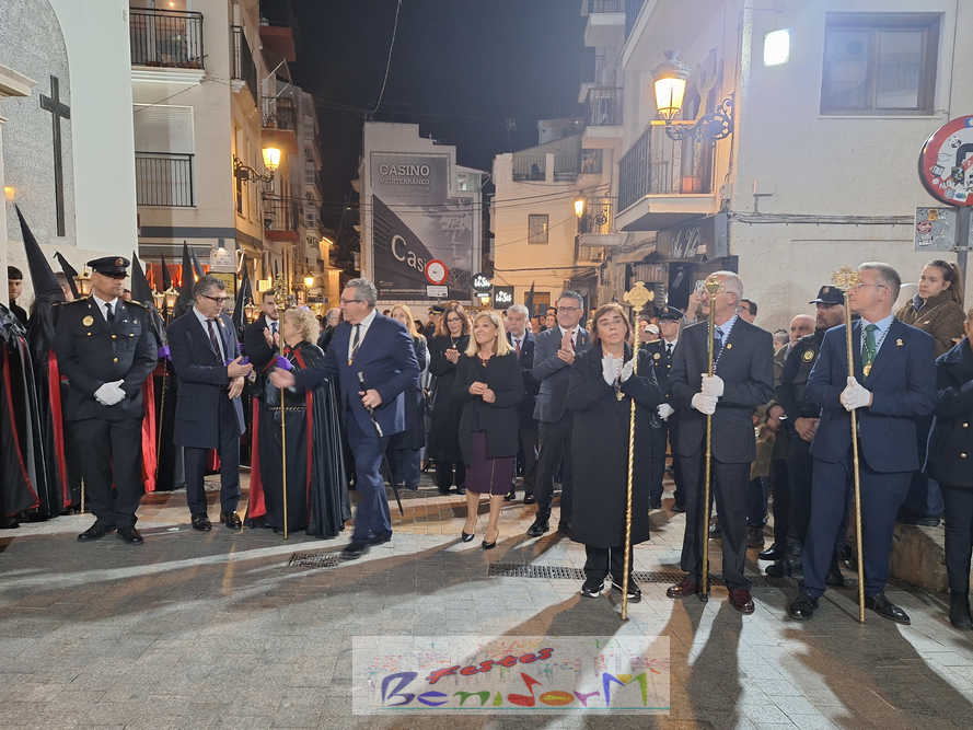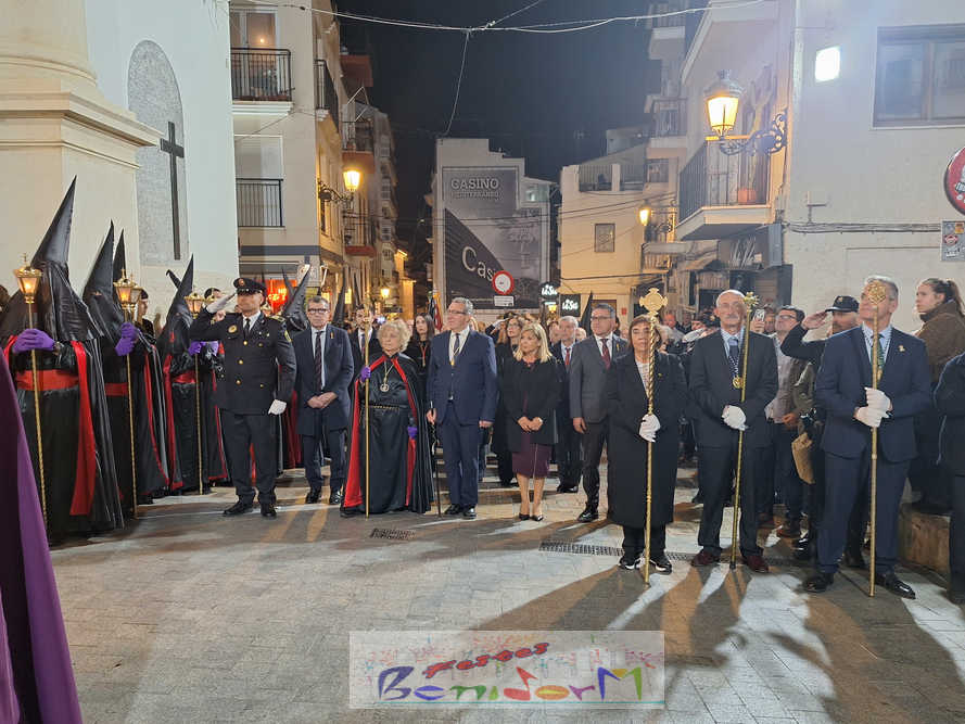 En la procesión han participado cofrades de todas las edades, penitentes y representantes de las distintas cofradías y hermandades locales. En cabeza, la presidenta de Jesús Nazareno, María Dolores Cano y el de la Junta Mayor de Cofradías y Hermandades de Benidorm, José Manuel Olvera. junto al alcalde, Toni Pérez; la concejal de Fiestas, Mariló Cebreros, otros miembros de la corporación y los diputados autonómicos, José Ramón González de Zárate y Manuel Pérez Fenoll.