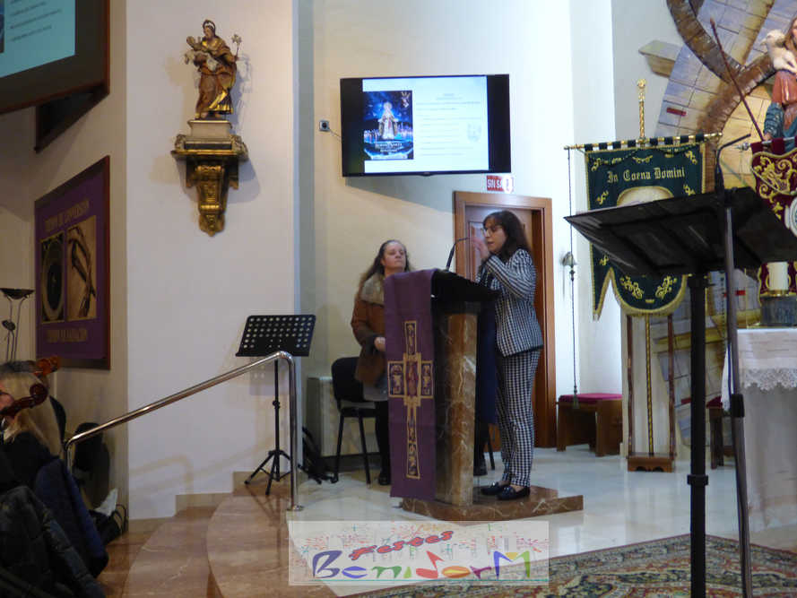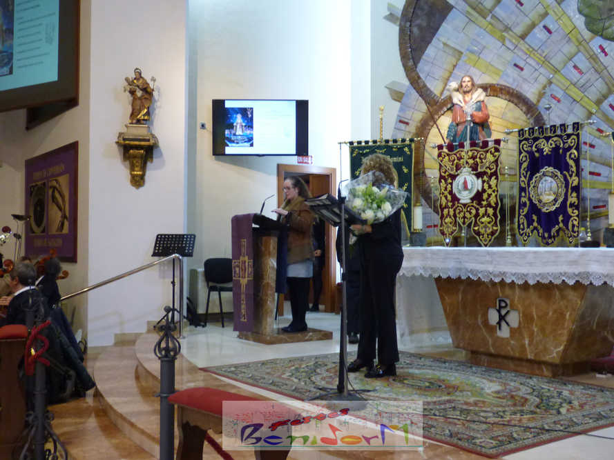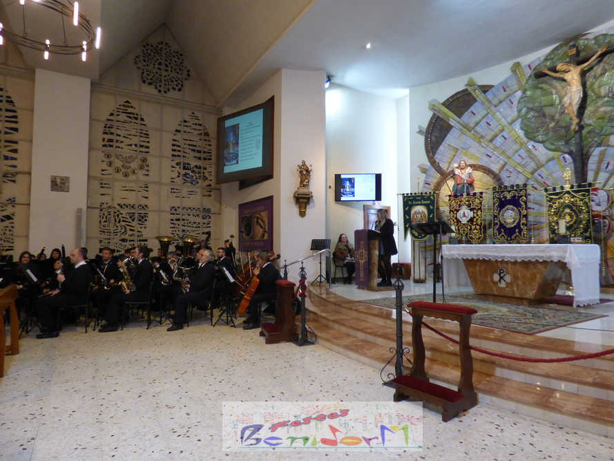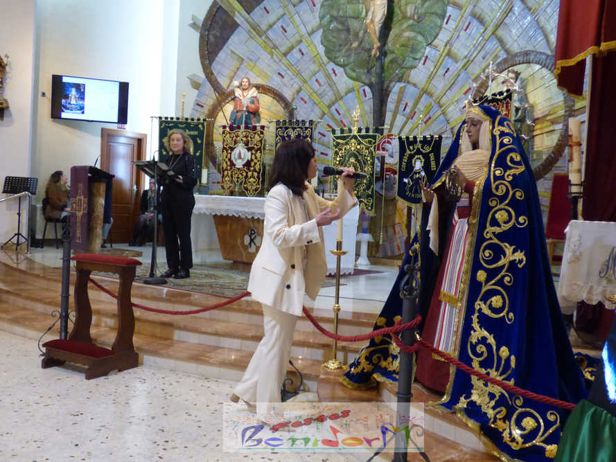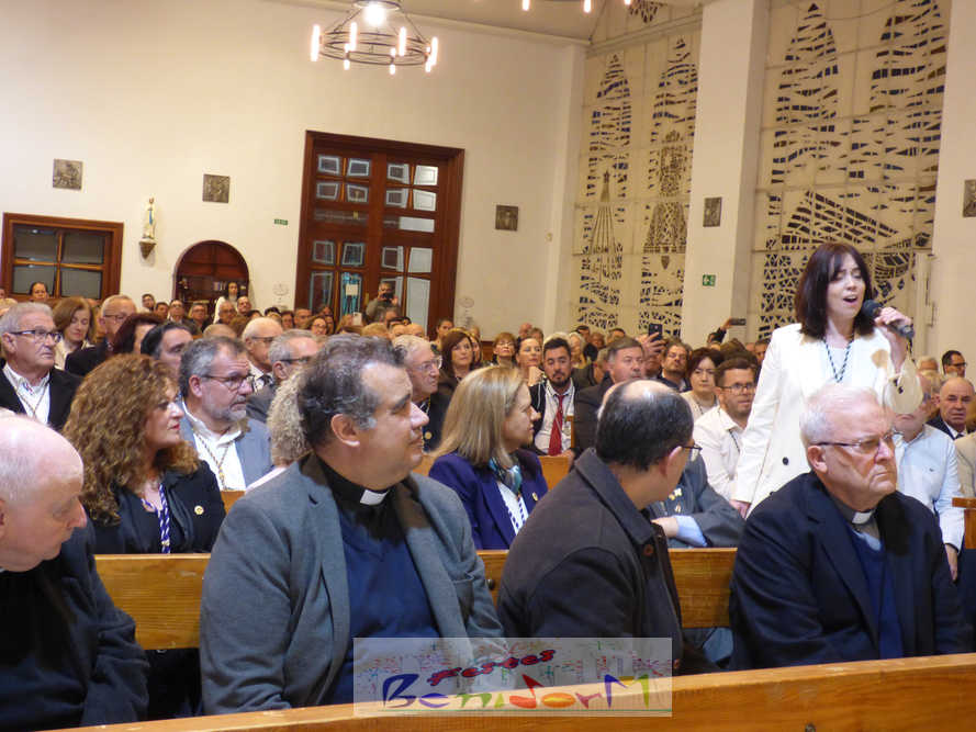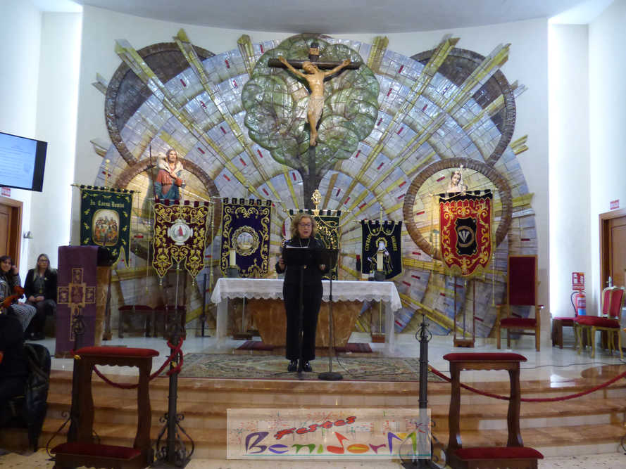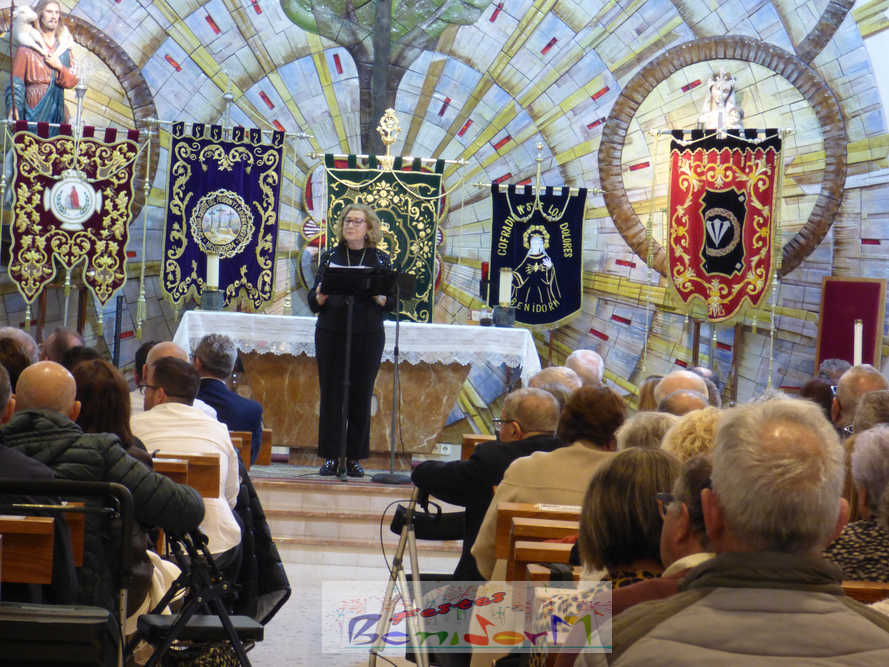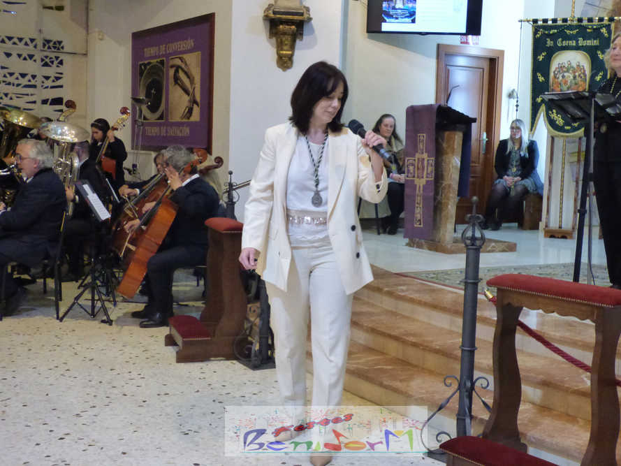 Benidorm continuó el sábado por la noche con los actos previos a la Semana Santa con el tradicional pregón, que en esta ocasión fue pronunciado por la cofrade María José Sánchez y en el que la palabra y la música se dieron la mano, gracias a la participación de la Unión Musical de Benidorm, para evocar las principales estaciones de la Semana Santa de la ciudad. Un acto que se celebró en la parroquia de El Buen Pastor, sede de la Cofradía de Nuestra Señora de la Esperanza y de la Paz, de la que forma parte la pregonera y que ostenta este año la presidencia de la Junta Mayor de Cofradías y Hermandades de Semana Santa de la localidad.
