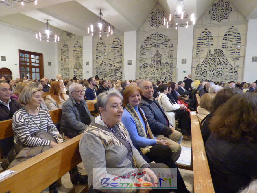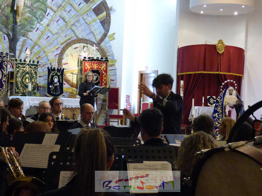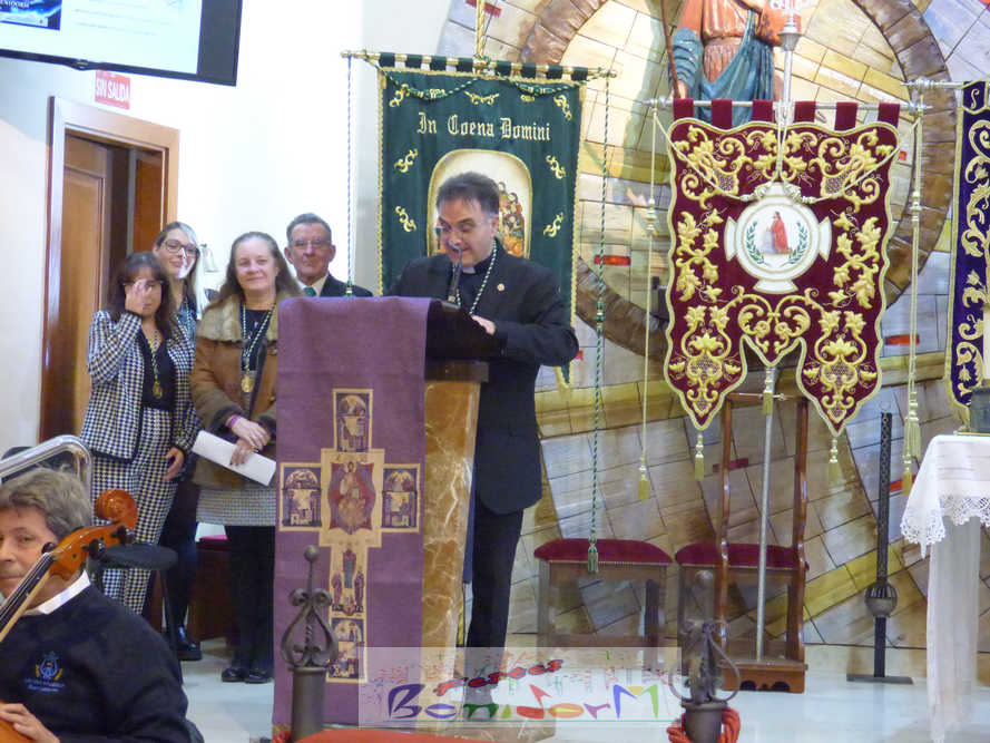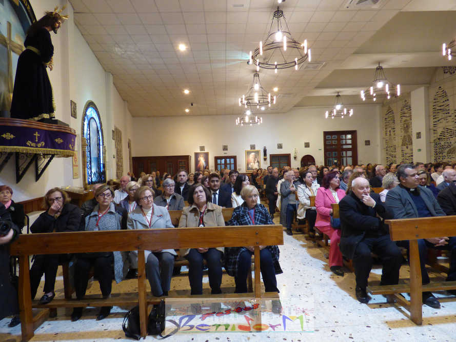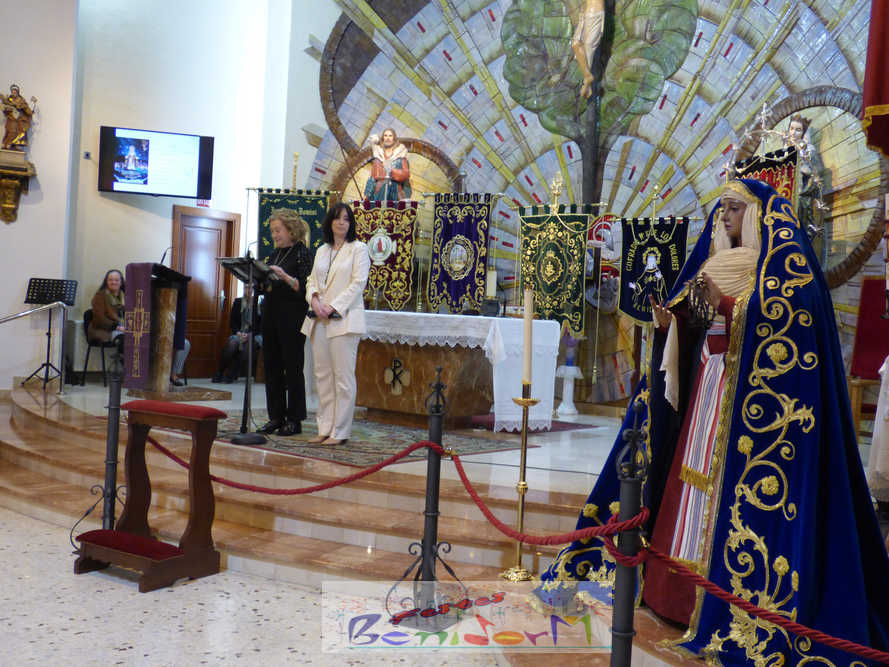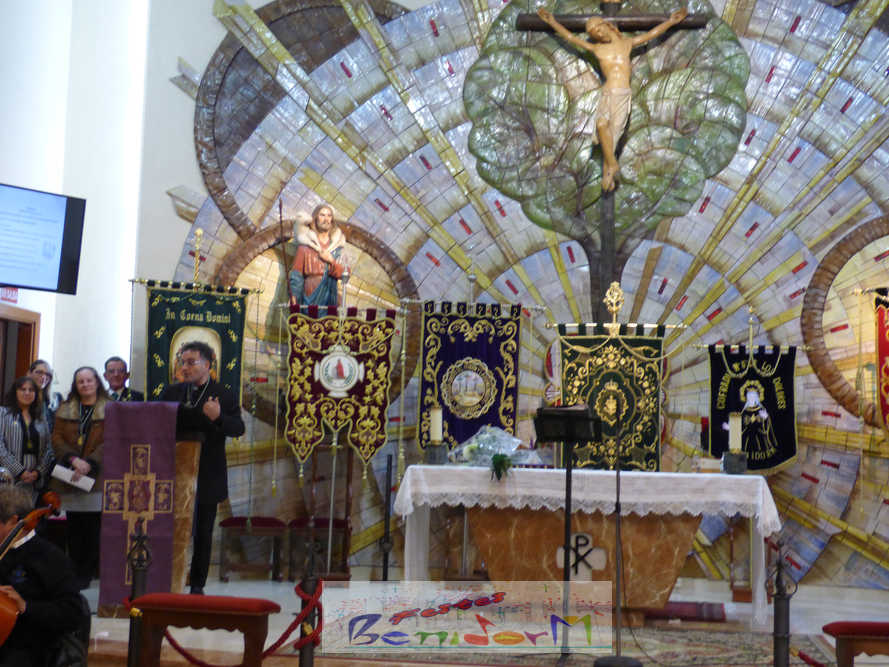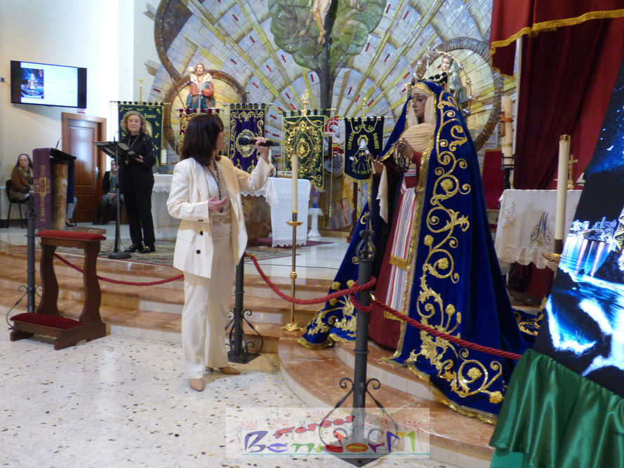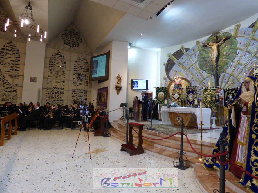 Benidorm continuó el sábado por la noche con los actos previos a la Semana Santa con el tradicional pregón, que en esta ocasión fue pronunciado por la cofrade María José Sánchez y en el que la palabra y la música se dieron la mano, gracias a la participación de la Unión Musical de Benidorm, para evocar las principales estaciones de la Semana Santa de la ciudad. Un acto que se celebró en la parroquia de El Buen Pastor, sede de la Cofradía de Nuestra Señora de la Esperanza y de la Paz, de la que forma parte la pregonera y que ostenta este año la presidencia de la Junta Mayor de Cofradías y Hermandades de Semana Santa de la localidad.