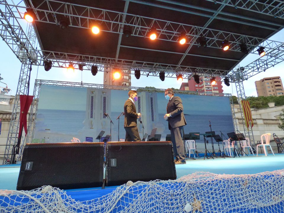 El presidente de l’Associació de Penyes ‘Verge del Sofratge’ Adrián Romero, se dirigió a los presentes con unas sencillas palabras, y quiso puntualizar que los peñistas de la ciudad, no solo piensan en fiestas, sino además de realizar actos culturales como el vivido esa noche, también cuando se les necesitan están presente, como se demostró este con la recogida de alimentos para los más necesitados en donde se donaron a carita más de una tonelada de productos diversos, para las personas que por tema de la pandemia lo estaban pasando mal. También aprovecho el acto, para ofrecer la insignia del colectivo, a el mantenedor del acto, alcalde de la ciudad y al presidente de la Comissió de Festes Majors Patronals. Por su parte, el alcalde de la ciudad, Toni Pérez, le impuso la insignia de la ciudad.
