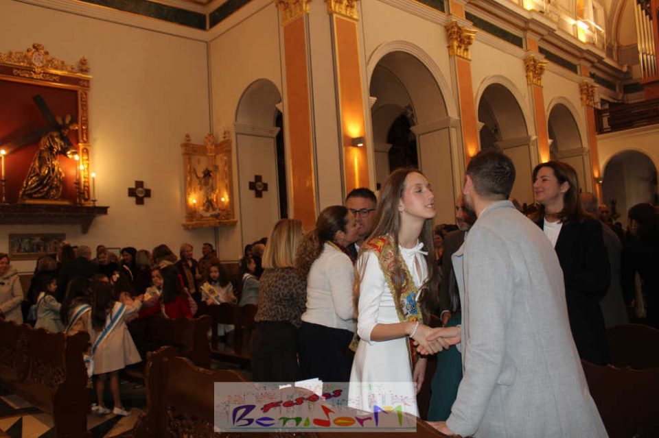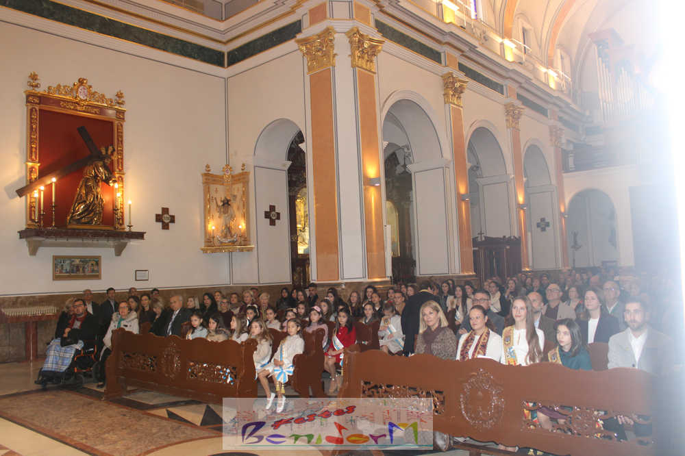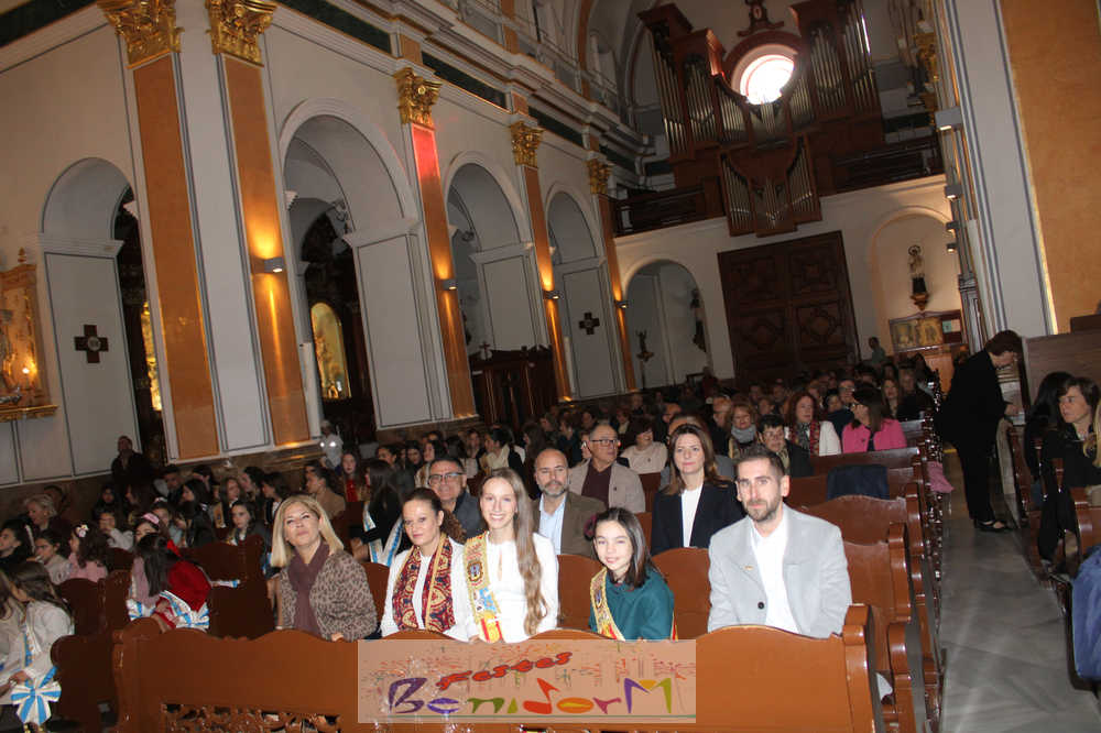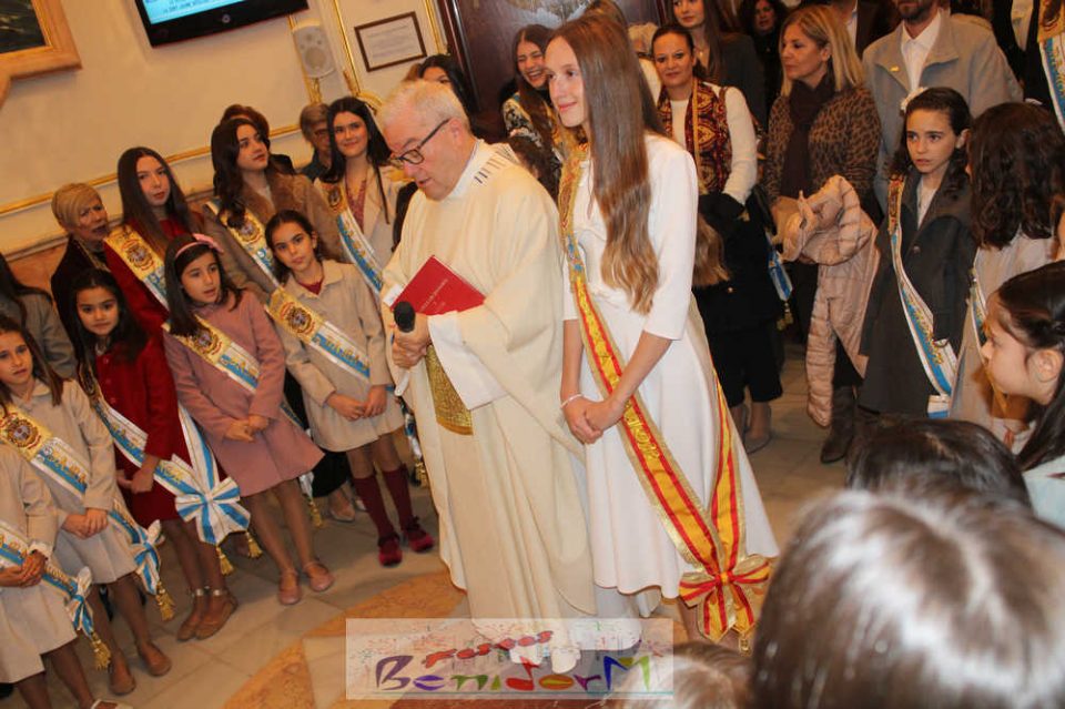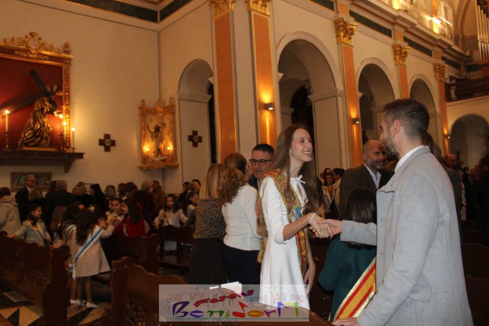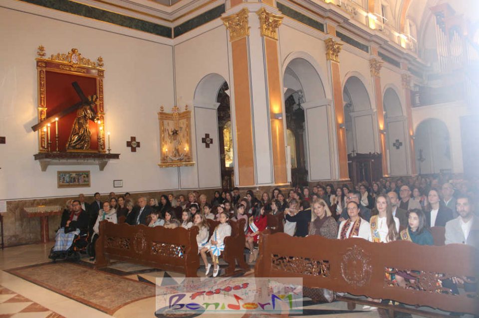 Esta mañana, en la iglesia de San Jaime y Santa Ana, se han presentado las Reinas y las Damas de las Fiestas Mayores Patronales de Benidorm a la Virgen del Sufragio.