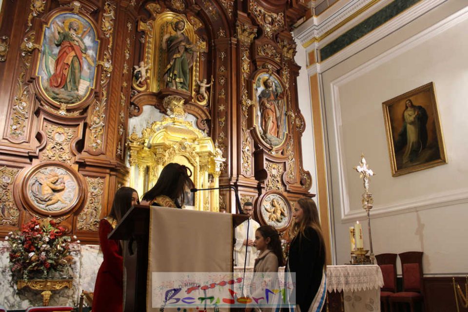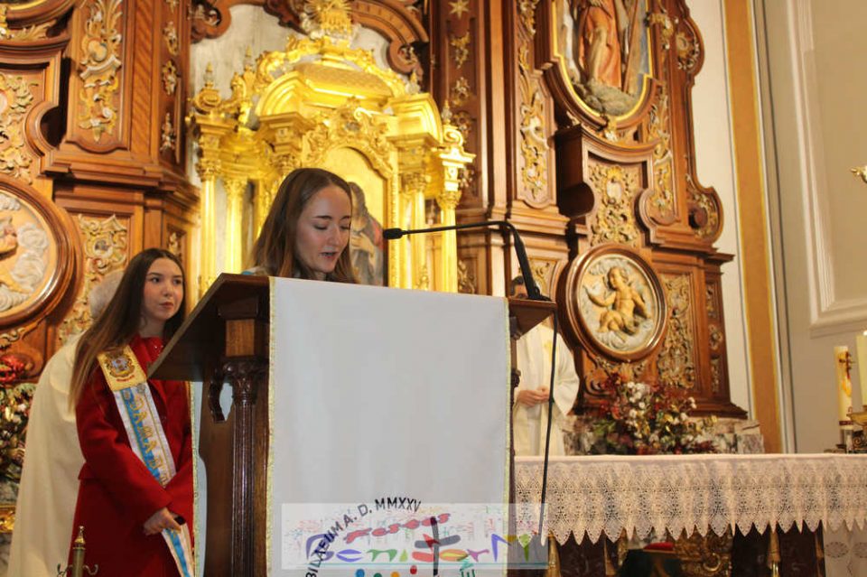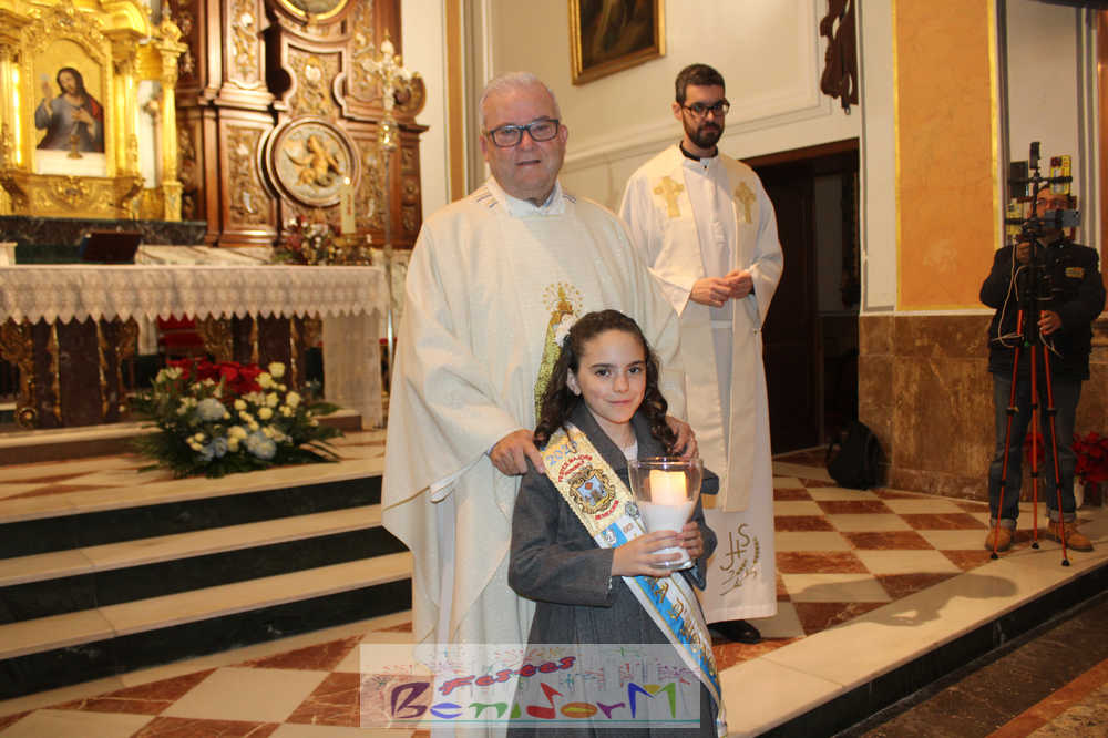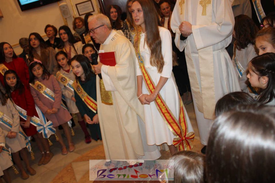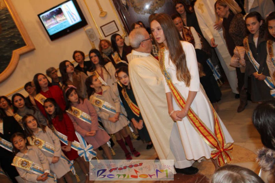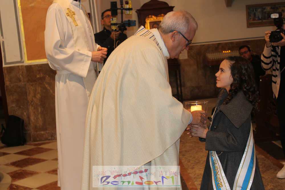Esta mañana, en la iglesia de San Jaime y Santa Ana, se han presentado las Reinas y las Damas de las Fiestas Mayores Patronales de Benidorm a la Virgen del Sufragio.