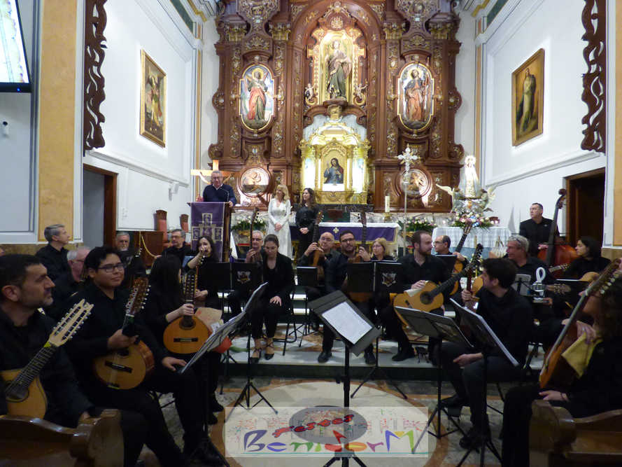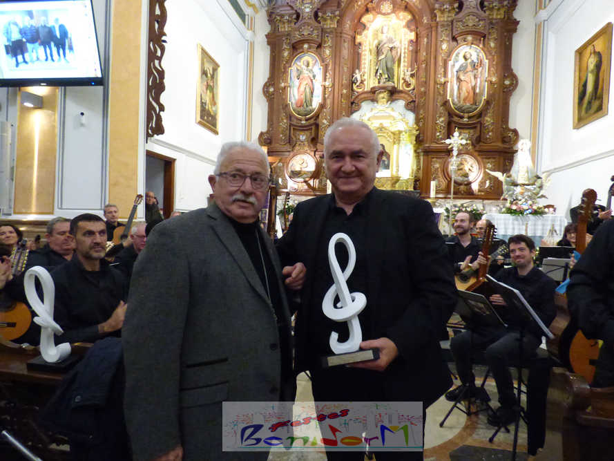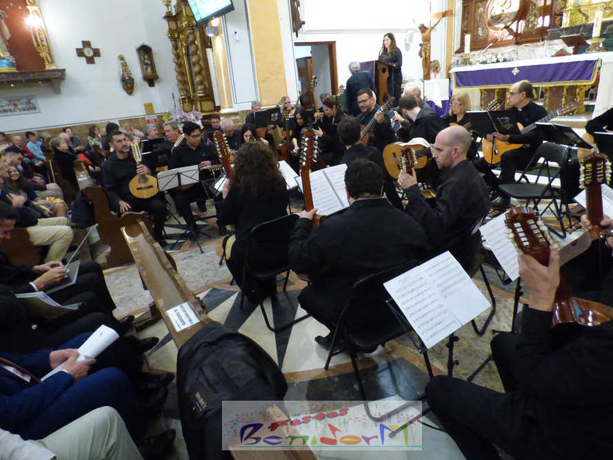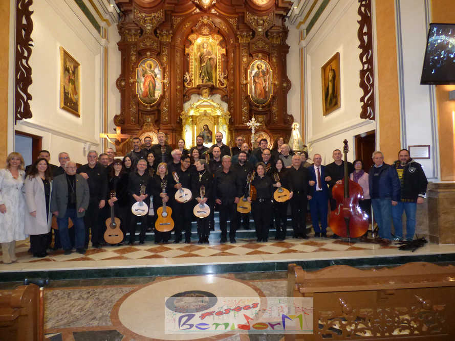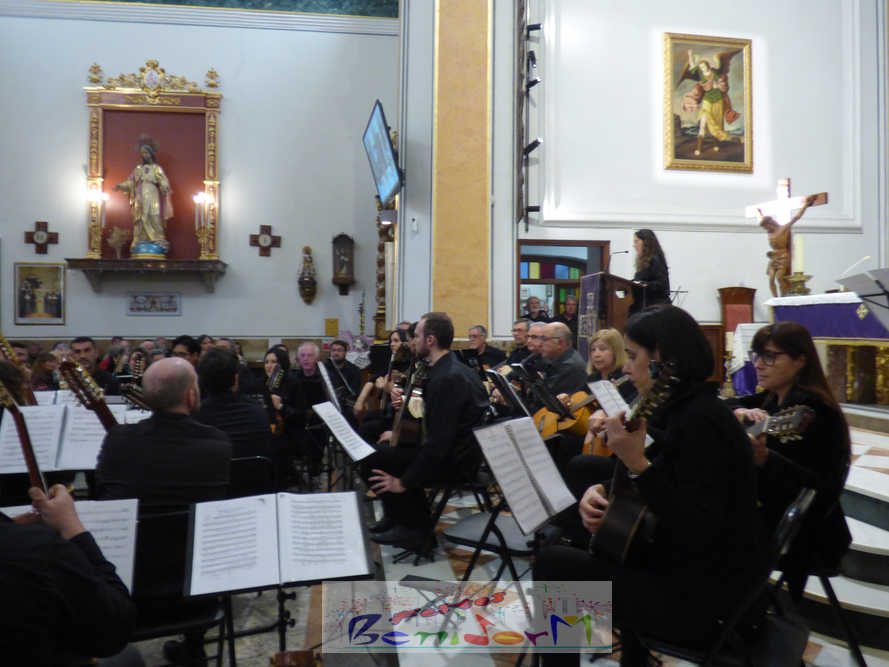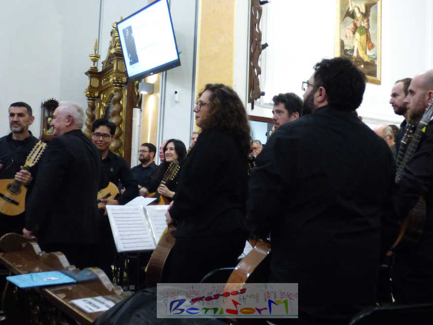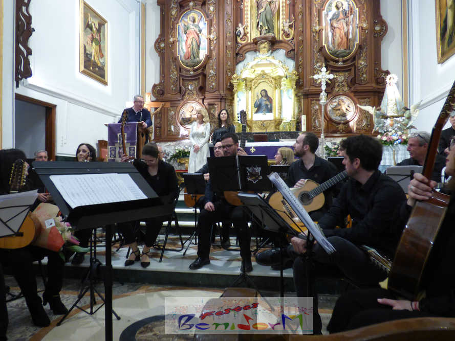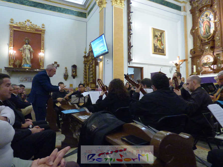 A las ocho de la tarde, el templo lleno a rebosar, ha dado la bienvenida a los integrantes de la formación musical, nombrados uno a uno desde megafonía. El alcalde de Benidorm, Toni Pérez; los concejales de Cultura y Fiestas, Jaime Jesús Pérez y Mariló Cebreros, otros miembros de la corporación municipal y el diputado autonómico, José Ramón González de Zárate, han conformado una representación institucional que, con su presencia, han mostrado su apoyo a la institución y a su presidente, Francisco Llorens, ‘Paco Rosera’, en su concierto homenaje.