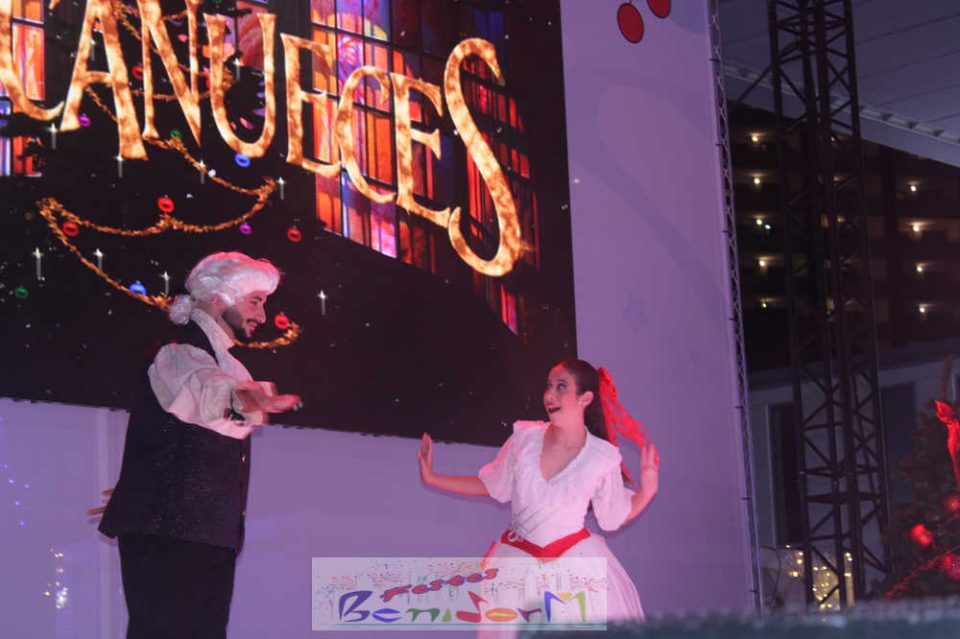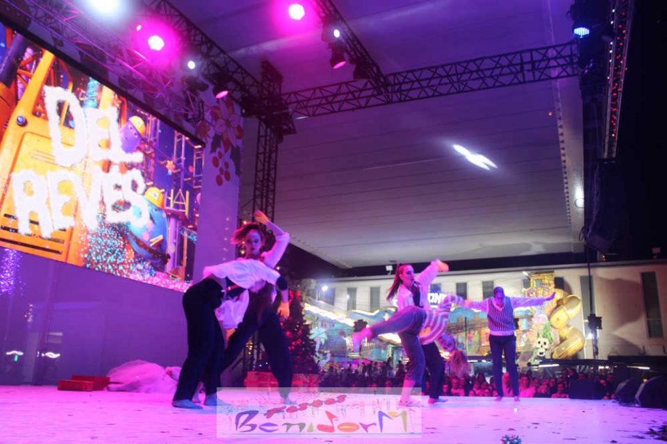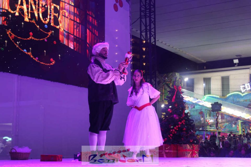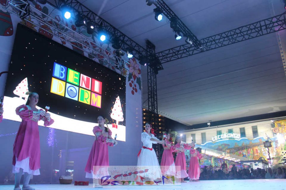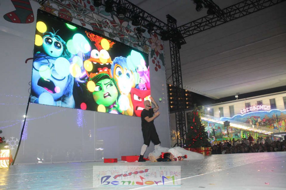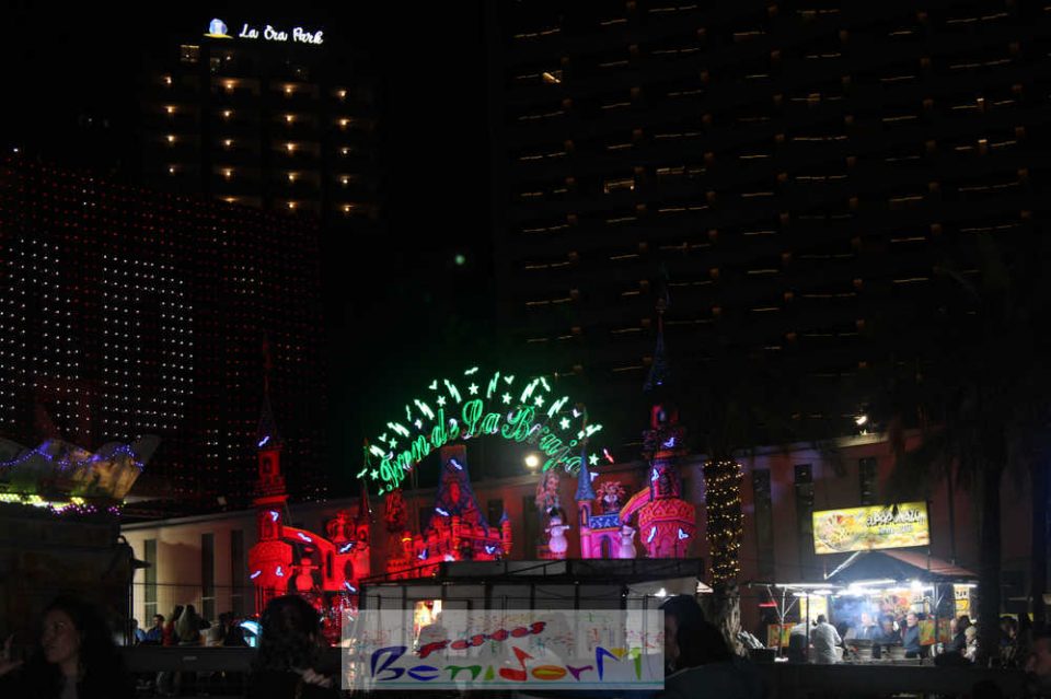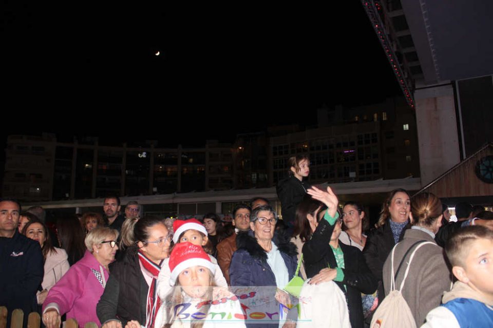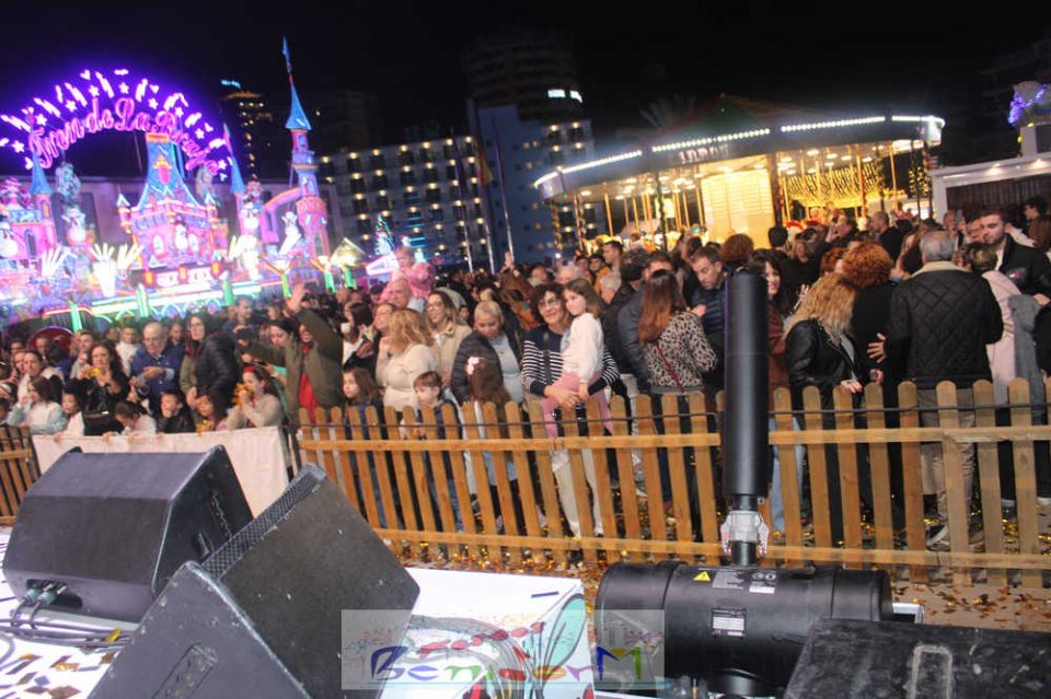 En un instante, los fuegos artificiales y el confeti se han adueñado de la noche, casi transformada en día llenando de magia uno de los espacios más emblemáticos de Benidorm que luce de manera excepcional estas semanas gracias a la gran pista de hielo, las atracciones infantiles, los puestos de comida y recuerdos y una cuidada programación de actos y actividades dirigida a los más pequeños y sus familias.