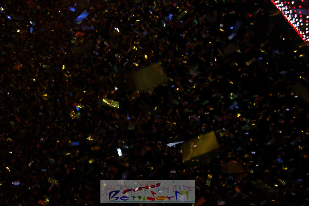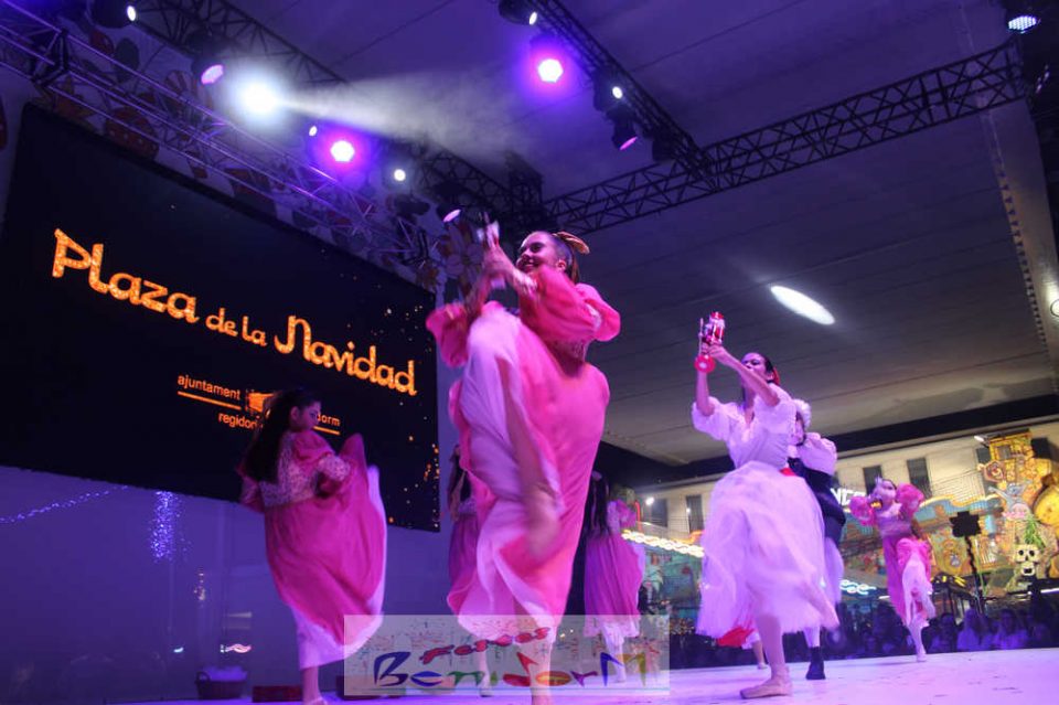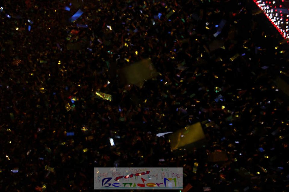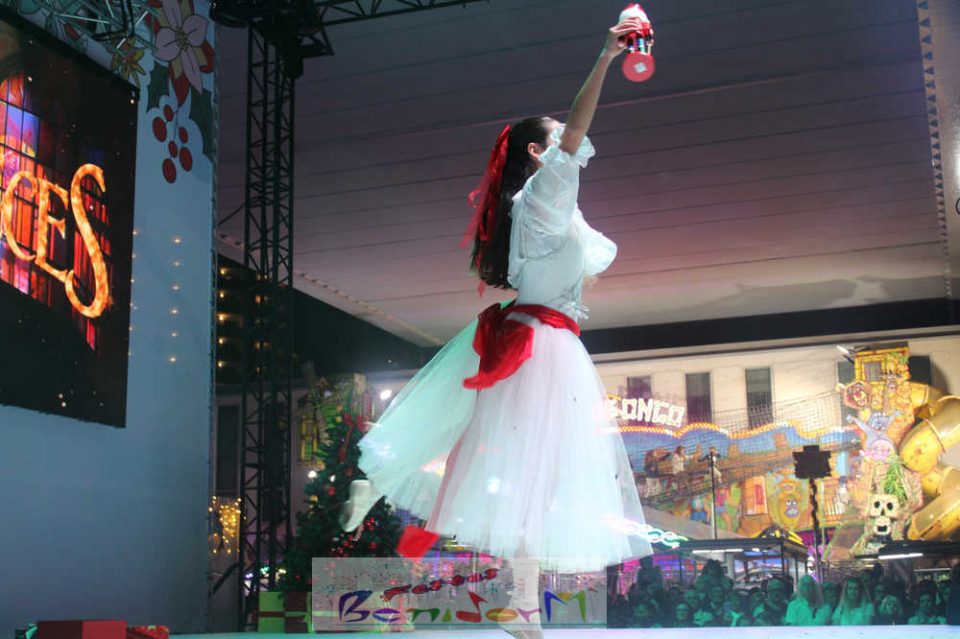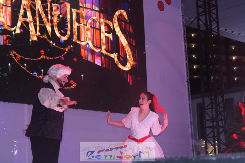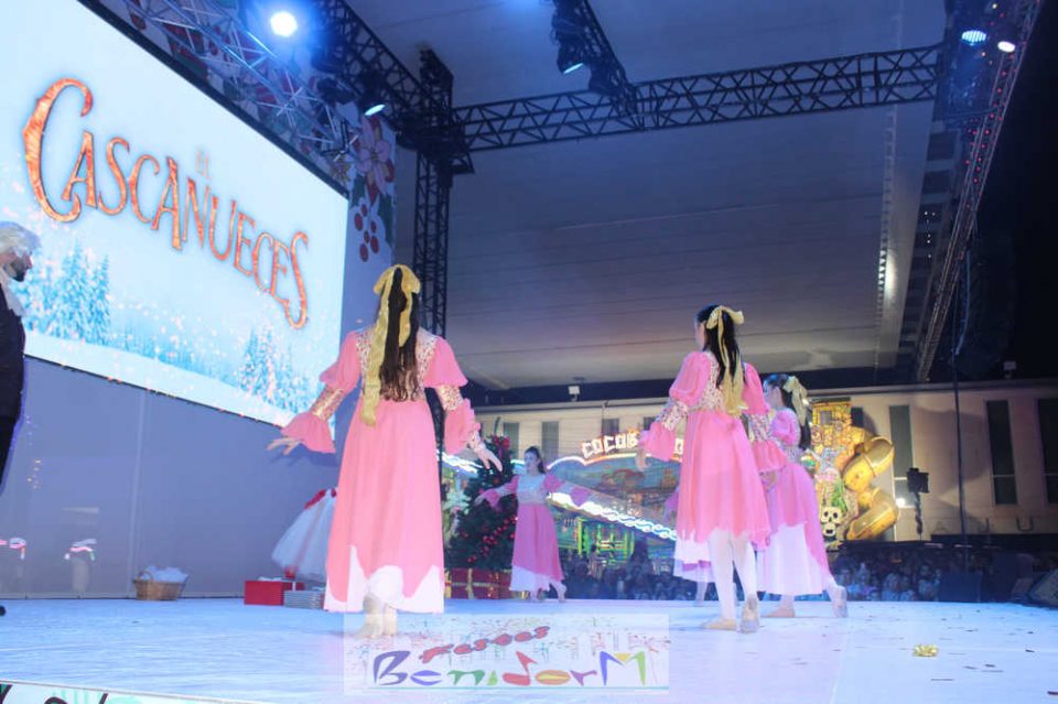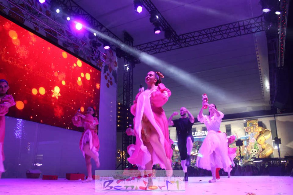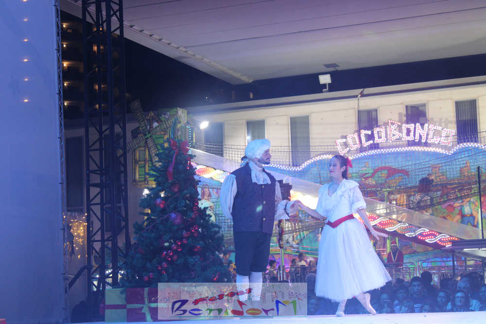 En un instante, los fuegos artificiales y el confeti se han adueñado de la noche, casi transformada en día llenando de magia uno de los espacios más emblemáticos de Benidorm que luce de manera excepcional estas semanas gracias a la gran pista de hielo, las atracciones infantiles, los puestos de comida y recuerdos y una cuidada programación de actos y actividades dirigida a los más pequeños y sus familias.
