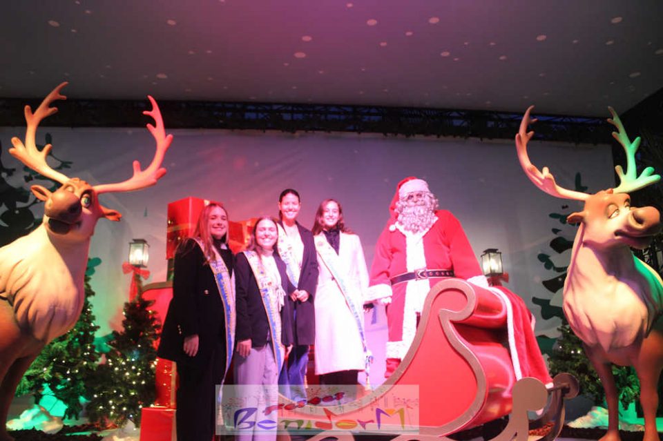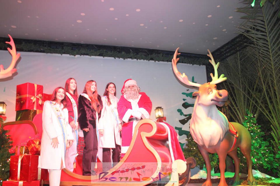 Benidorm ha dado la bienvenida a la Navidad en una tarde en la que Papa Noel y sus renos se han instalado en el Hort de Colón y la plaza de SS. MM. los Reyes de España se ha transformado, y hasta el 6 de enero próximo, en la Plaza de la Navidad.